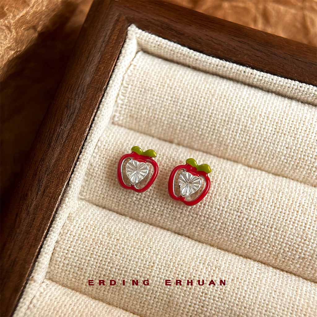 C廠【5279】森系小清新可愛迷你小蘋果耳環甜美日常通勤百搭學生耳飾飾品 24.12-2