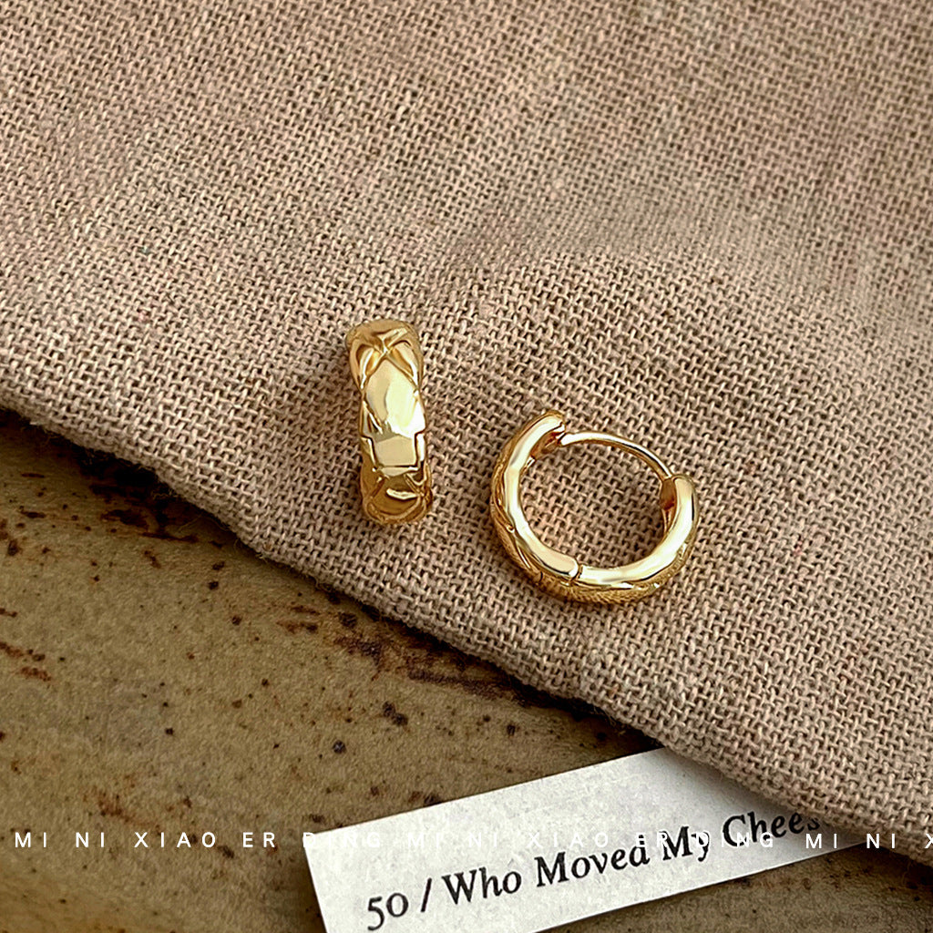 C廠【5287】時尚通勤高級感鍍14K簡約百搭圓形幾何扣女氣質菱格型耳環 24.12-2