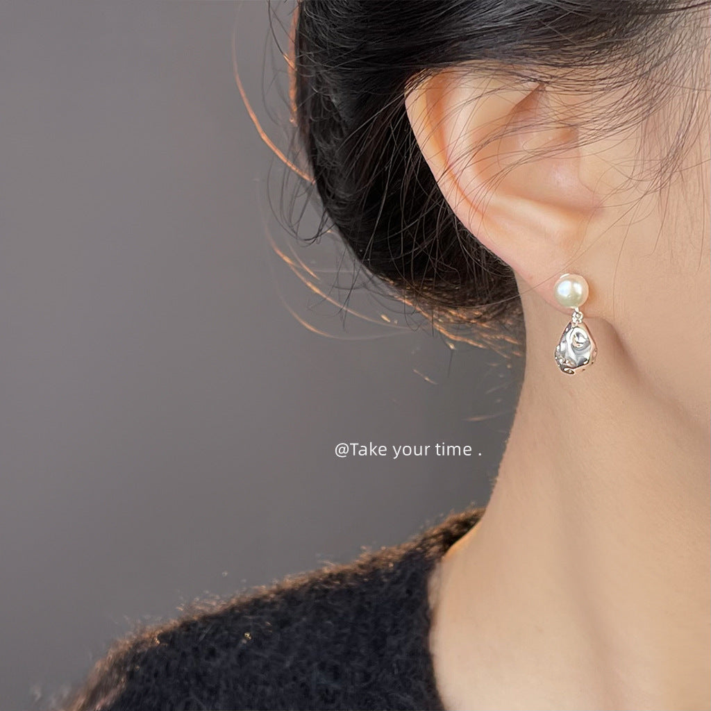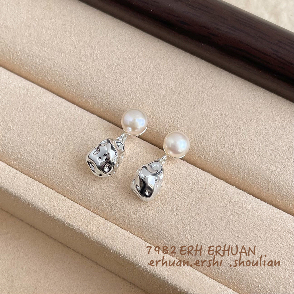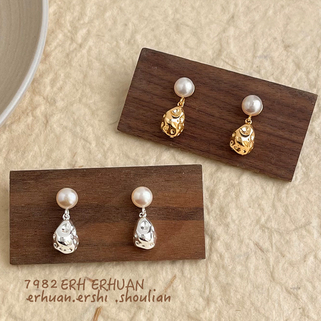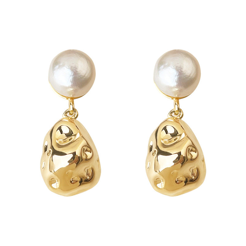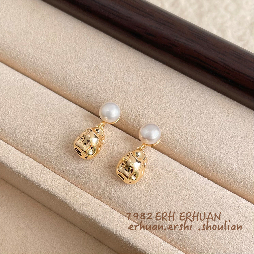 C廠【5313】淡水珍珠文藝復古925銀針鍍14K液態高級感簡約百搭通勤耳飾耳環女 25.02-4