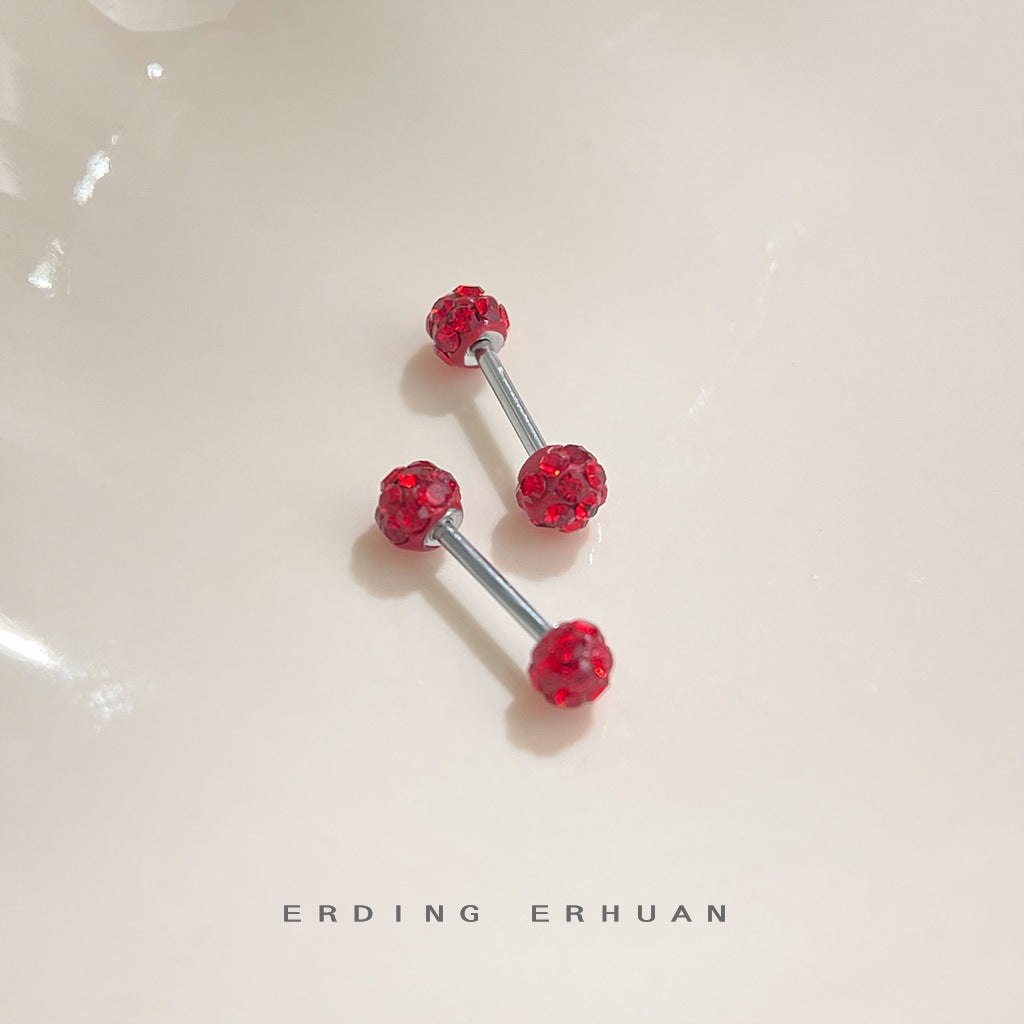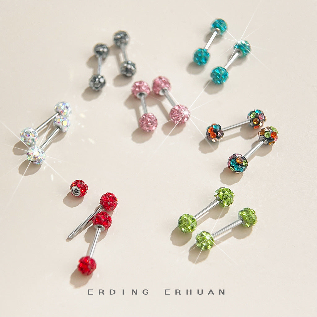 C廠【5318】爆閃!耳骨釘鈦鋼彩色滿鑽球球個性小眾ins設計耳環跨境耳飾 24.12-4