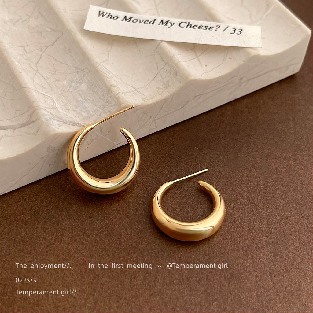 A廠【5366】高級感925銀針鍍14K簡約時尚通勤百搭幾何圓耳環耳環飾品女 25.02-4