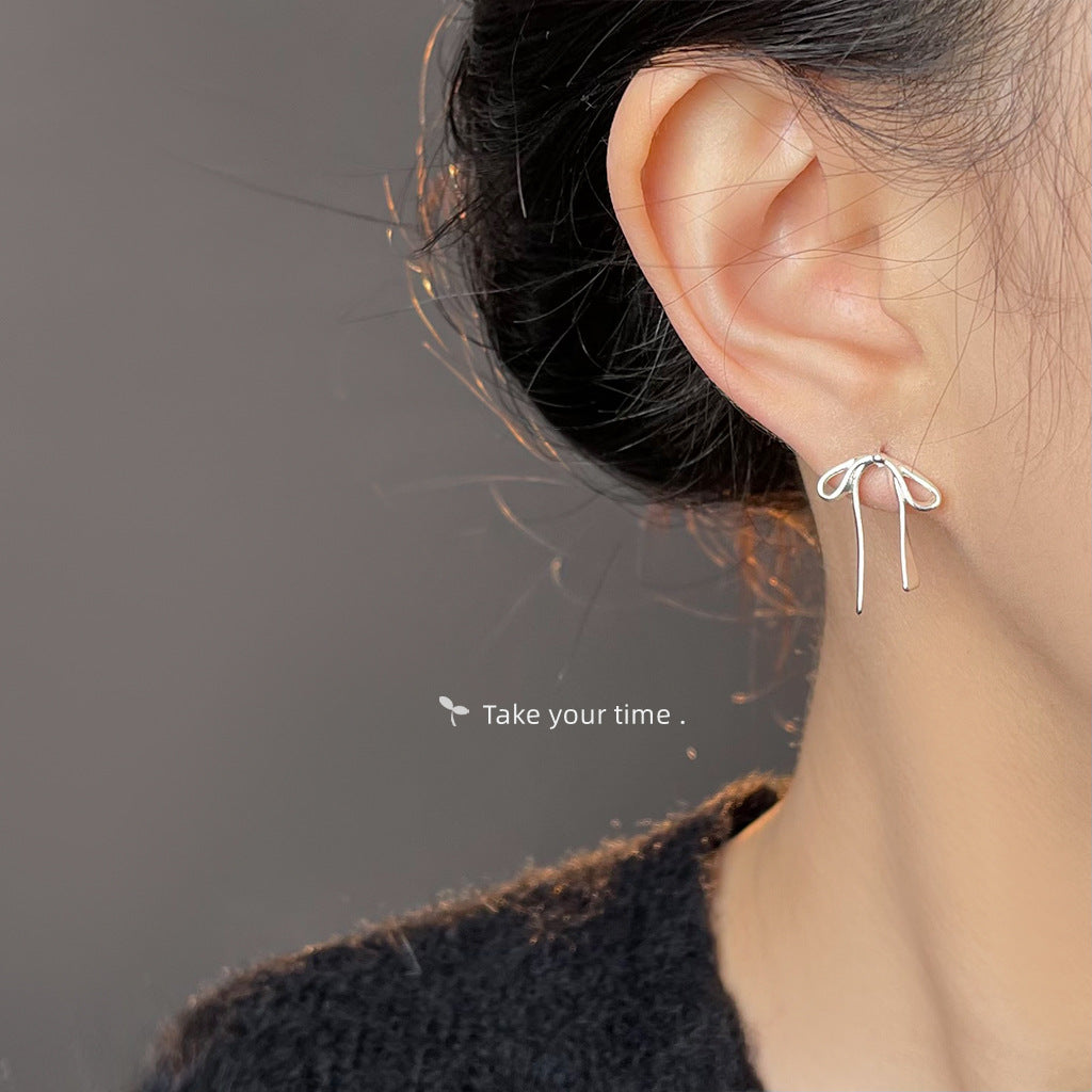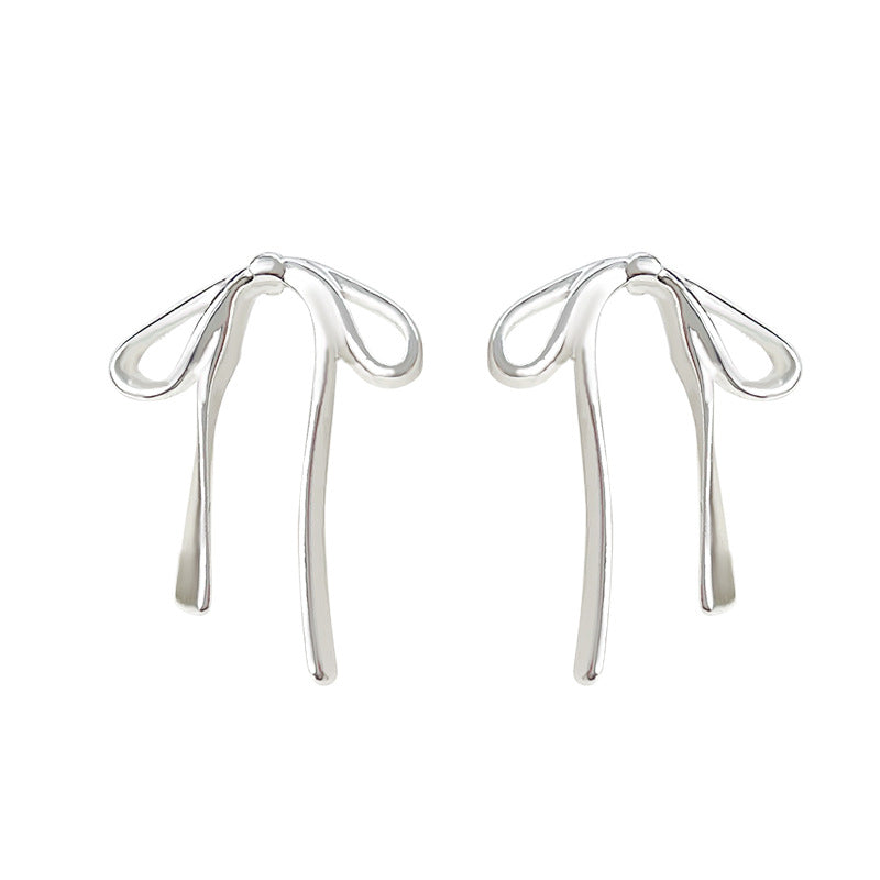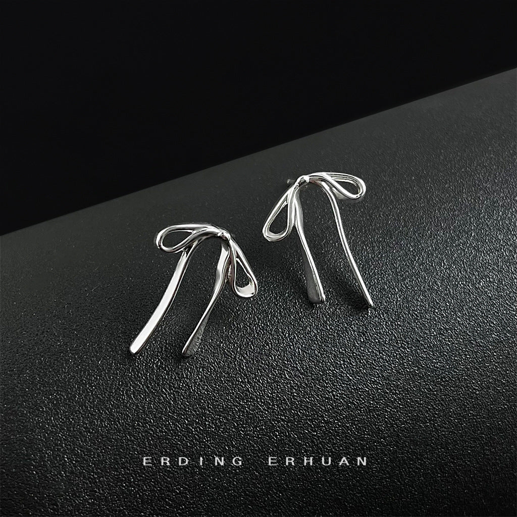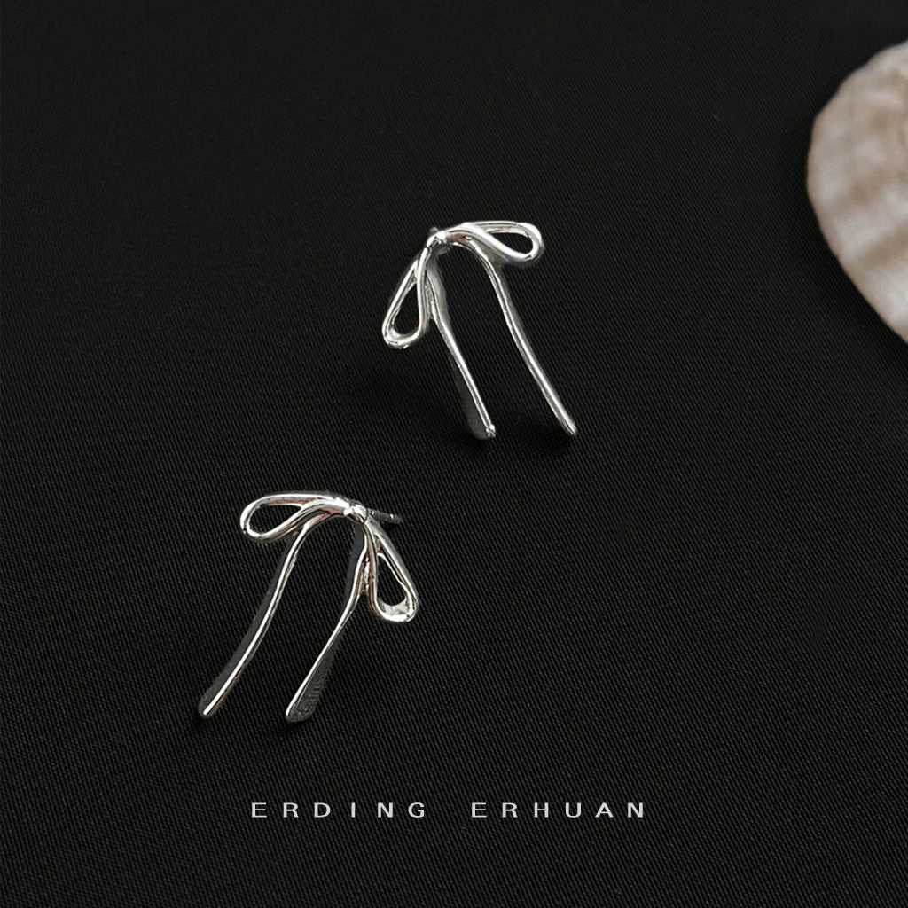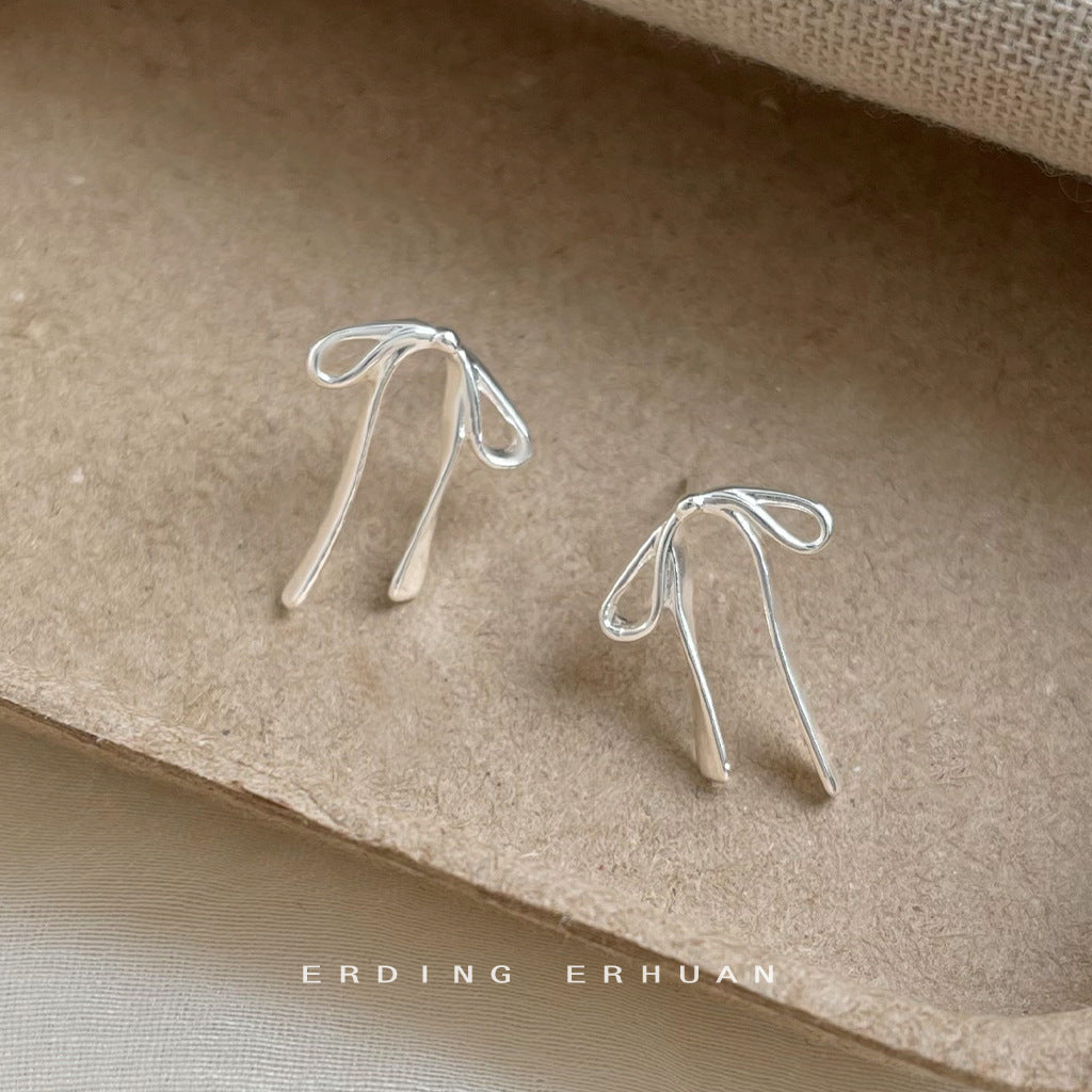 C廠【5435】清冷感925銀針蝴蝶結飄帶銀色耳環輕奢簡約設計氣質時尚百搭耳飾 25.01-2