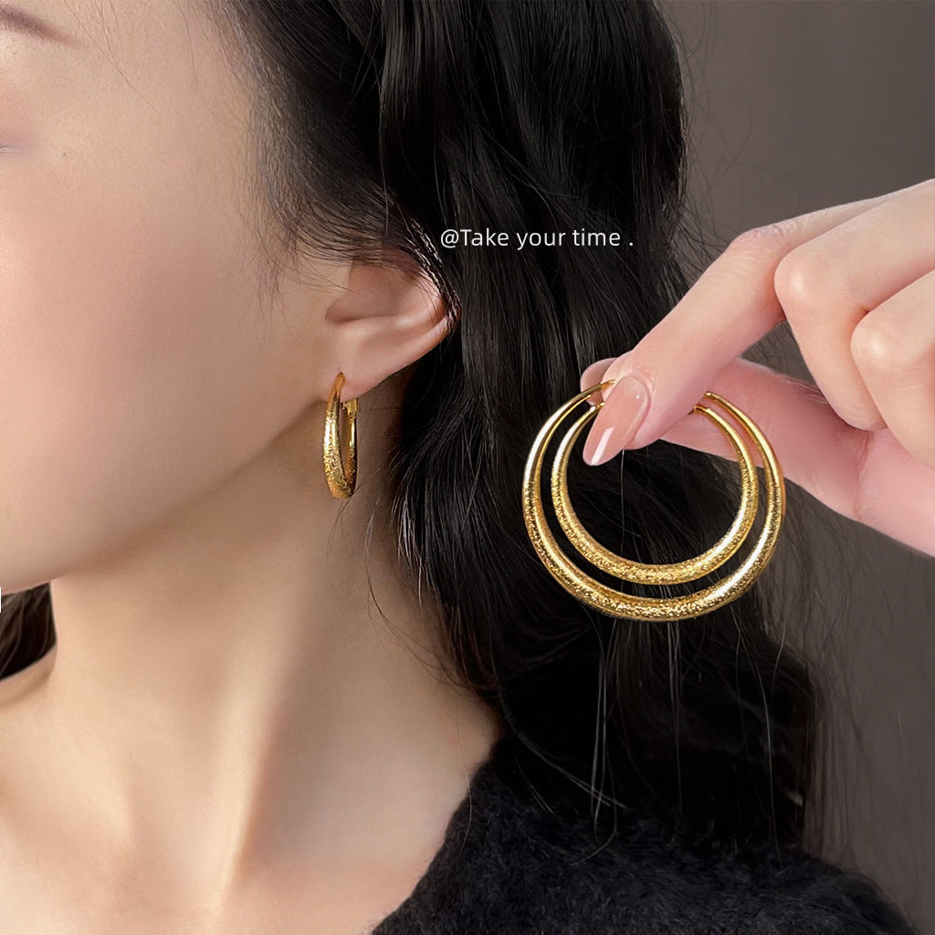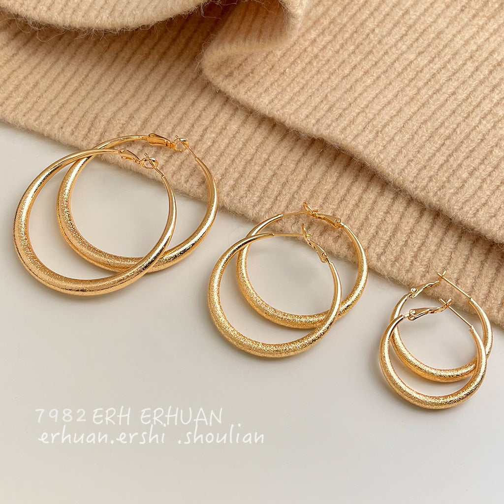 C廠【5458】法式港風簡約誇張磨砂氣質耳環女小眾設計感輕奢耳圈耳飾 25.02-2