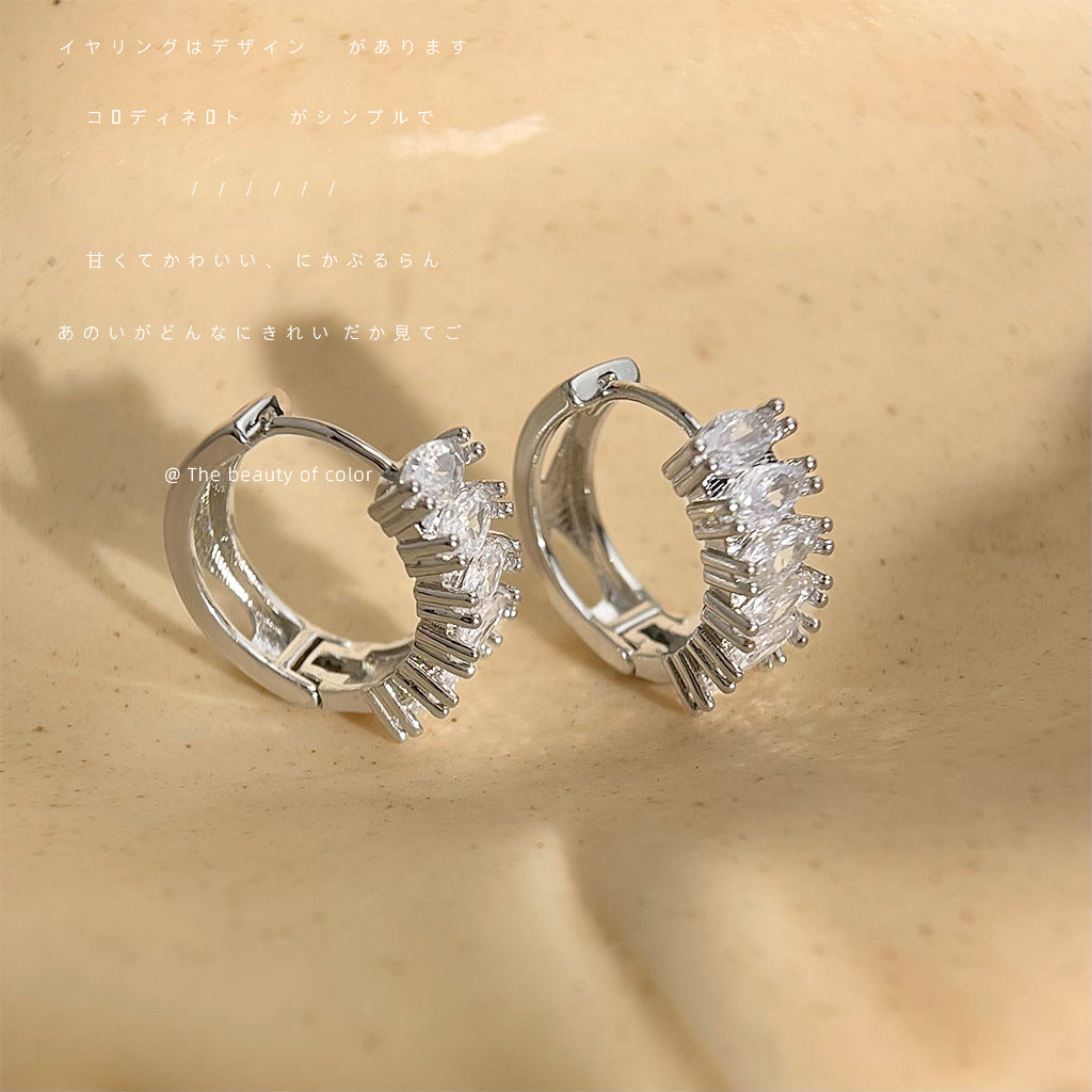 C廠【5465】歐美極簡主義鋯石圓圈耳扣氣質通勤簡約百搭時尚新款耳環 25.02-3