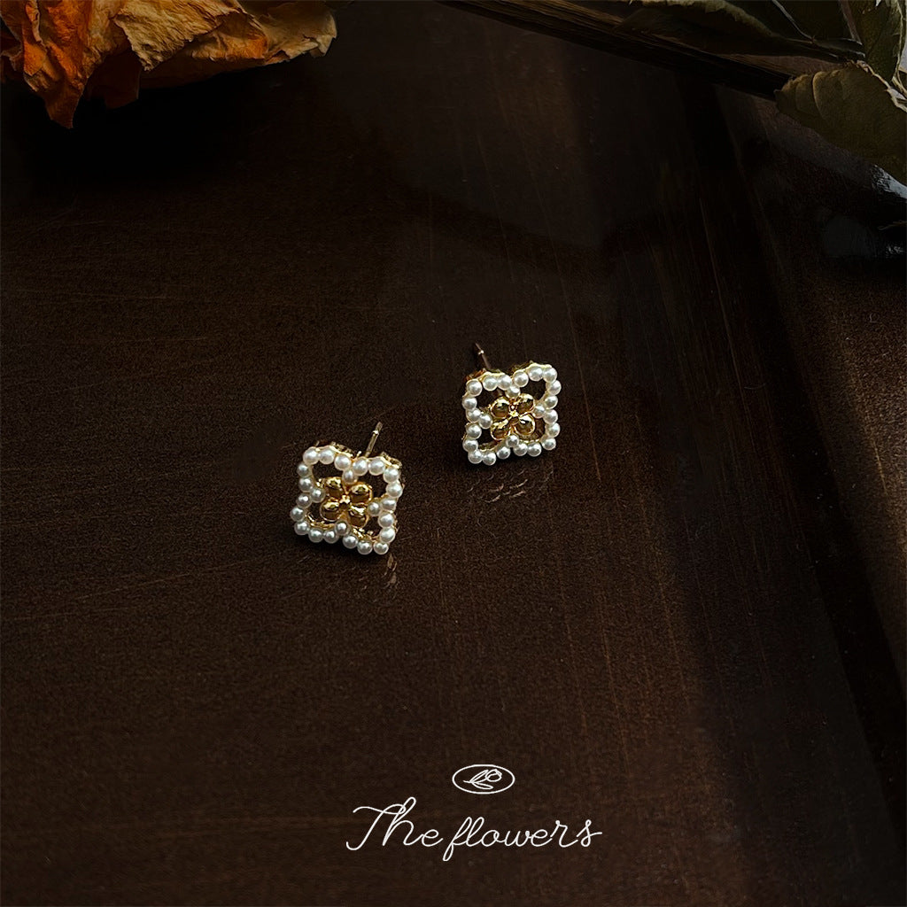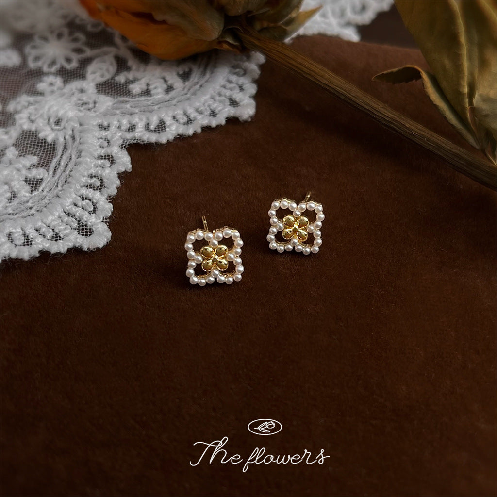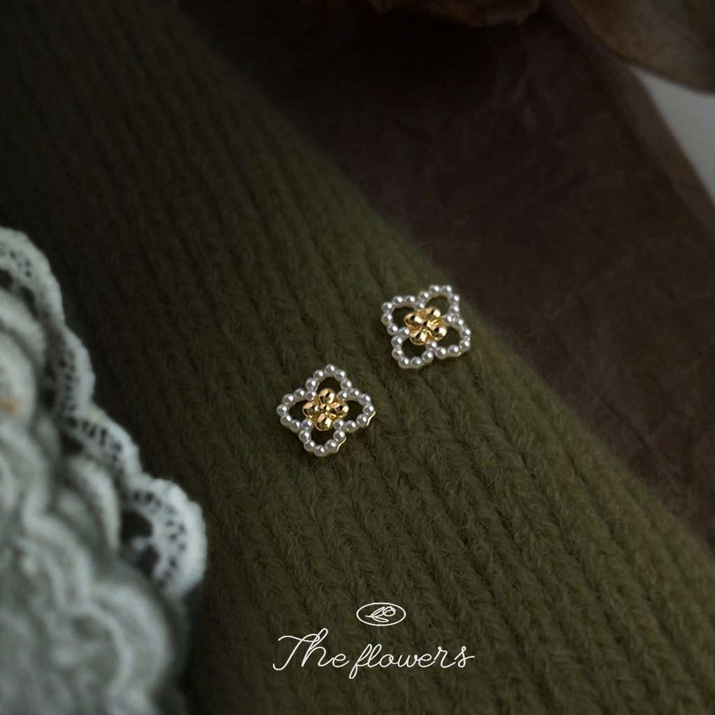 C廠【5468】輕奢風925銀針鍍14K簡約小巧幾何四葉花耳環氣質通勤百搭耳環 25.02-3