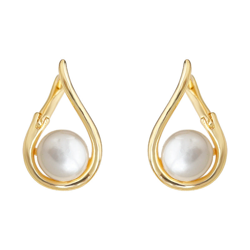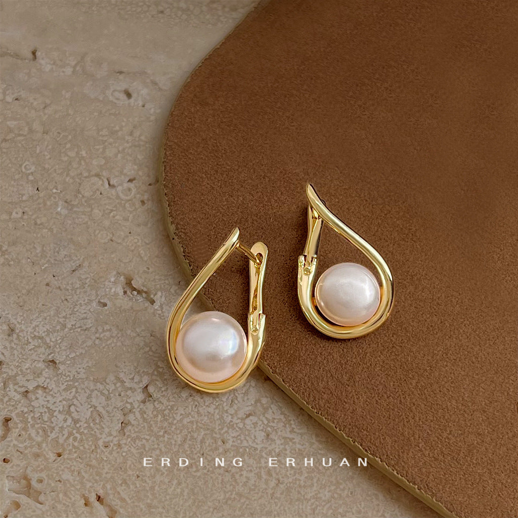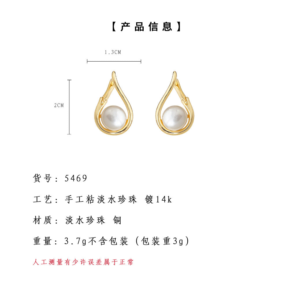 C廠【5469】淡水珍珠時尚高級感鍍14K簡約通勤優雅水滴耳環新耳環飾品 25.03-1