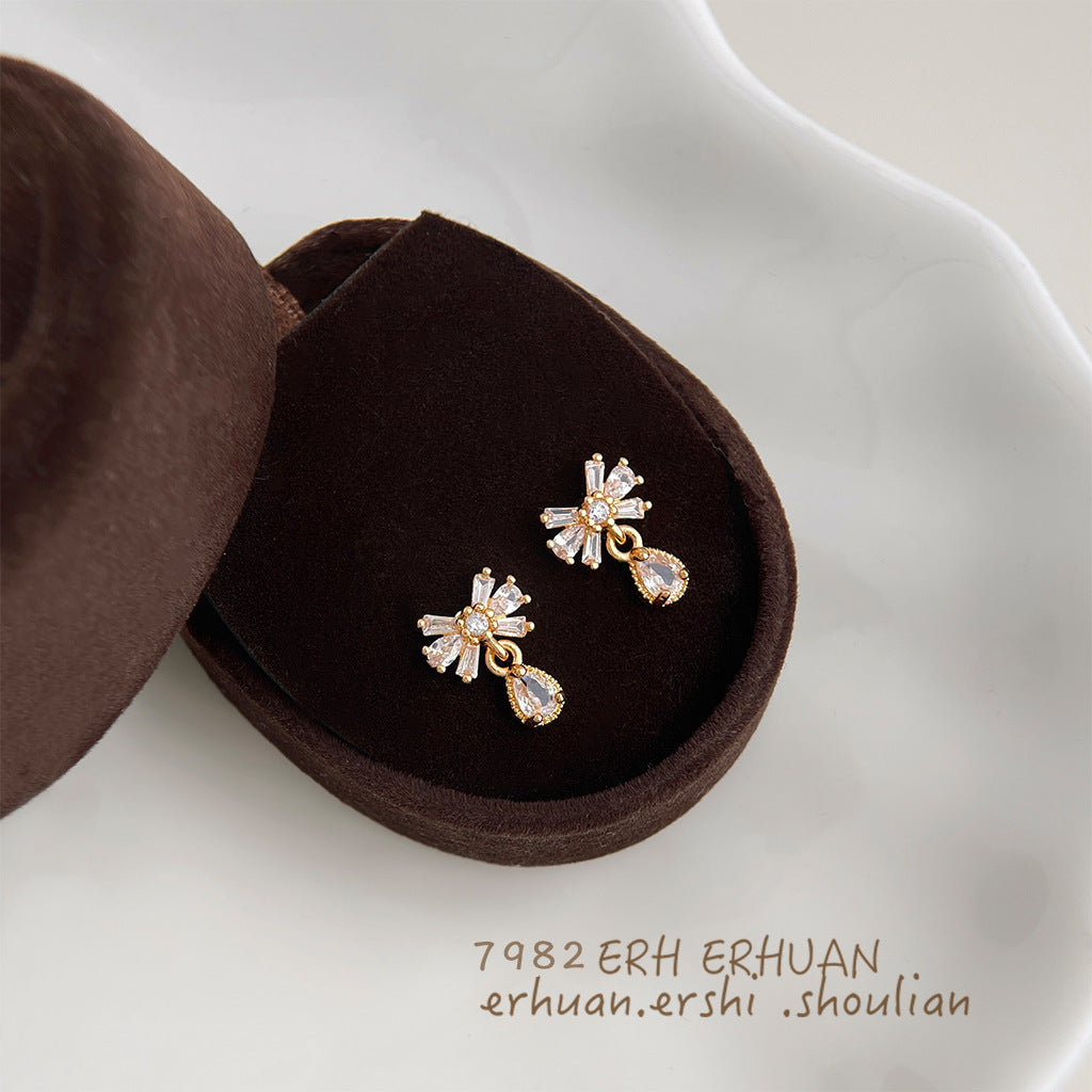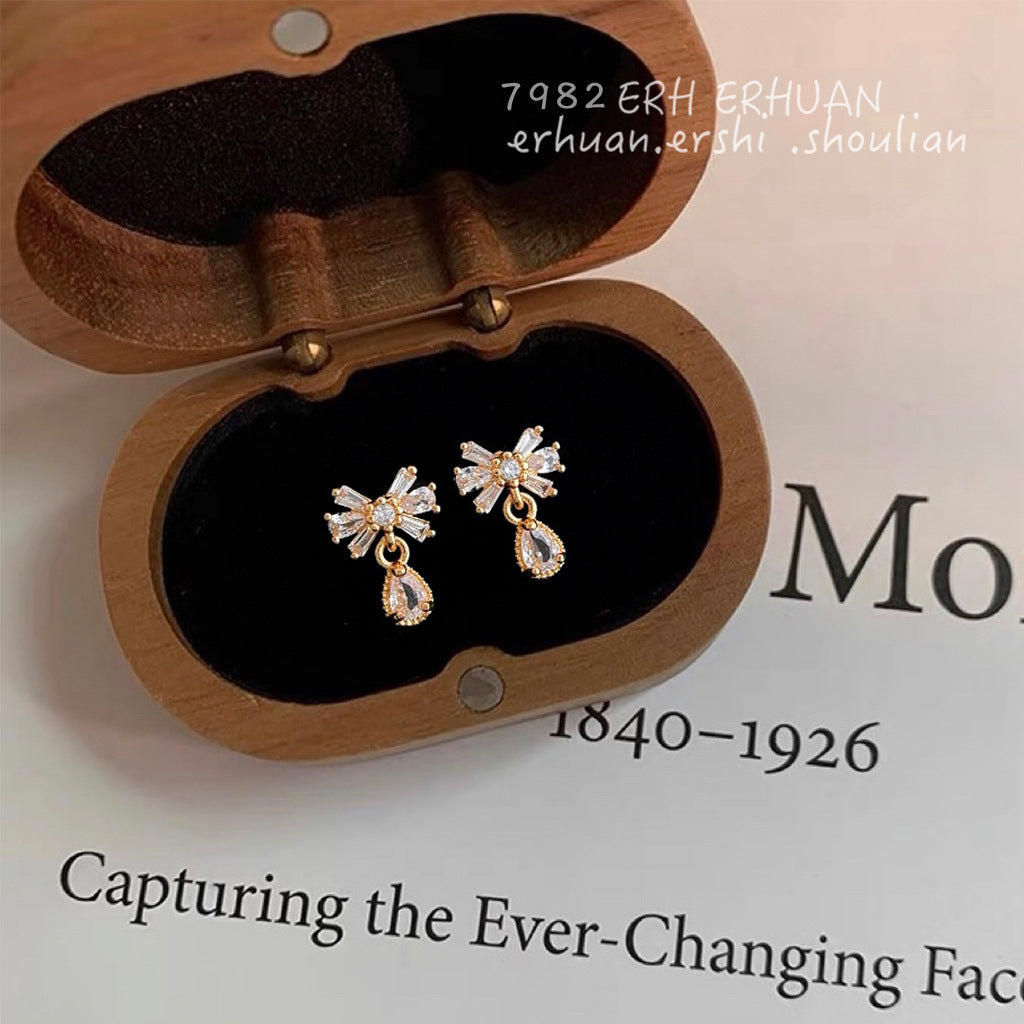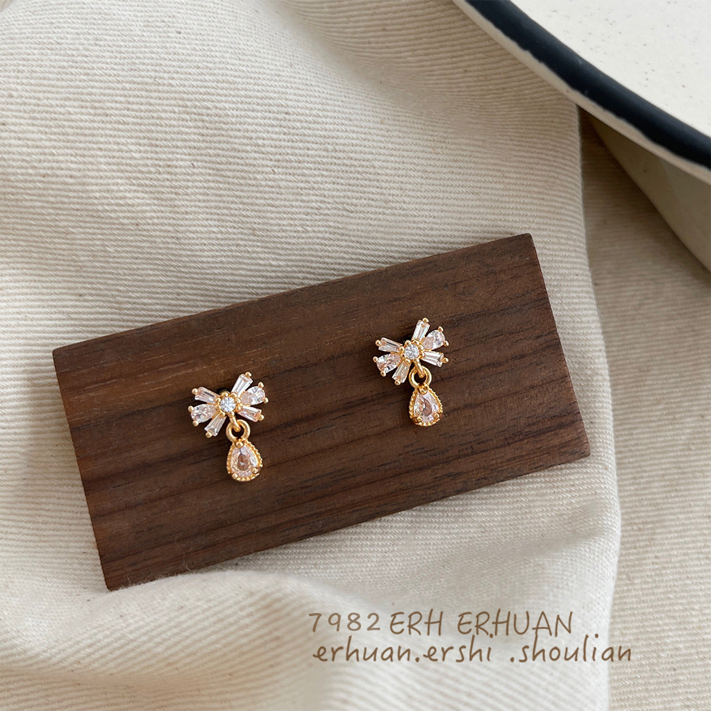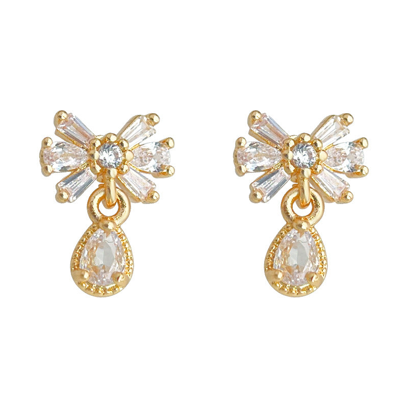 C廠【5472】微鑲鋯石鍍14K簡約通勤迷你版小巧蝴蝶結水滴耳飾新款耳環女 25.02-3