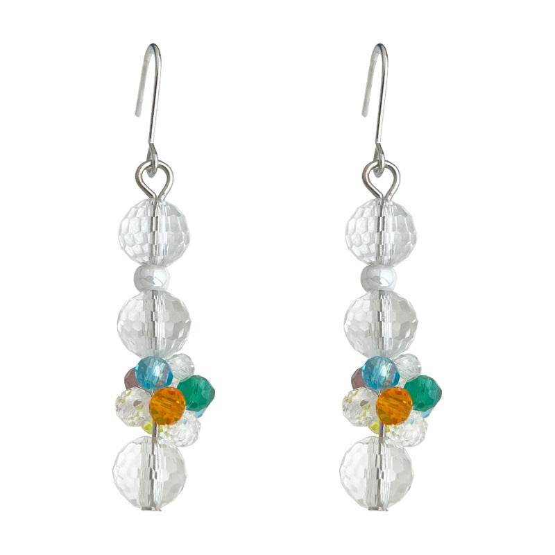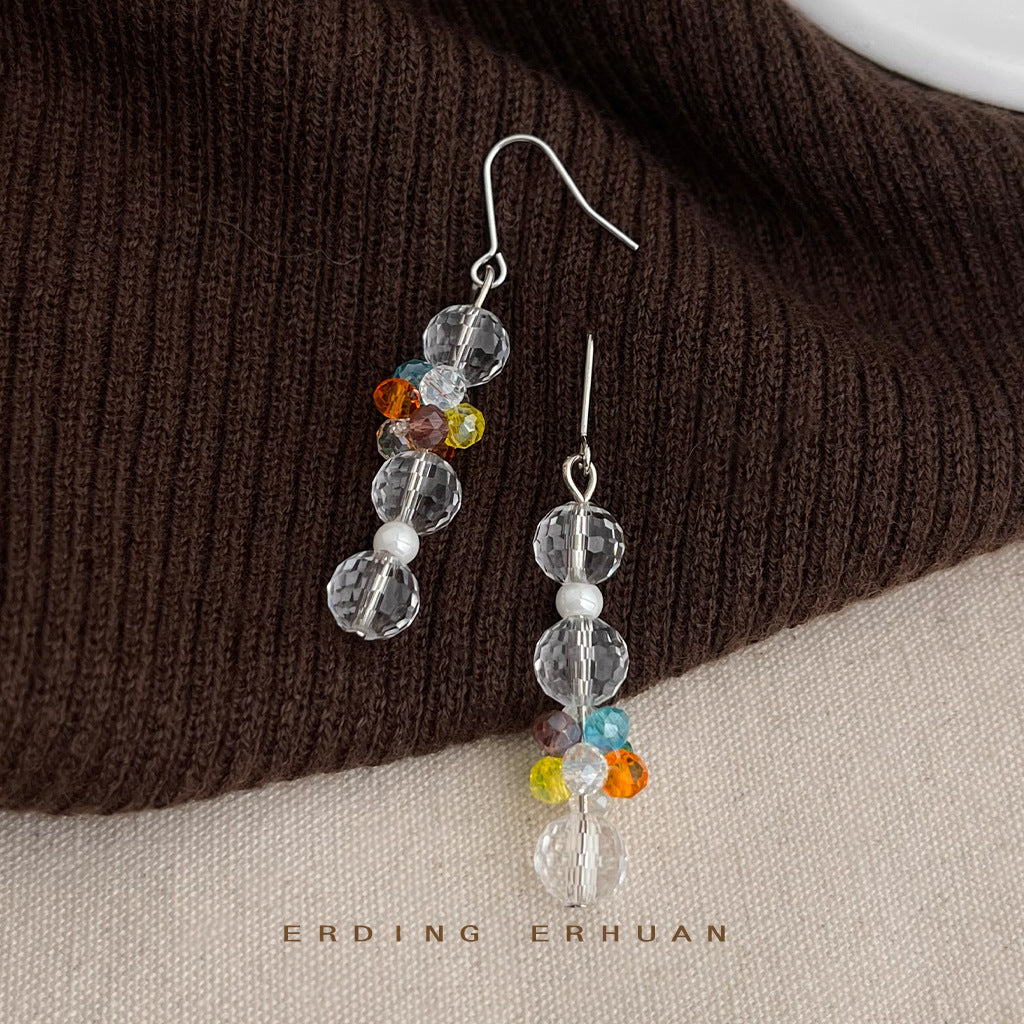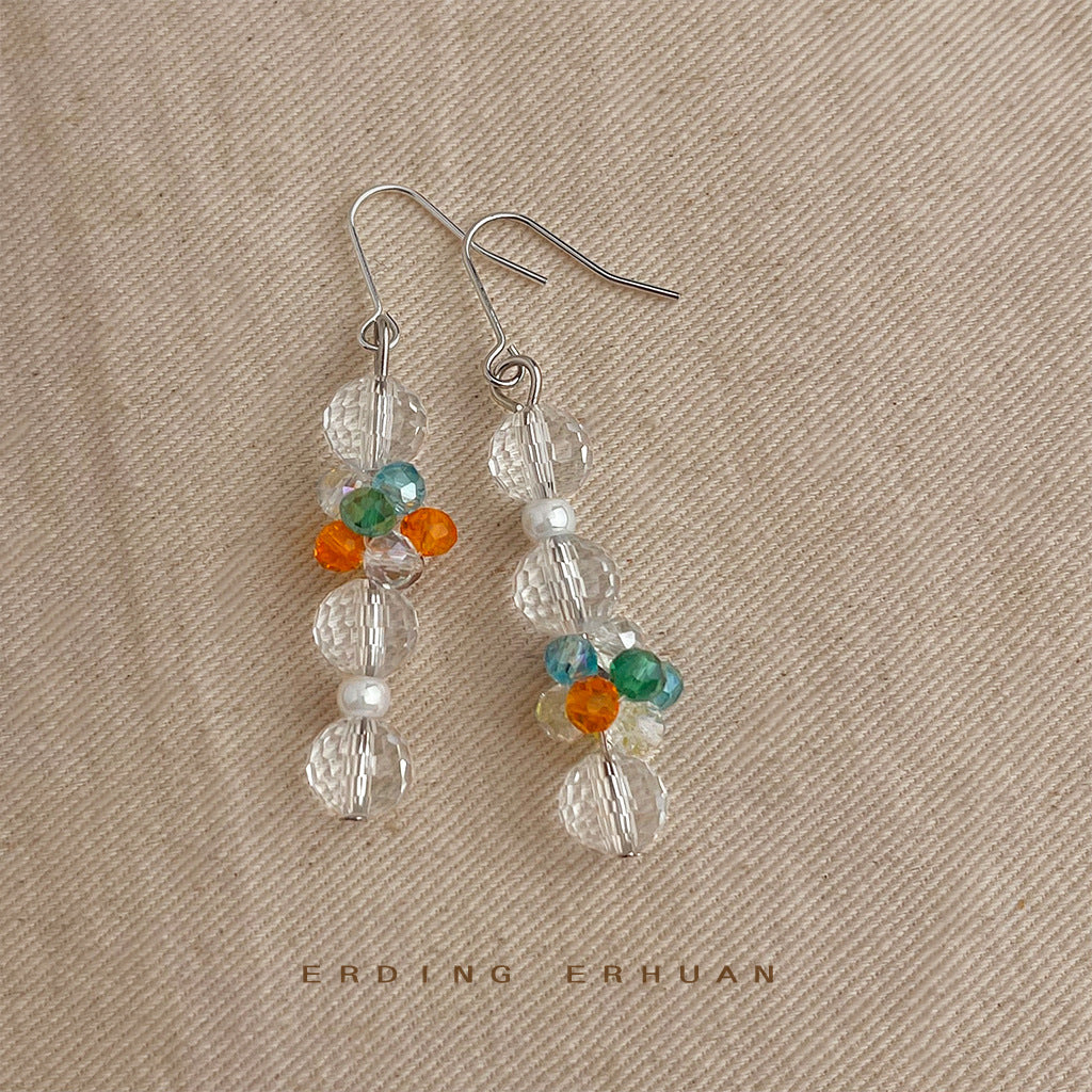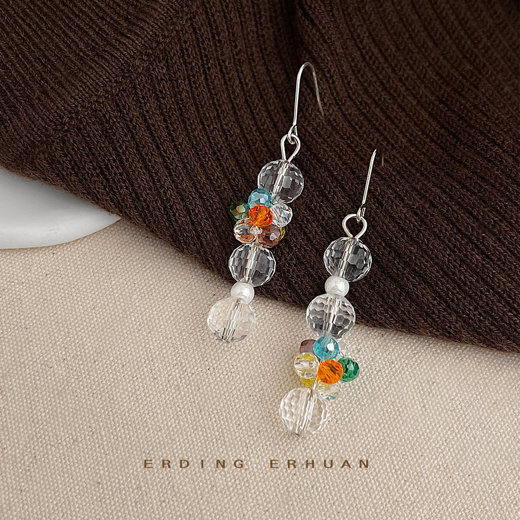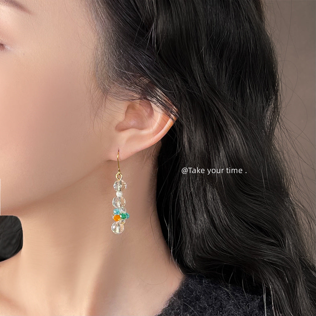C廠【5479】原創設計師玻璃水晶手工藝設計感清新甜美長款流蘇耳環耳環飾品 25.02-2
