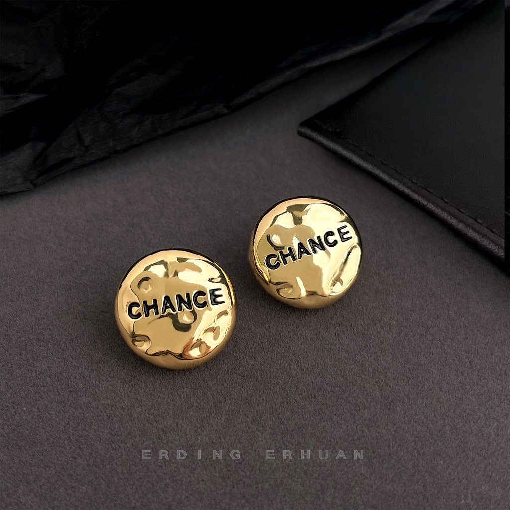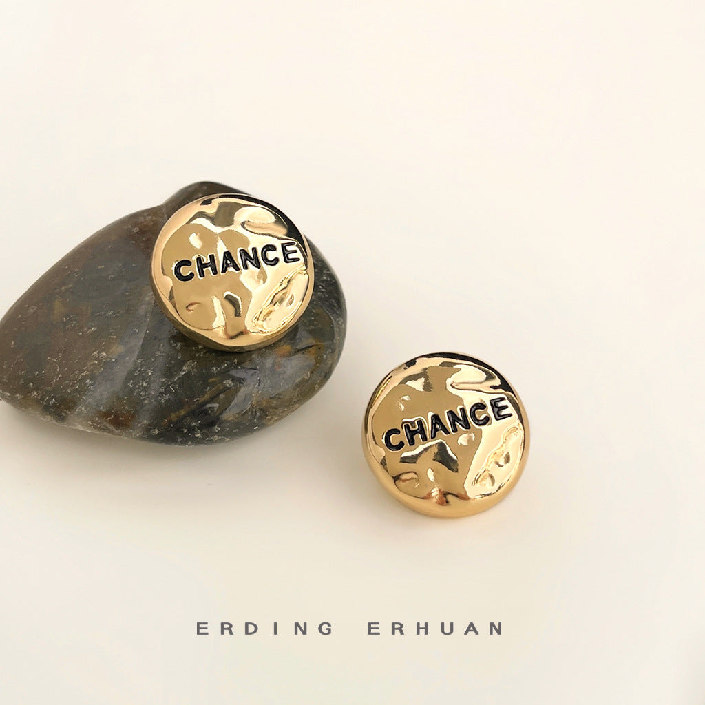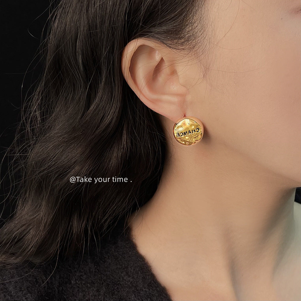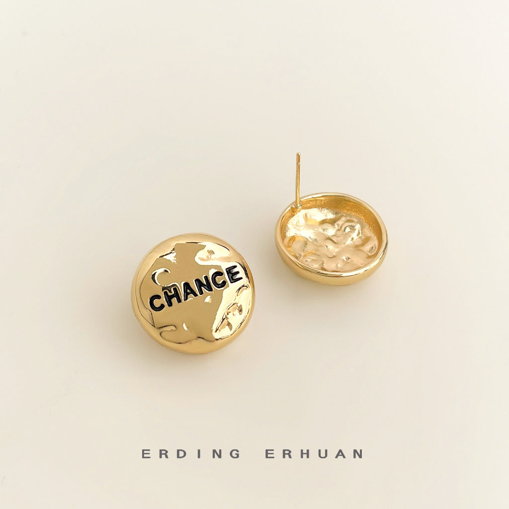 C廠【5488】時尚高級感925銀針鍍14K簡約圓形幾何不規則面小香風耳環耳飾 25.02-2