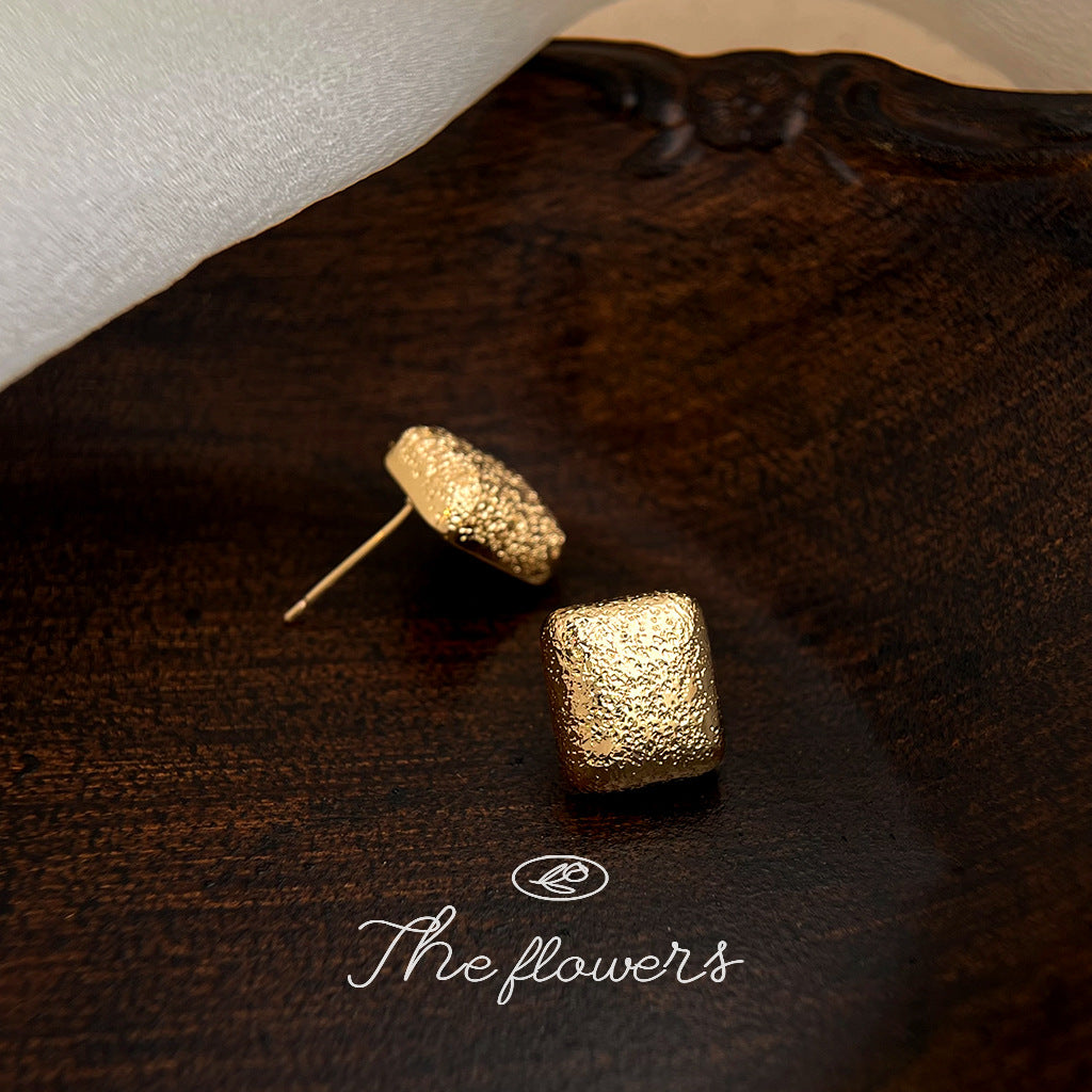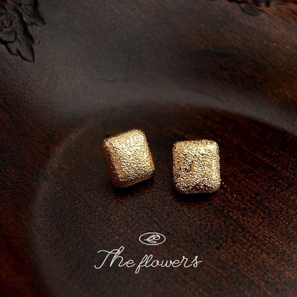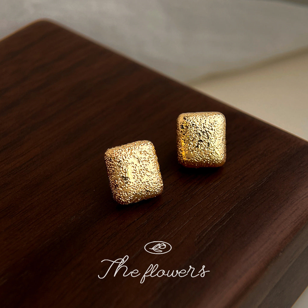 C廠【5492】小香風方形釘砂紋925銀針鍍14K時尚通勤簡約幾何耳環飾品耳飾 25.02-2