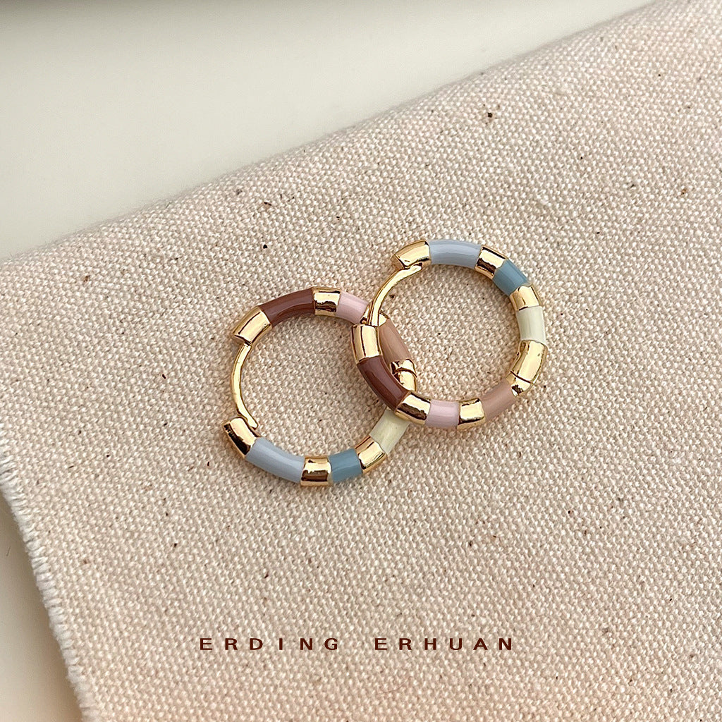 C廠【5498】春天系七彩琺瑯滴釉圓形幾何鍍14K簡約甜美耳扣耳飾新款飾品 25.02-2