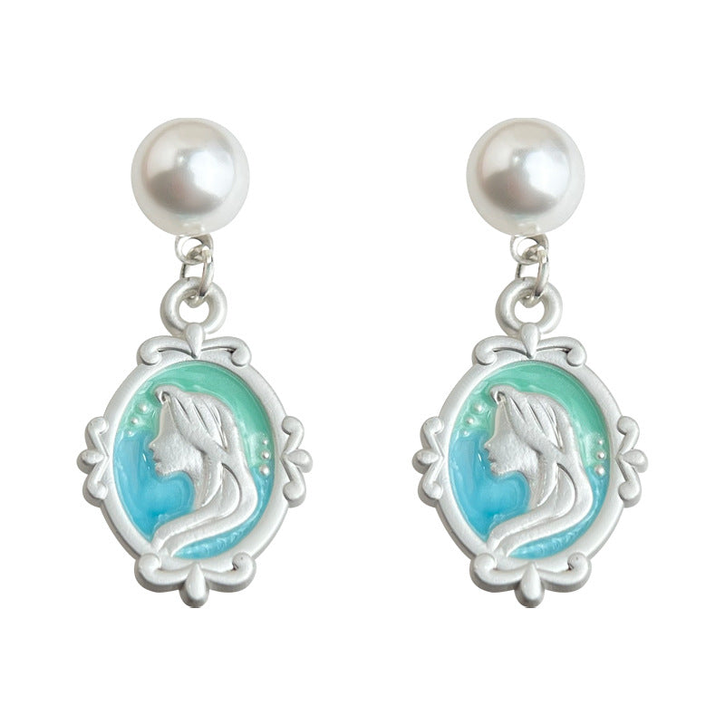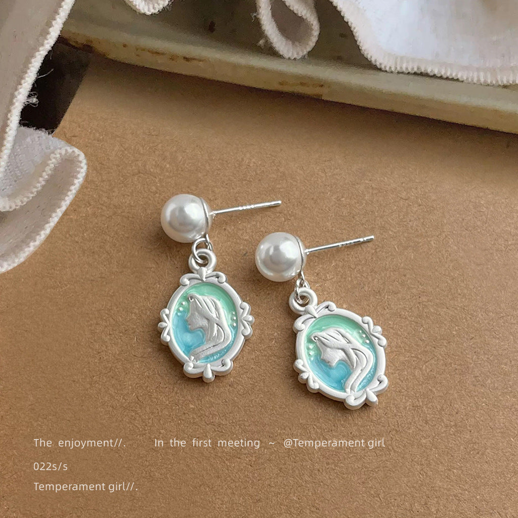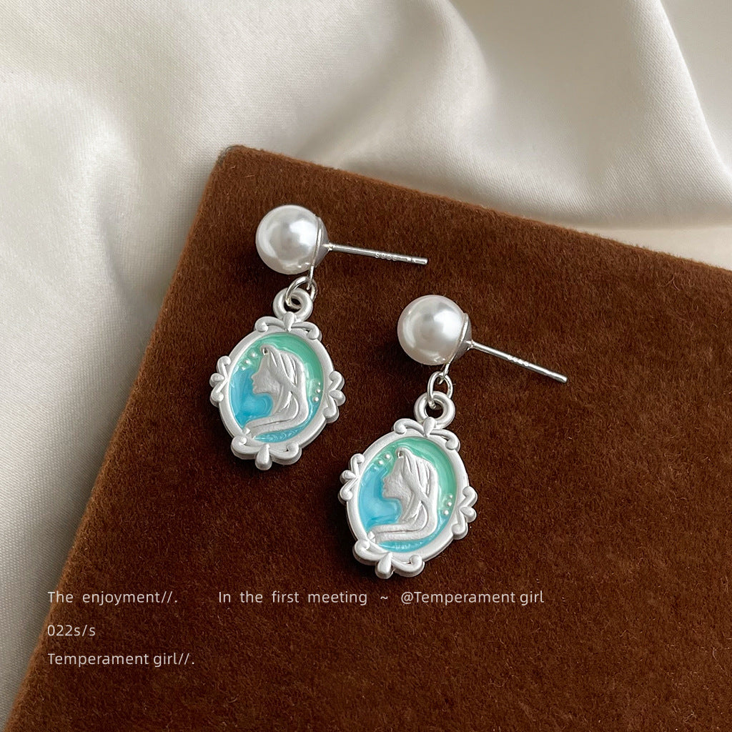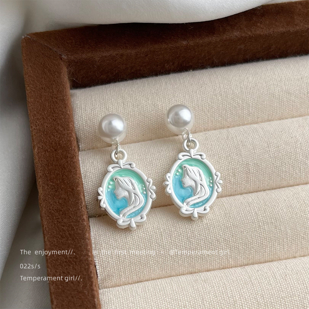 C廠【5574】薄荷曼波綠仙女風清新甜美橢圓相框美人圖耳環女氣質優雅耳環 25.02-4