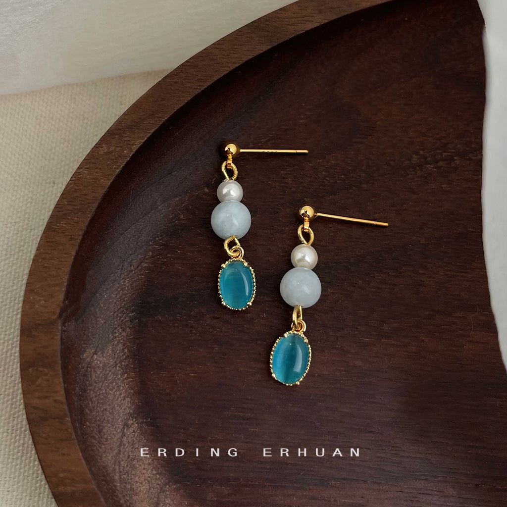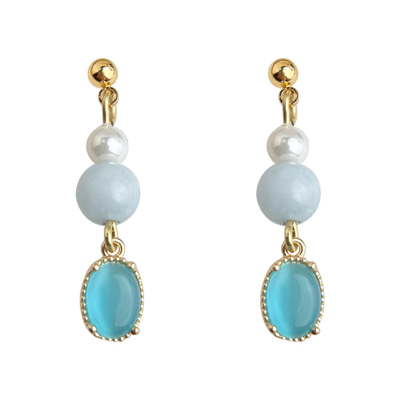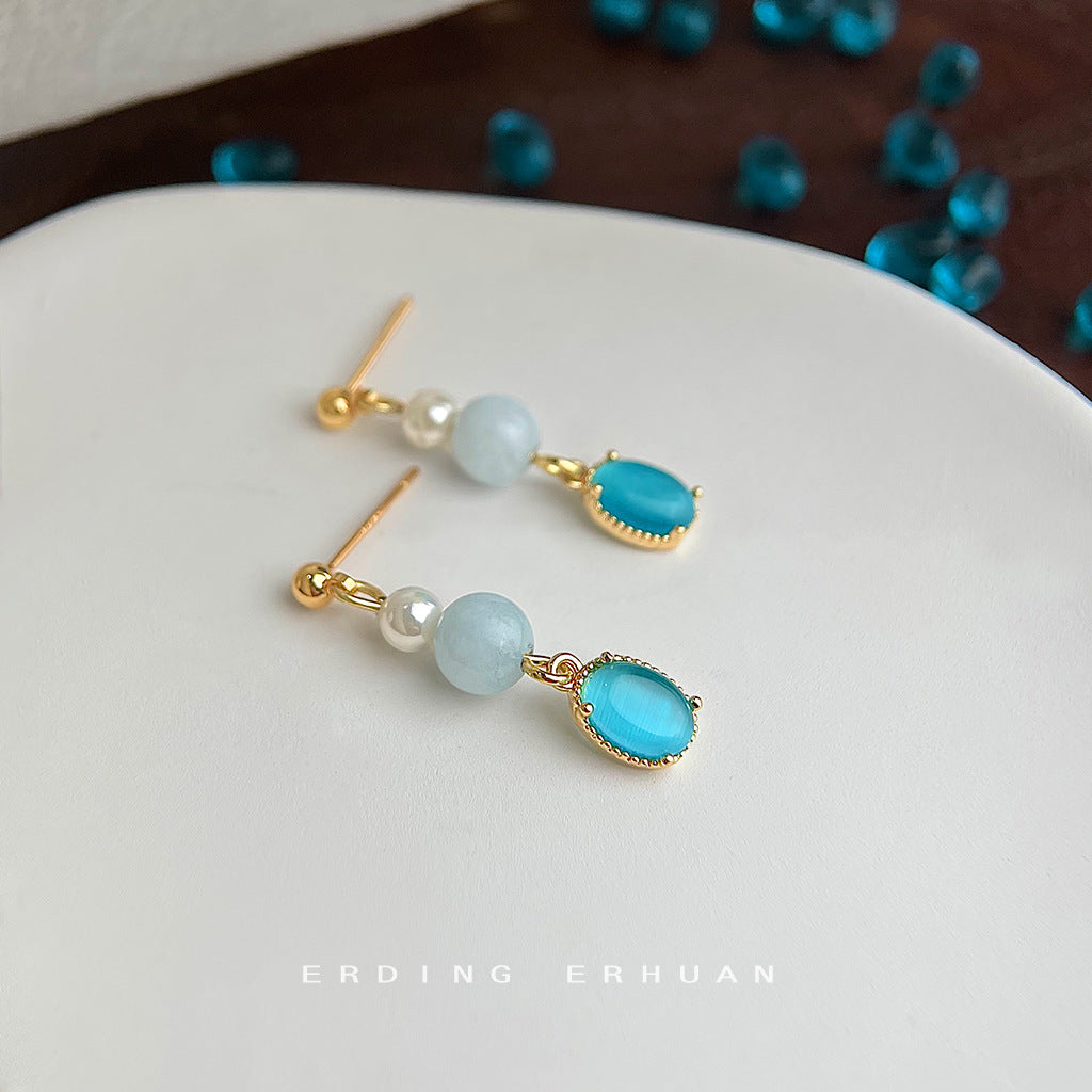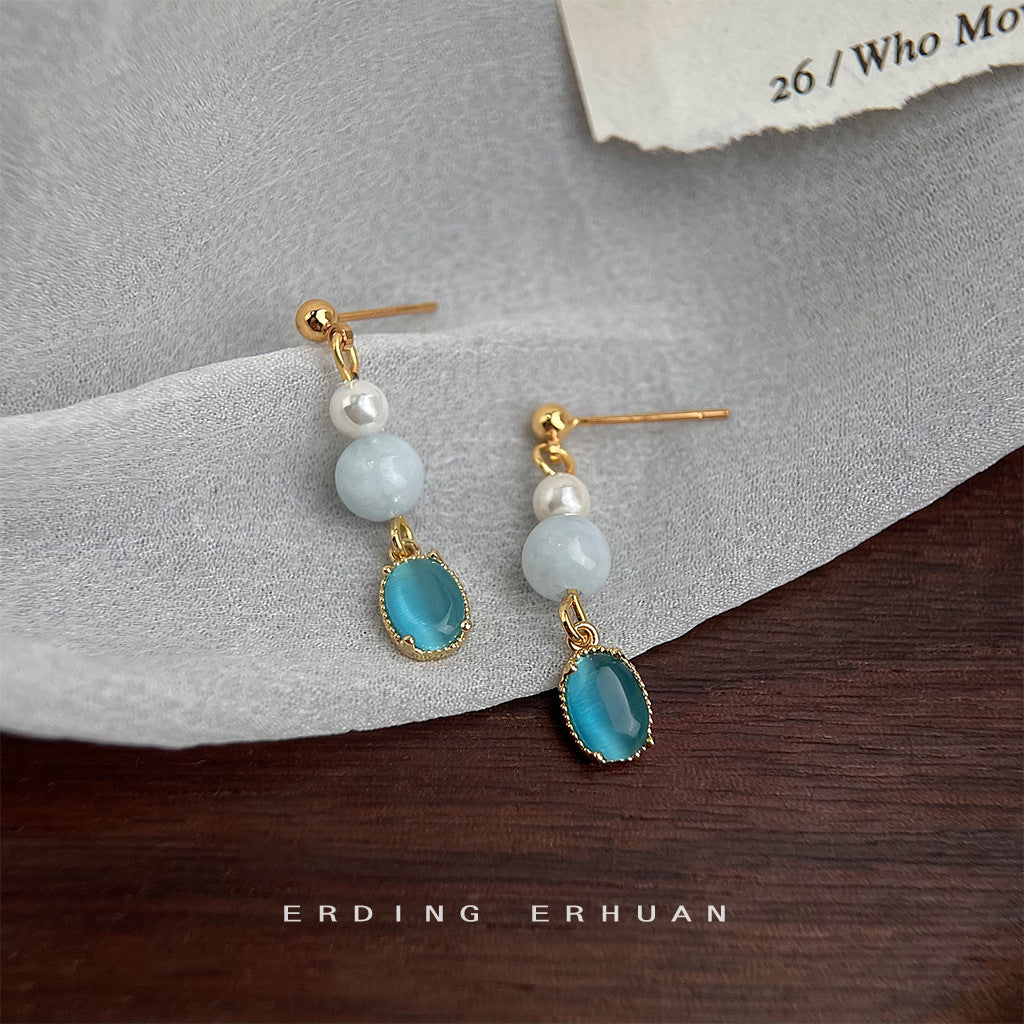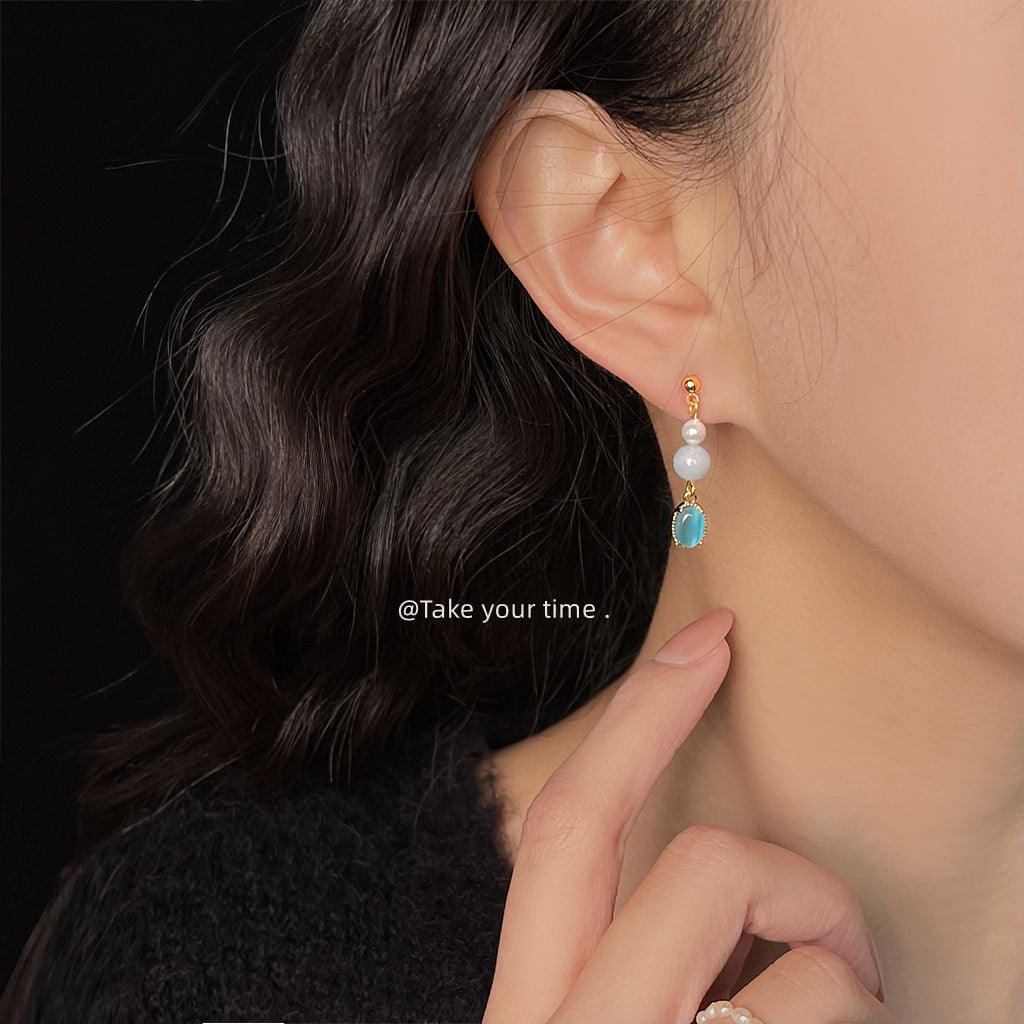 C廠【5582】半夏綠~玻璃貓眼石小巧簡約優雅甜美文藝氣質手工耳環耳環女 25.02-4
