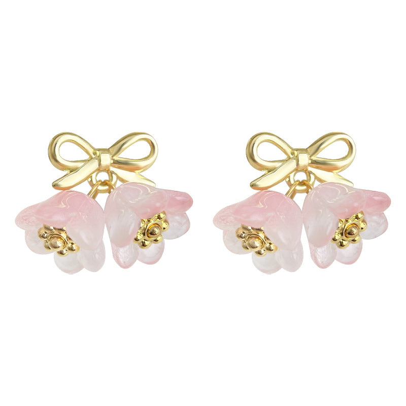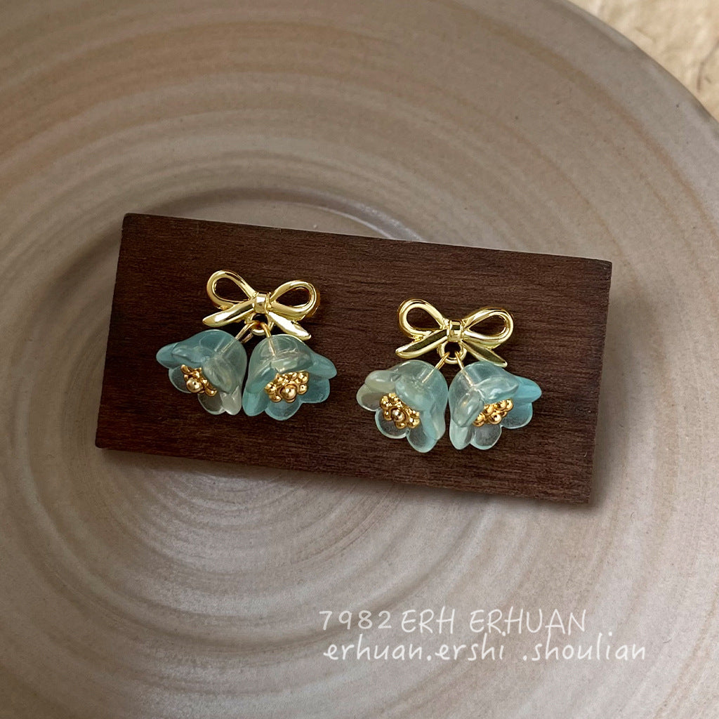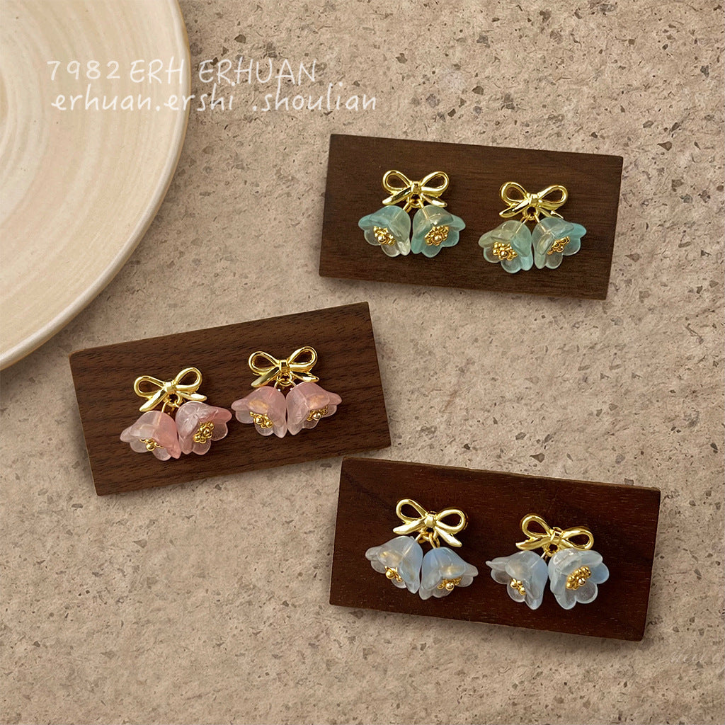 C廠【5596】清新甜美鈴蘭花手工藝設計師款蝴蝶結花朵耳環女新款耳飾 25.02-4