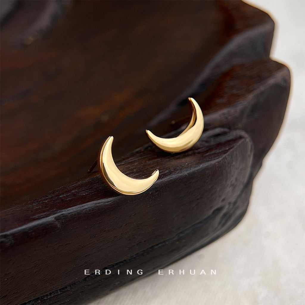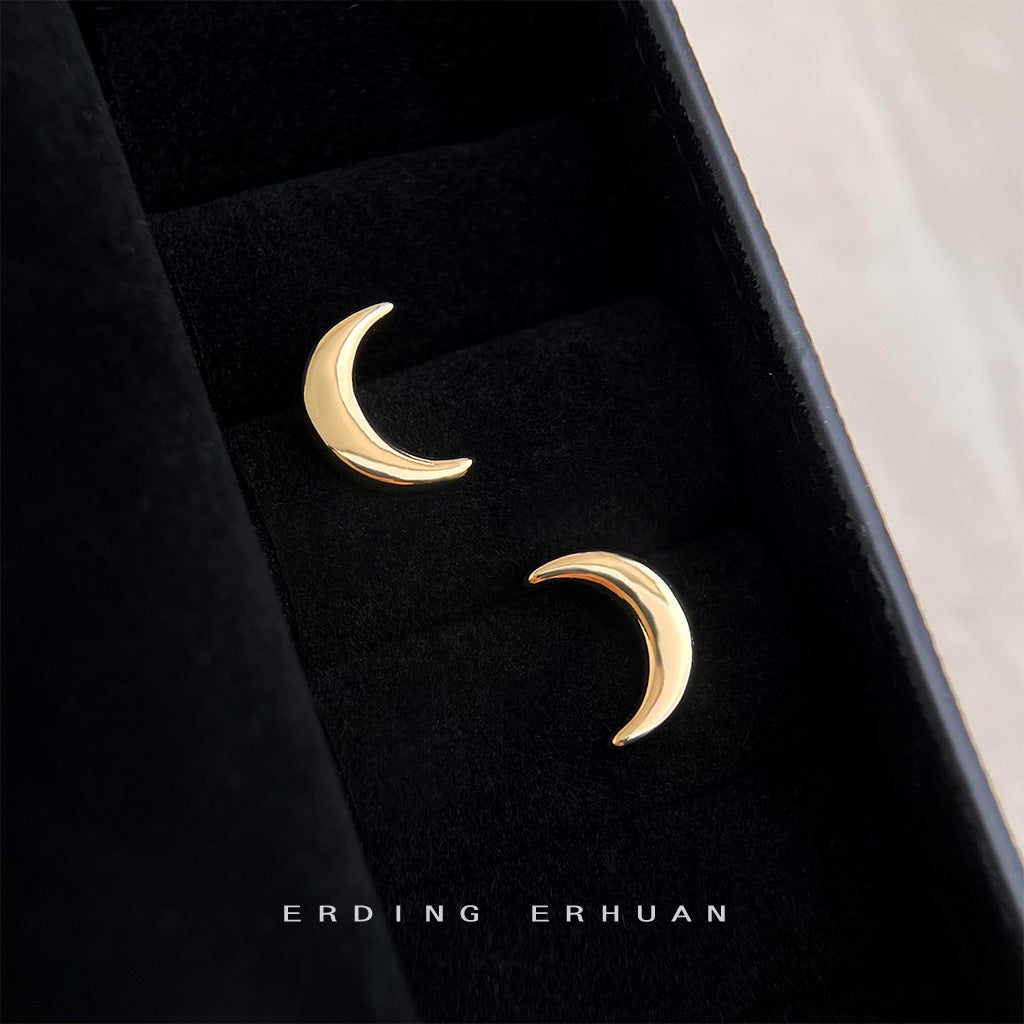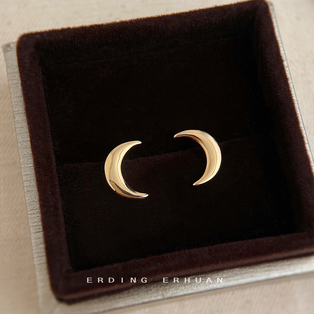 C廠【5687】一輪彎月!時尚通勤925銀針鍍14K高級感百搭簡約耳環氣質耳飾 25.03-2