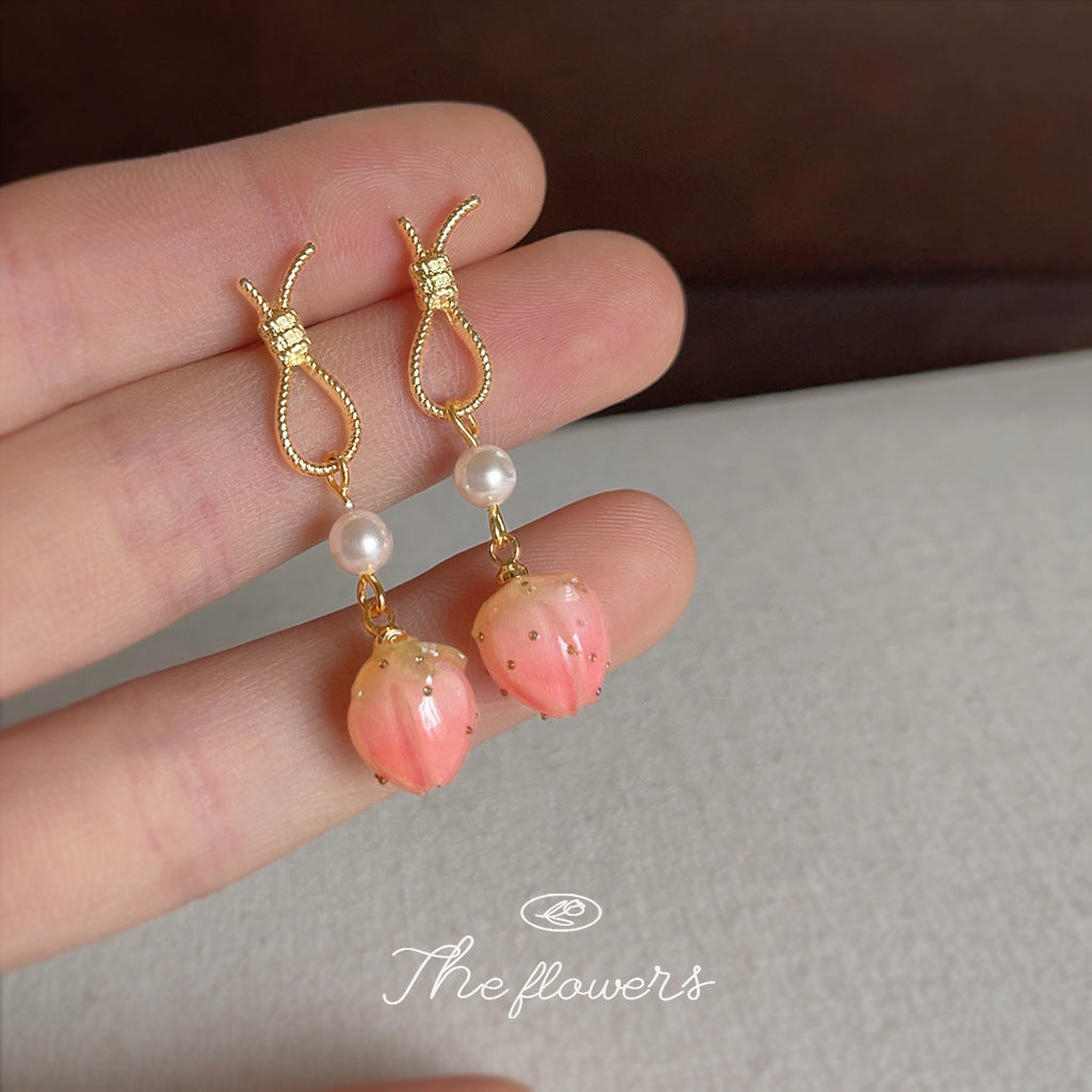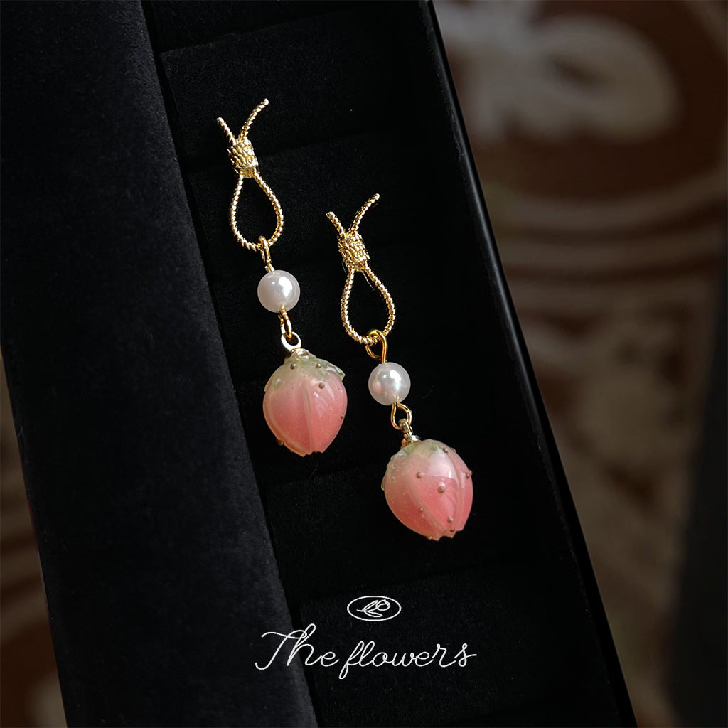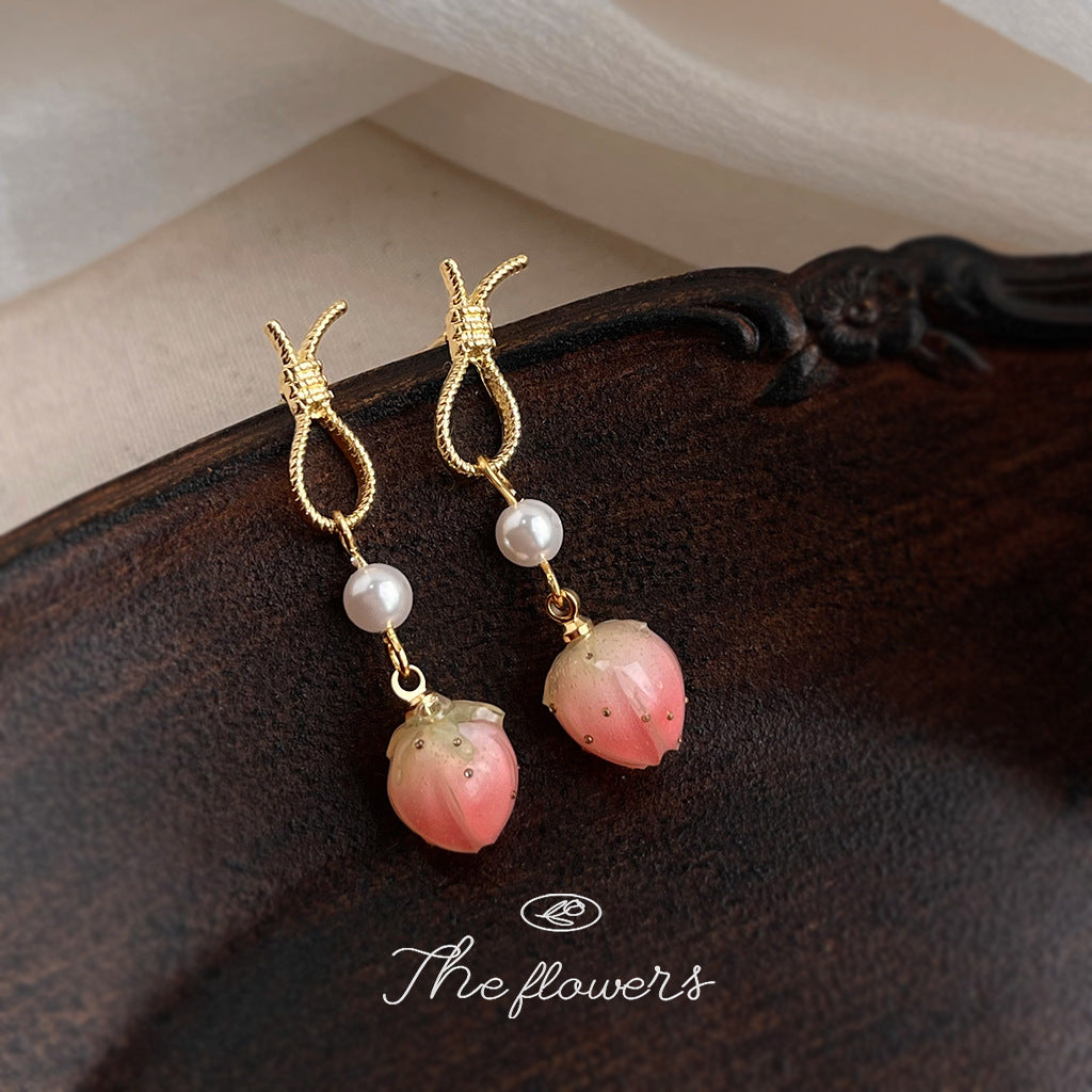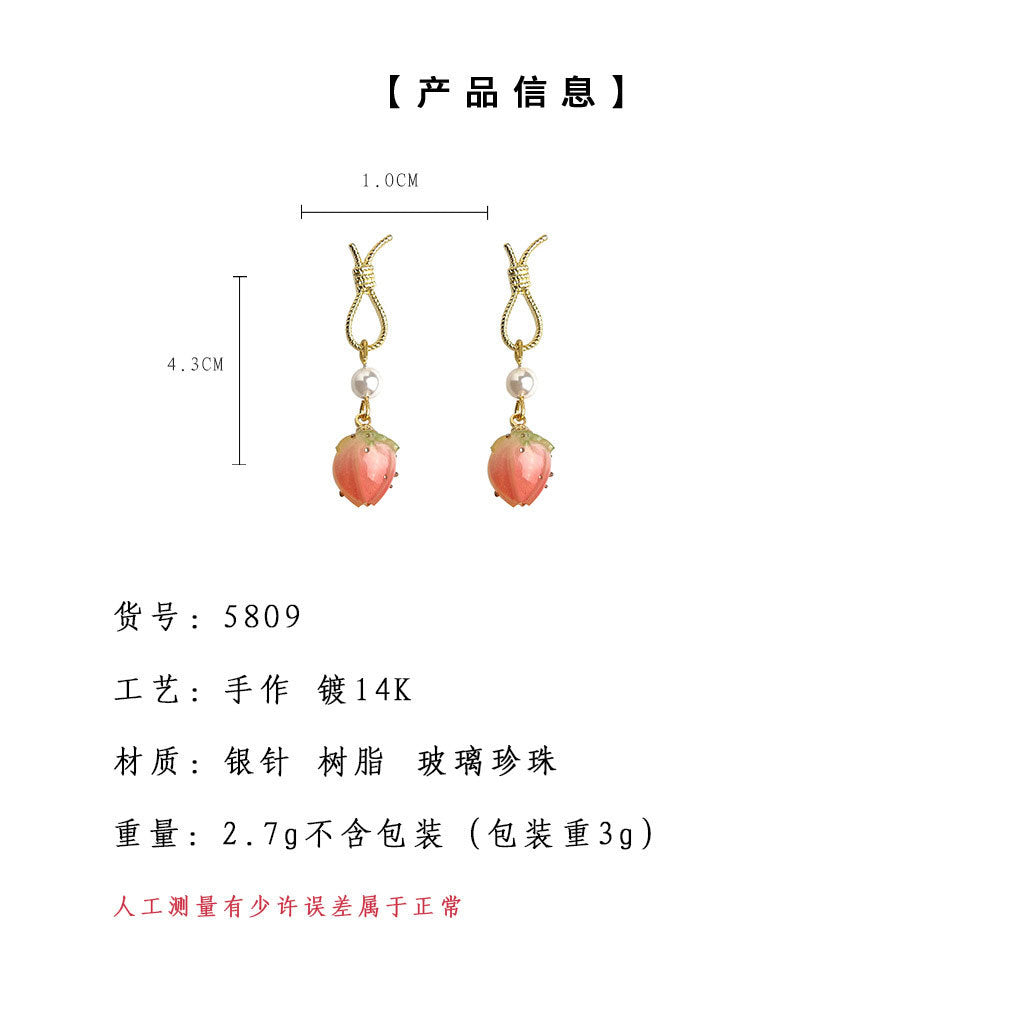 A廠【5809】「蜜桃草莓」清新甜美粉紅小草莓耳環女時尚氣質優雅耳環 25.11-4