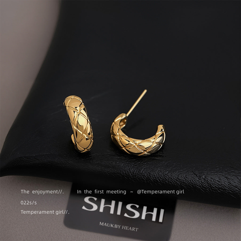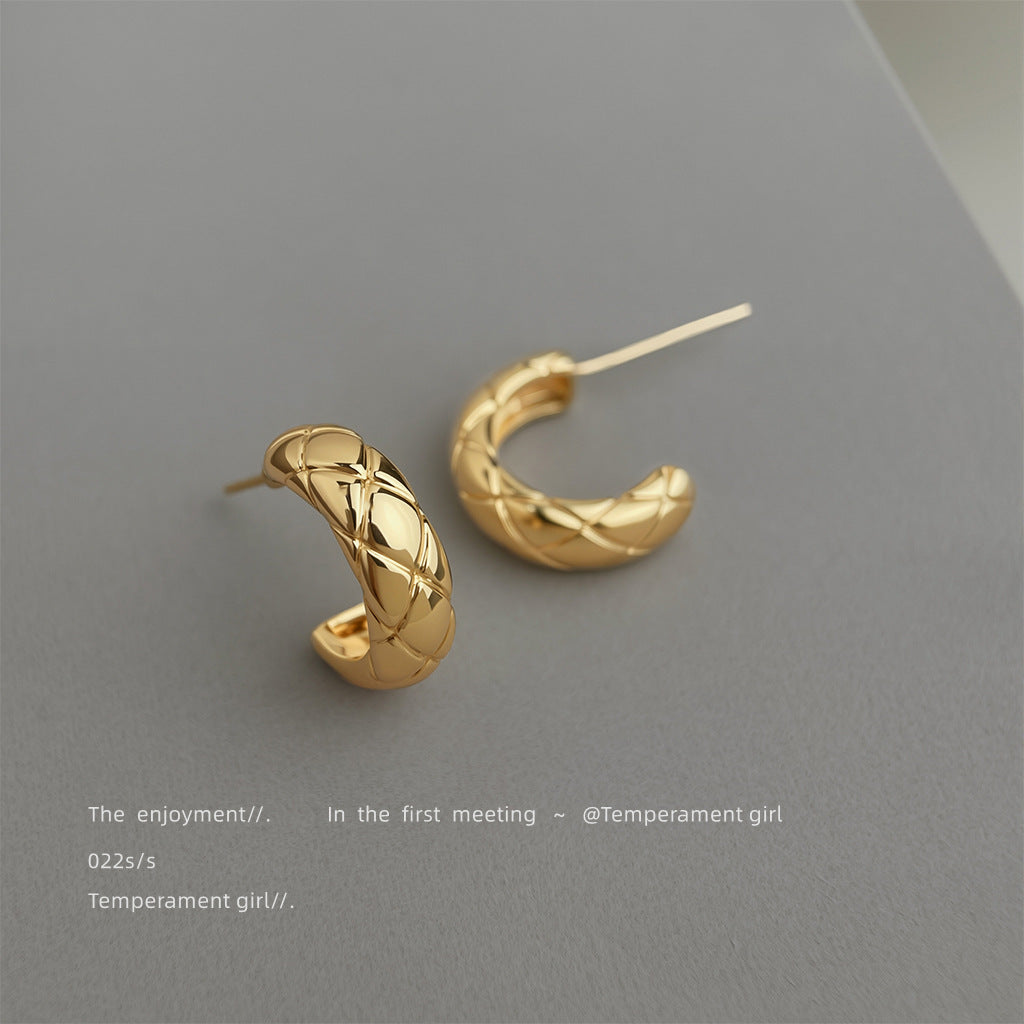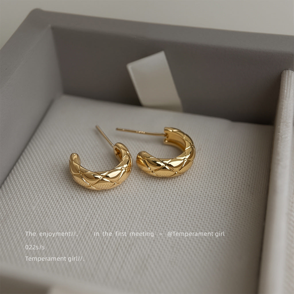 C廠【5824】高級感925銀針鍍14K簡約通勤時尚輕奢金屬感耳環飾品 25.09-3