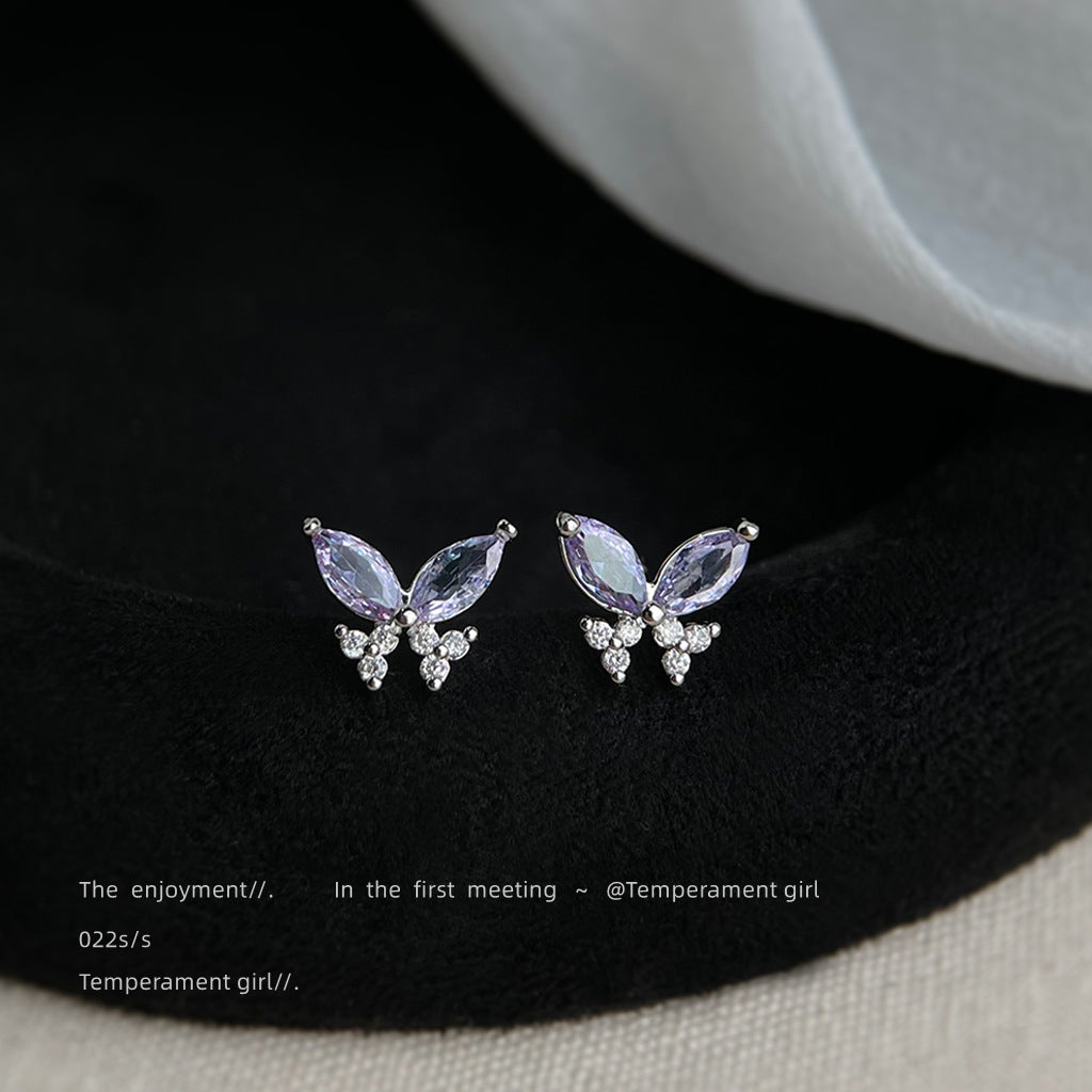 C廠【5827】清新甜美紫色鋯石925銀針蝴蝶耳環簡約輕奢風新款耳環 25.04-1