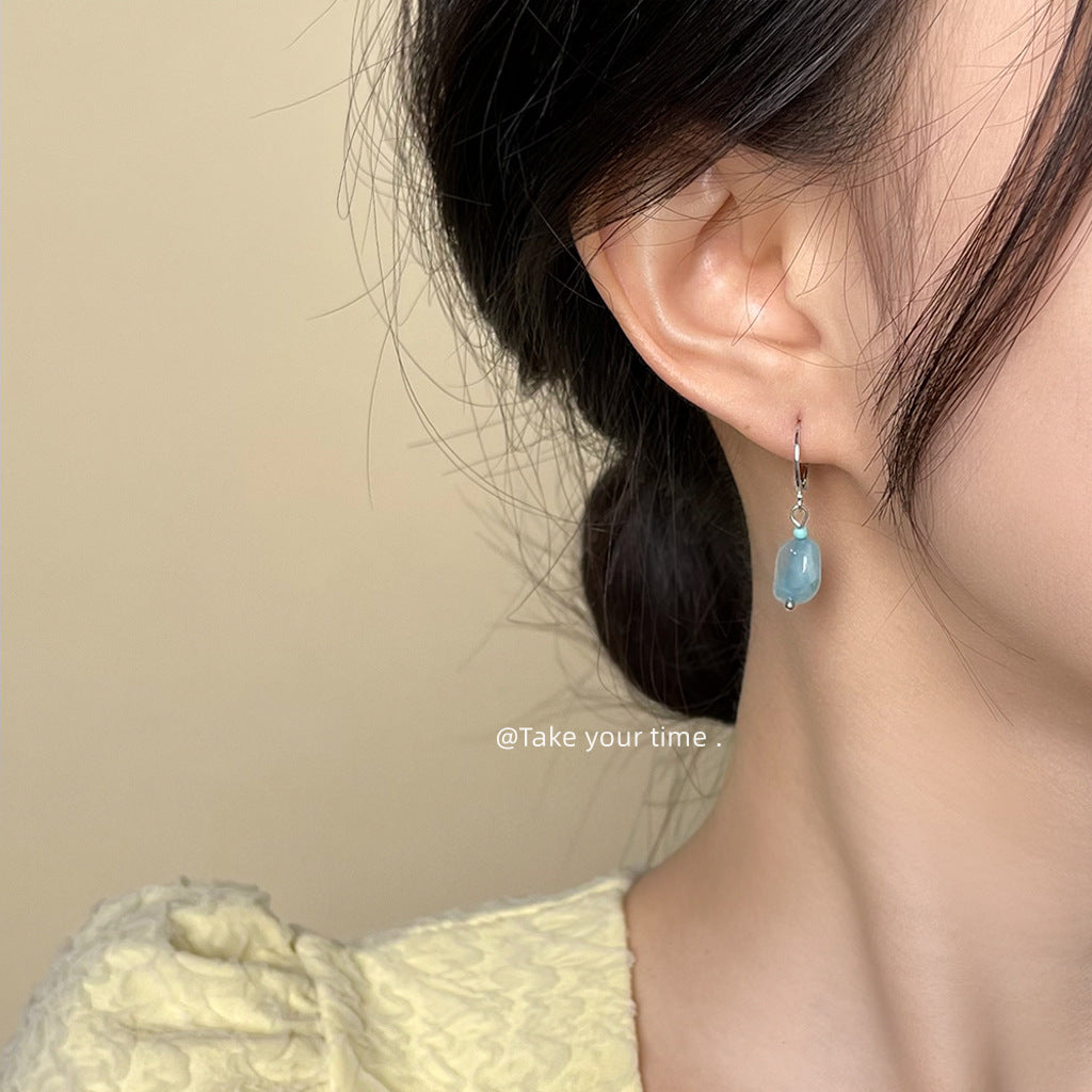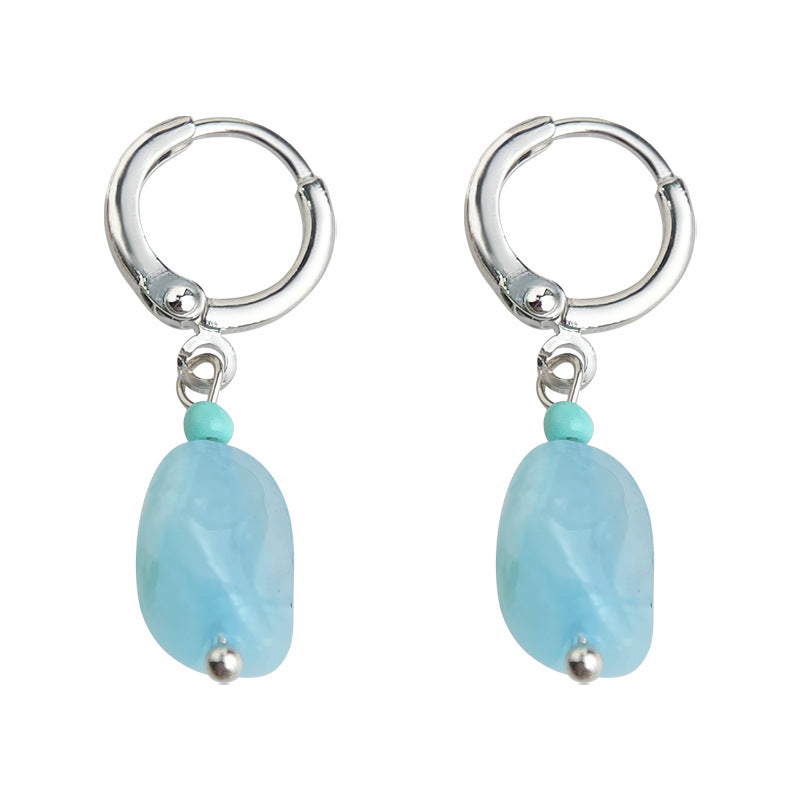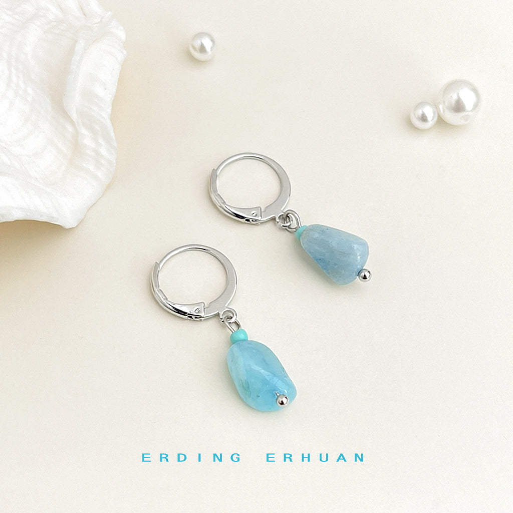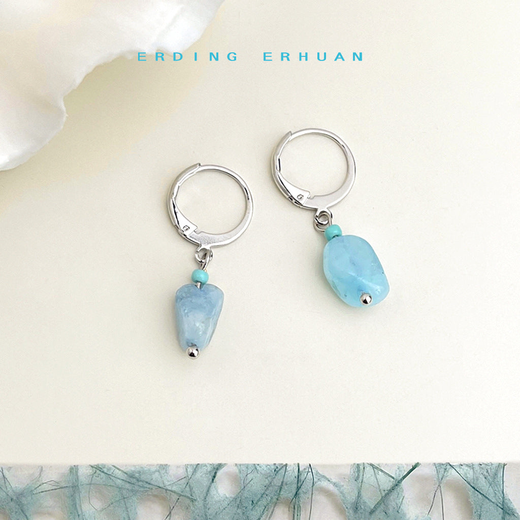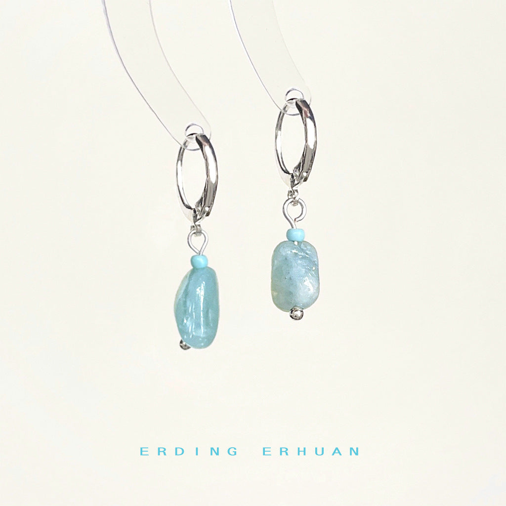 C廠【6007】「蔚藍之海」~清新藍水晶礫石耳環個性ins風天然石度假風耳飾 25.06-2