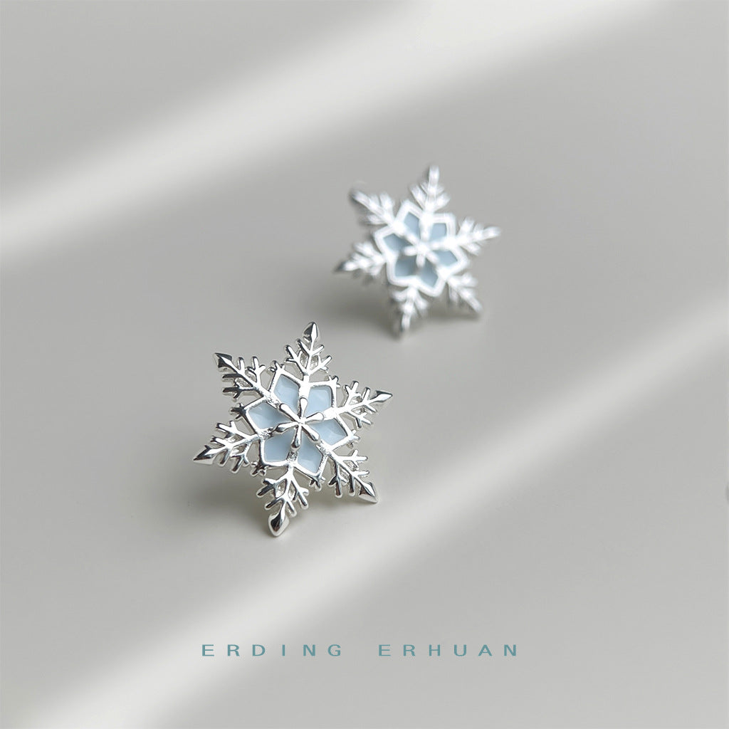 C廠【6064】清新甜美夏日新款小雪花925銀針耳環氣質優雅設計師耳環飾品 25.05-4