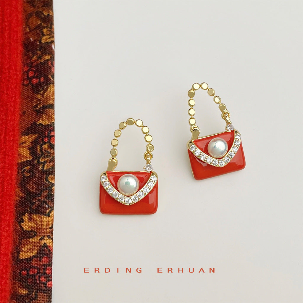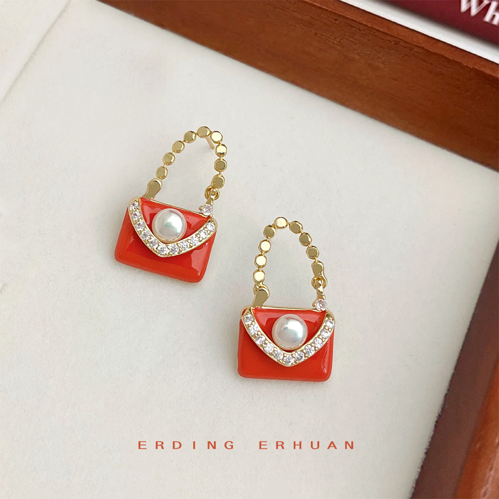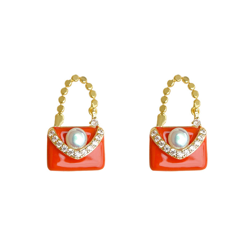 C廠【6082】小眾設計師款小香風橘色包包耳飾琺瑯滴釉個性ins耳環飾品女 25.05-4