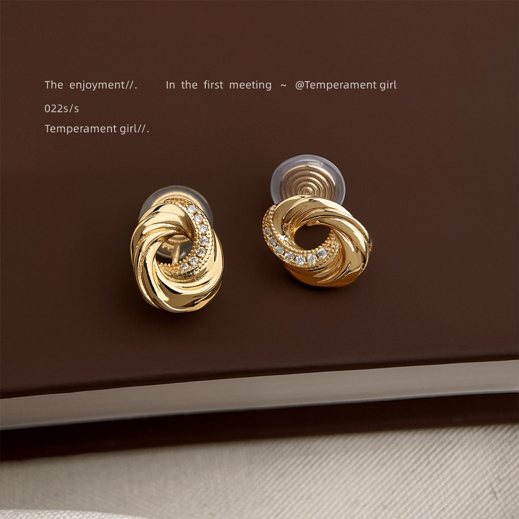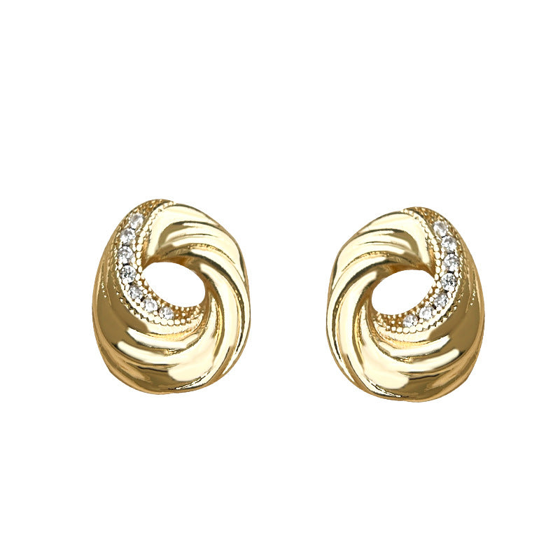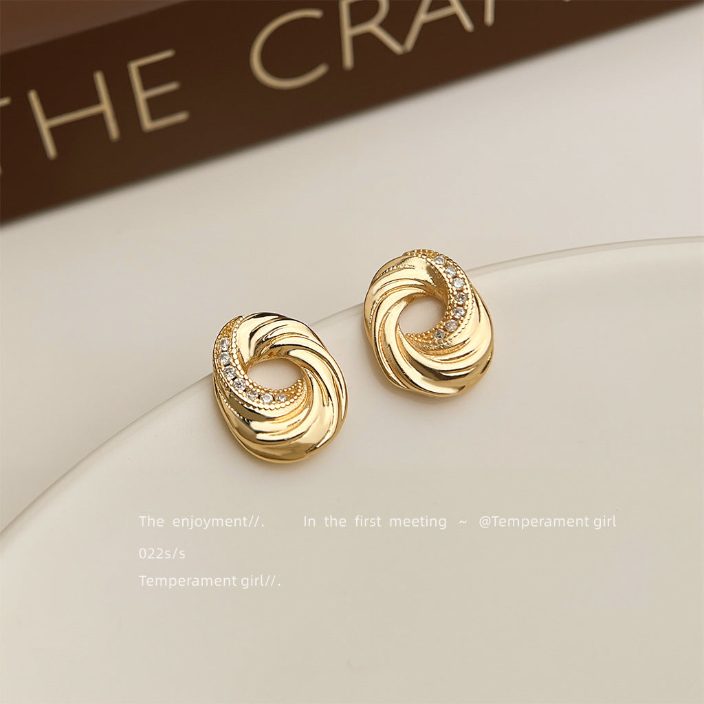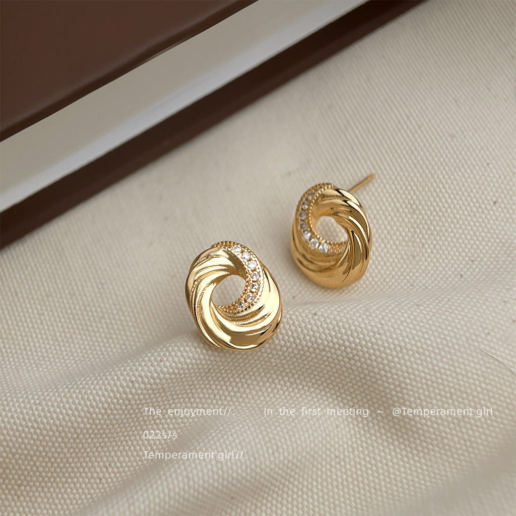 C廠【6103】文藝復古曲奇餅乾925銀針微鑲鋯石時尚高級感鍍14K耳環耳飾女 25.05-4