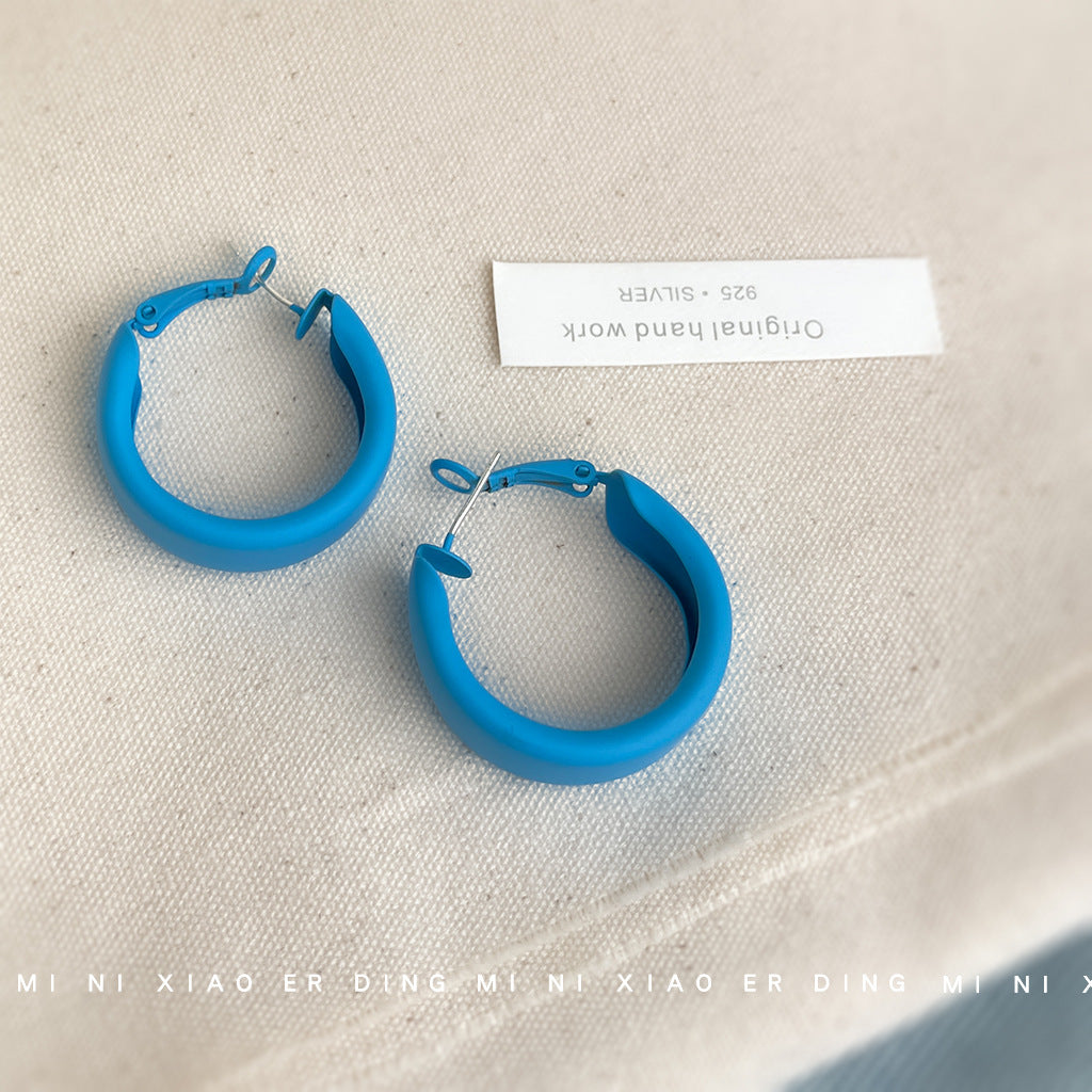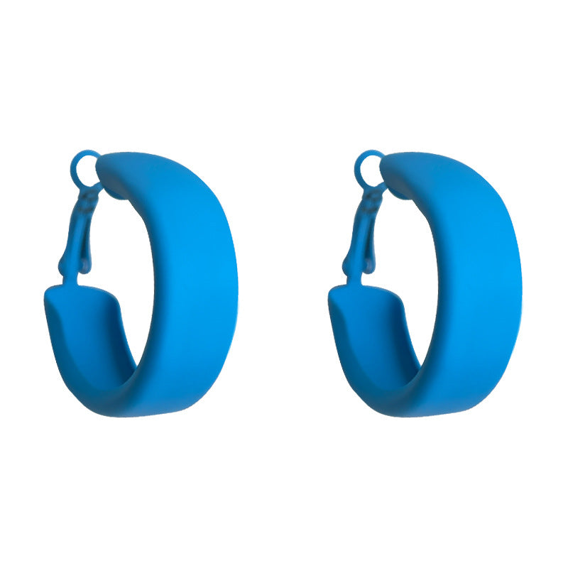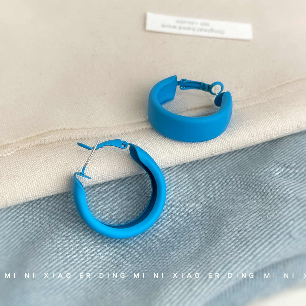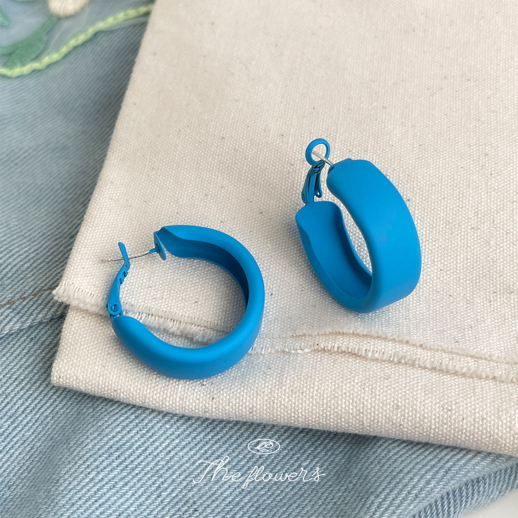 C廠【6141】辣妹款糖果多巴胺藍色調圓形耳環烤漆質感甜美個性度假風新款耳飾 25.05-5
