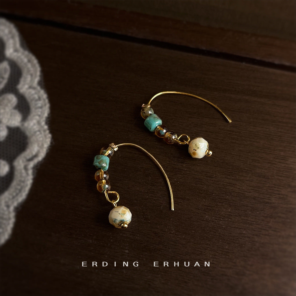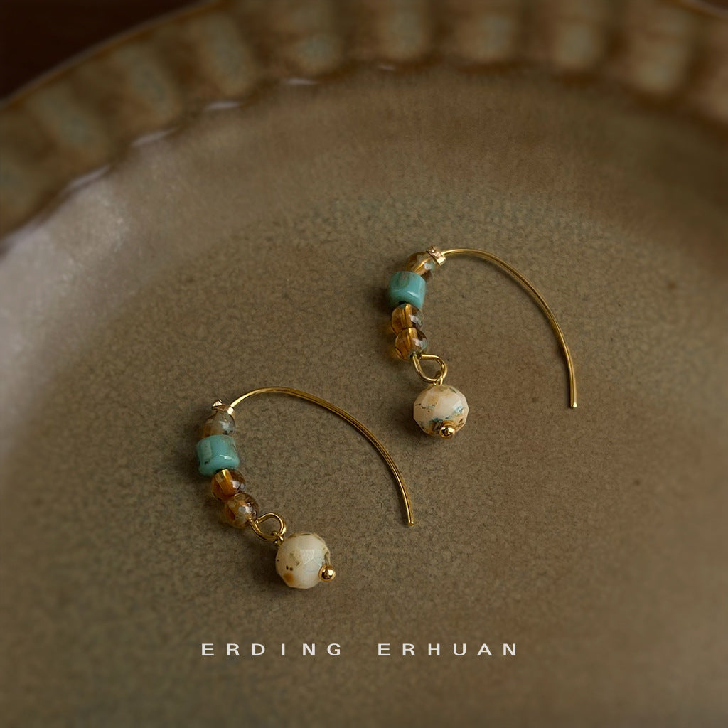 C廠【6184】文藝復古琉璃耳環國潮原創設計簡約通勤高級感耳飾耳環女 25.06-1