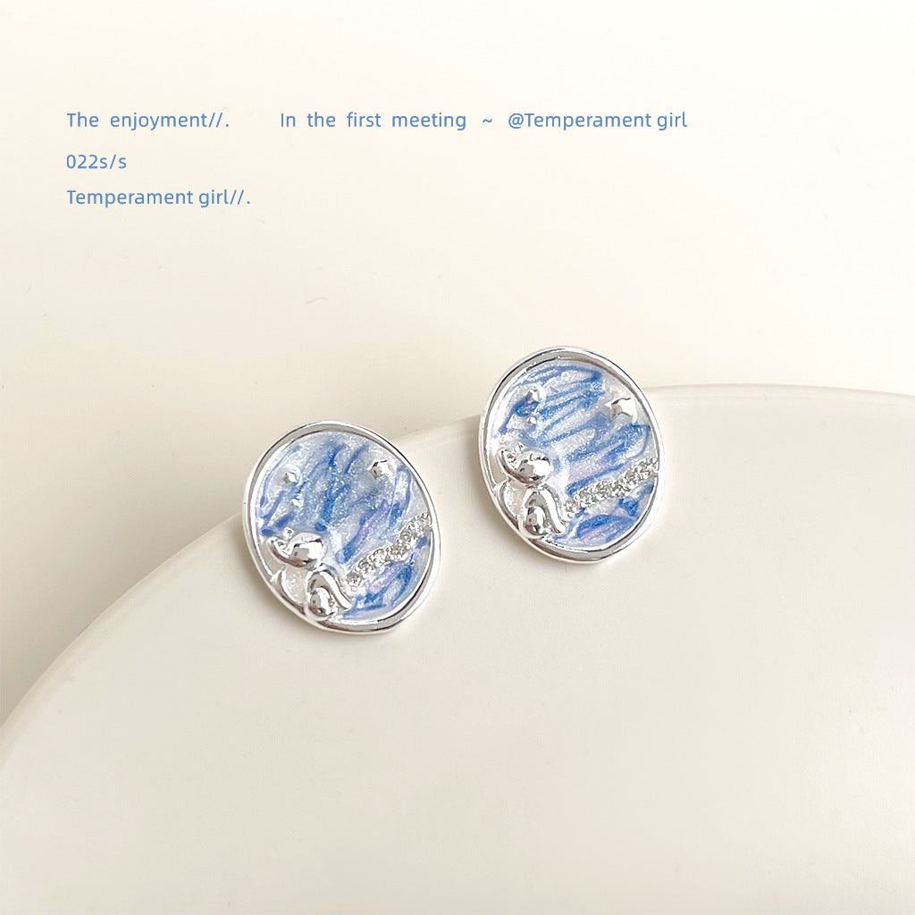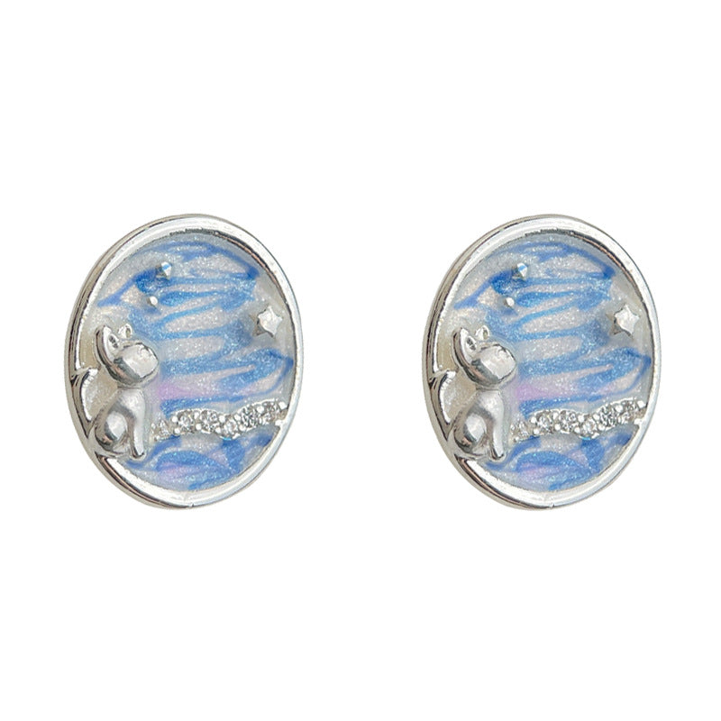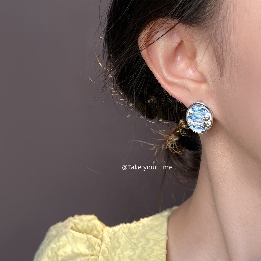 A廠【6191】【海域星空】~設計師款琺瑯滴釉925銀針微鑲鋯石新款耳飾耳環 25.11-3