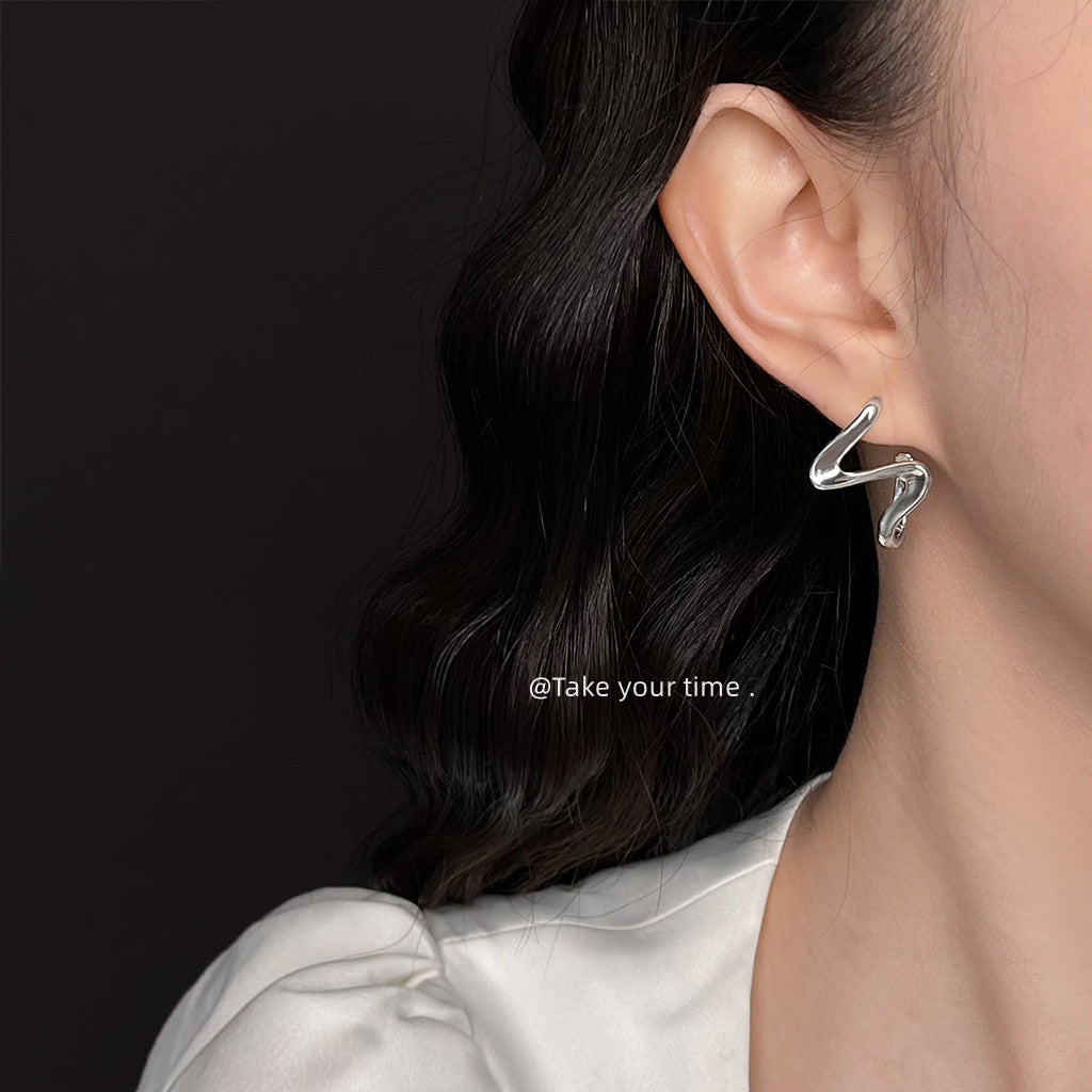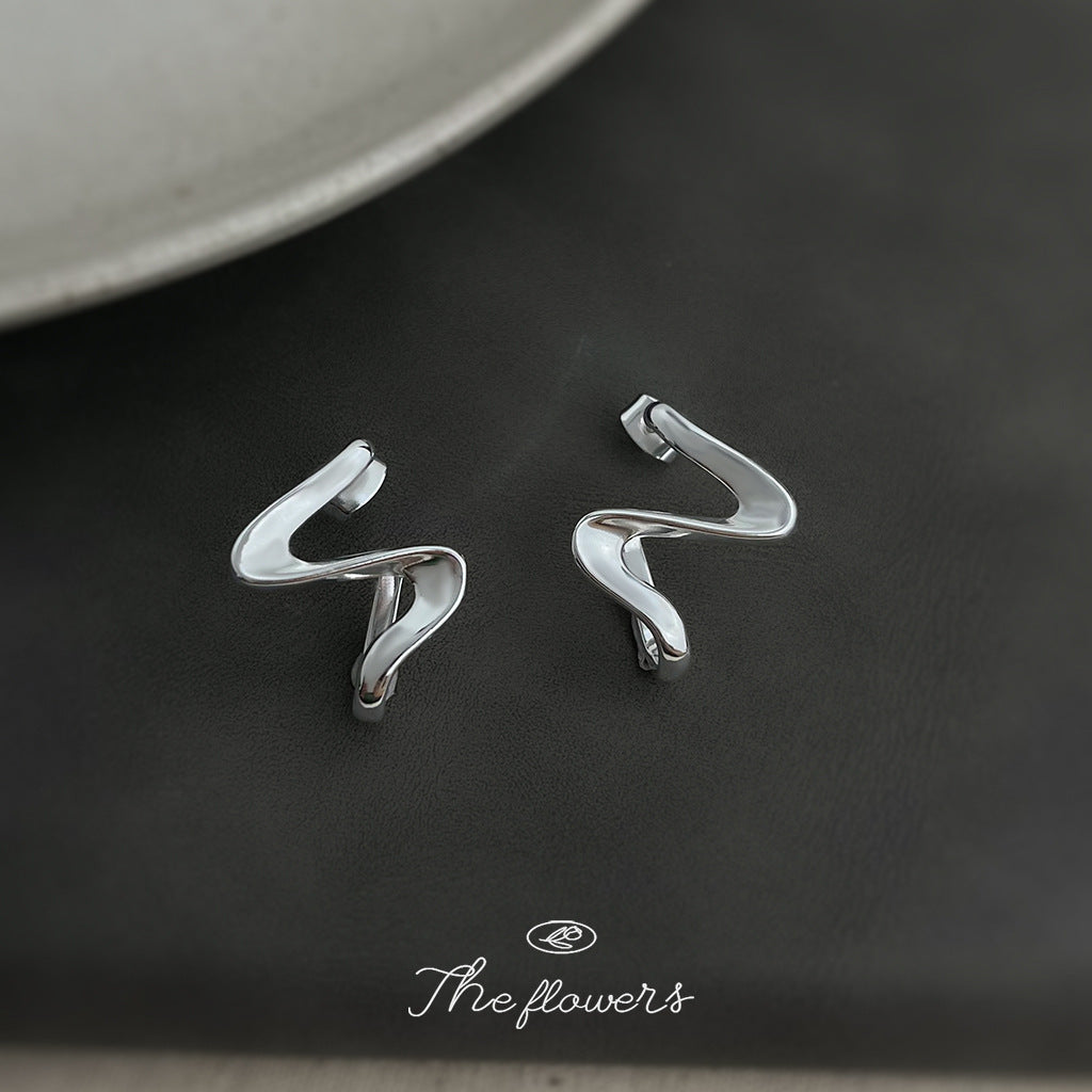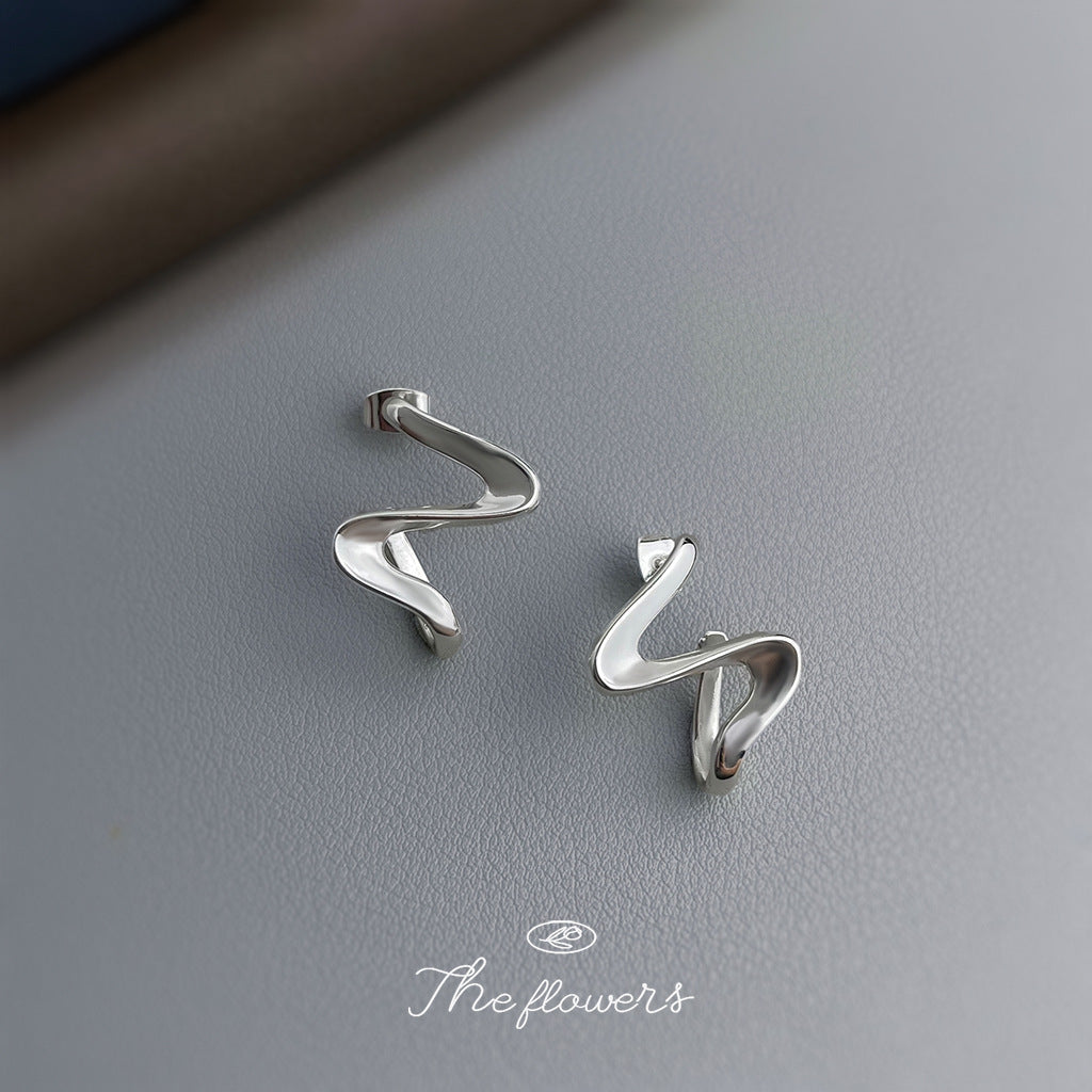 C廠【6255】個性甜酷風~扭曲空間感幾何線條銀針耳飾ins小眾時尚耳環 25.06-3