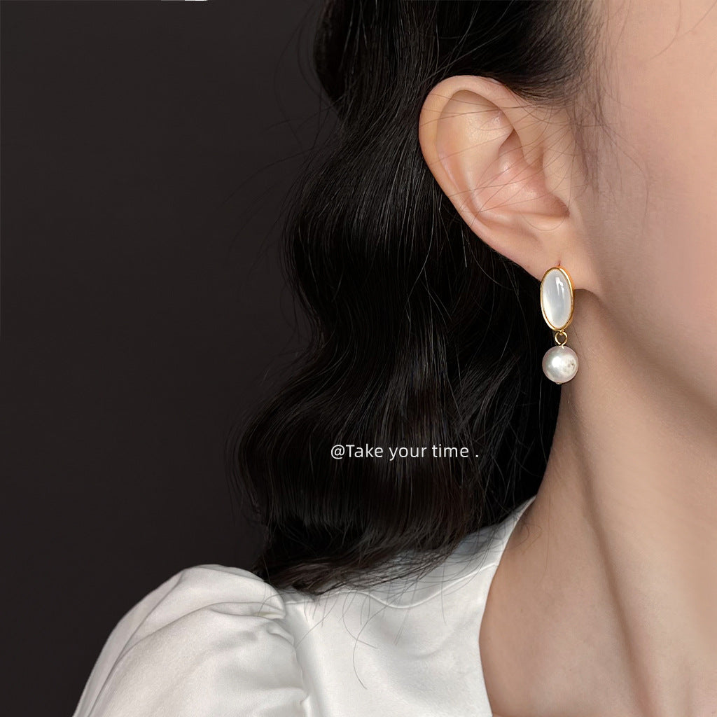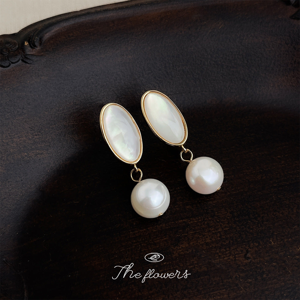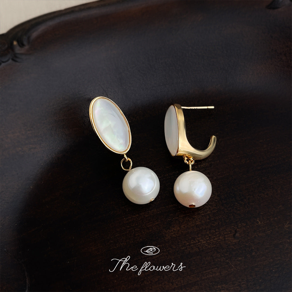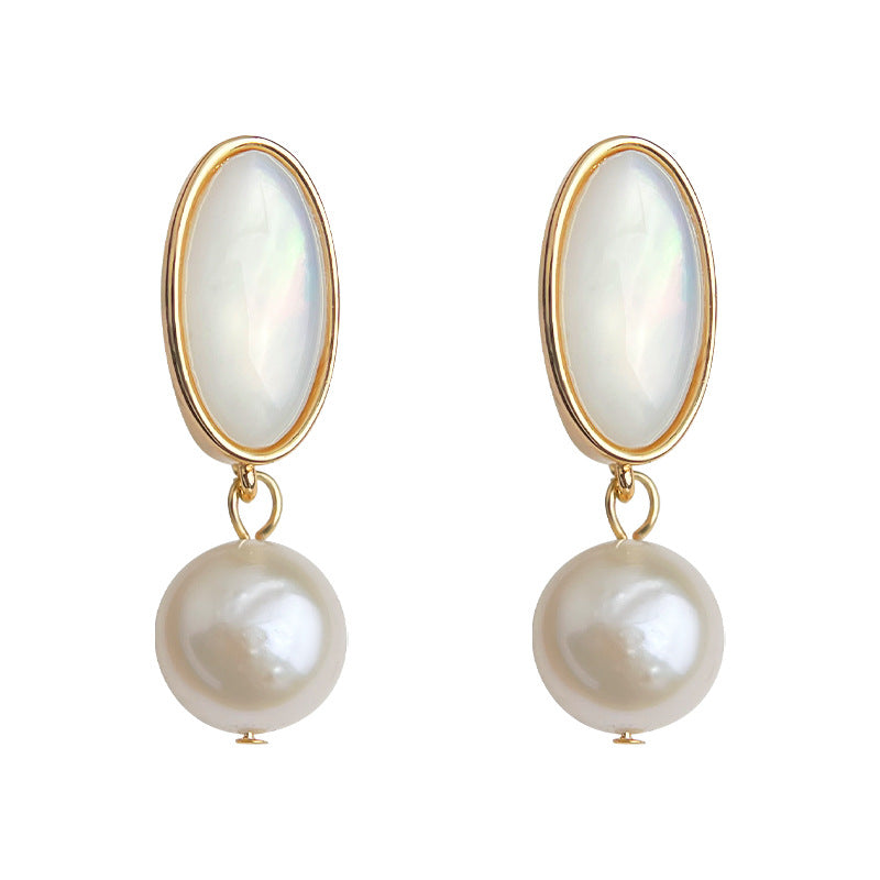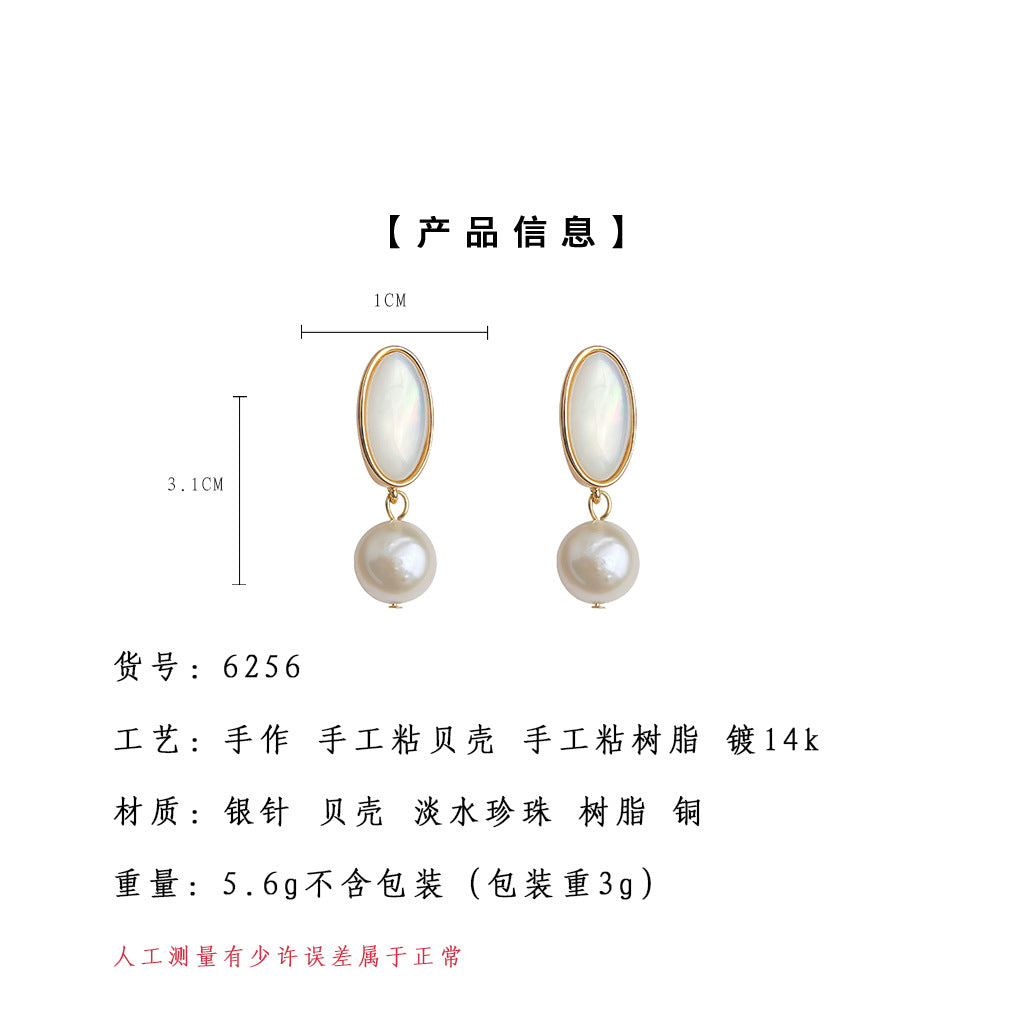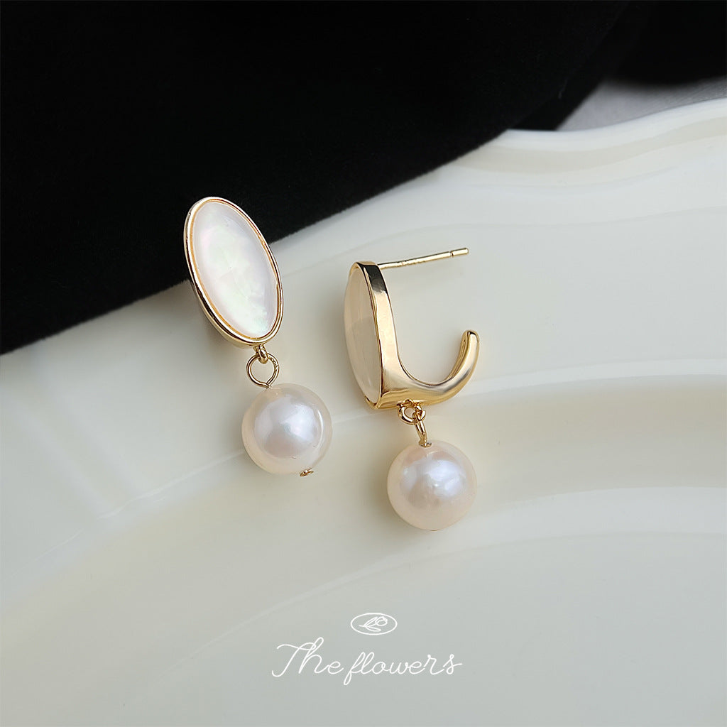 C廠【6256】真貝殼!時尚高級感優雅氣質輕奢風925銀針鍍14K幾何百搭耳環耳環 25.06-4