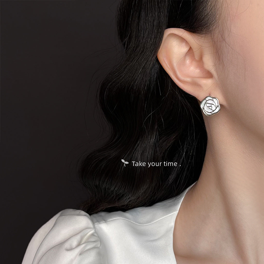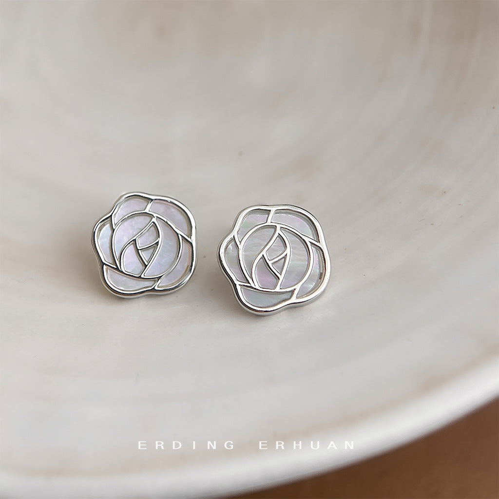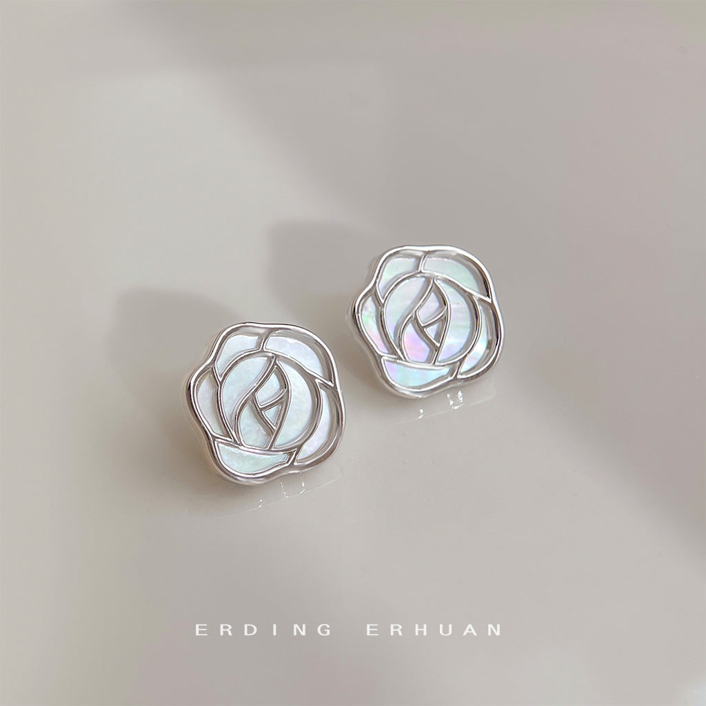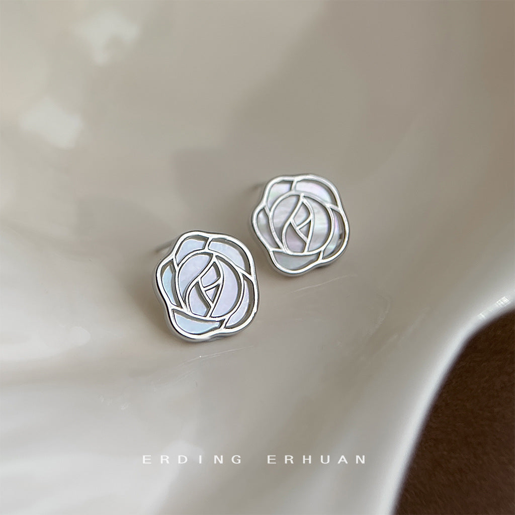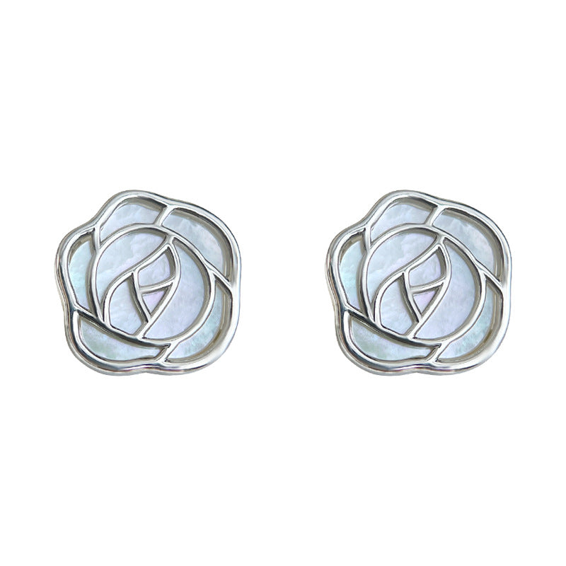 C廠【6259】真貝殼!時尚優雅百搭通勤925銀針鏤空玫瑰花耳環耳飾女 25.06-3
