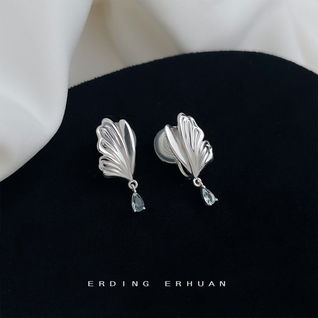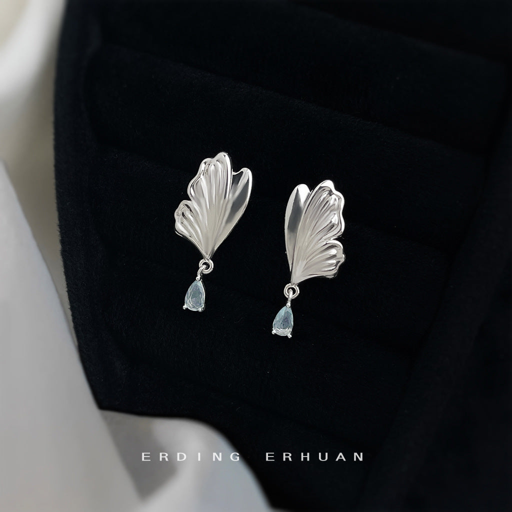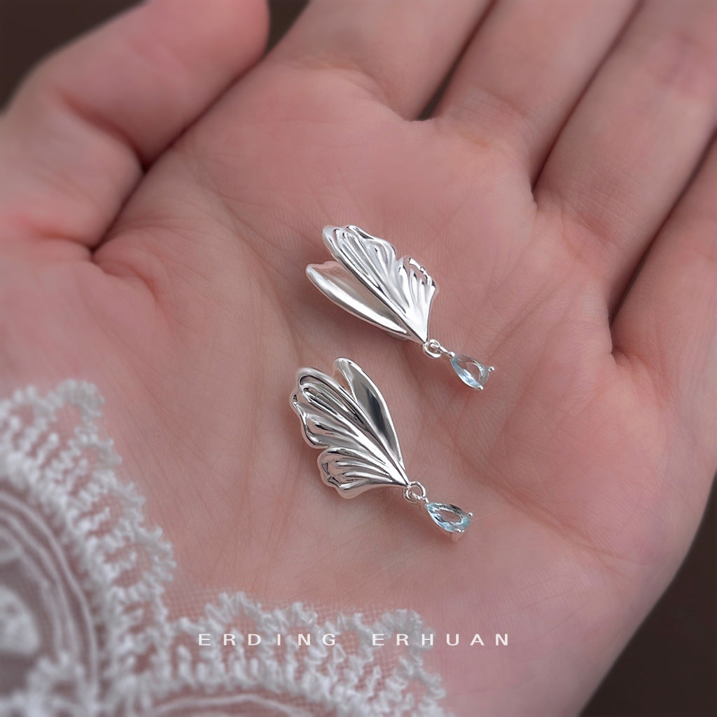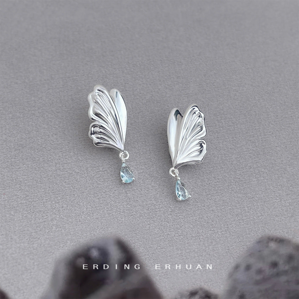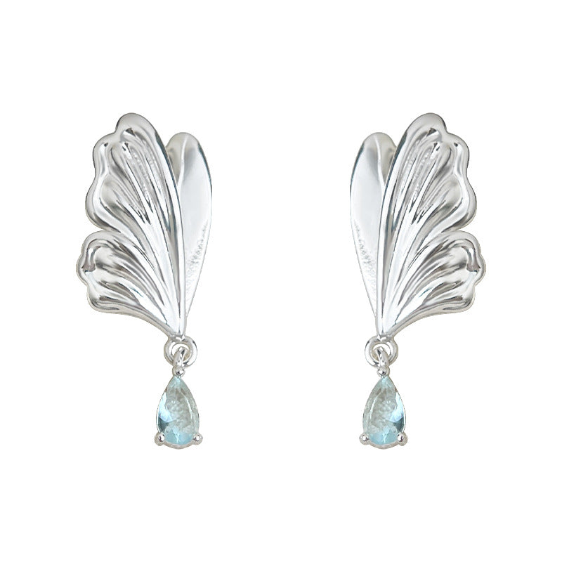 C廠【6272】原創設計~海藍寶鋯石清新甜美蝴蝶水滴耳飾925銀針優雅新款耳環女 25.06-4