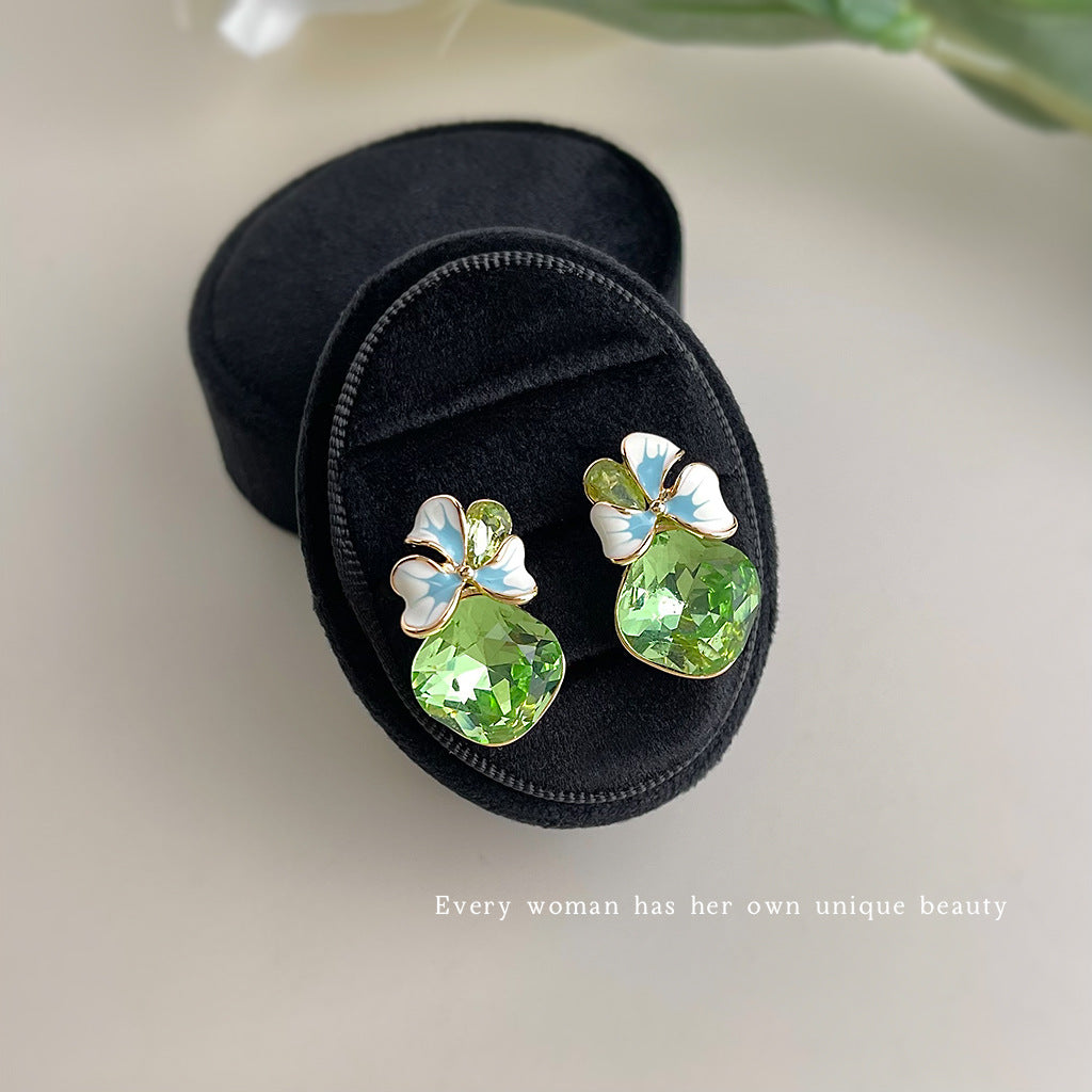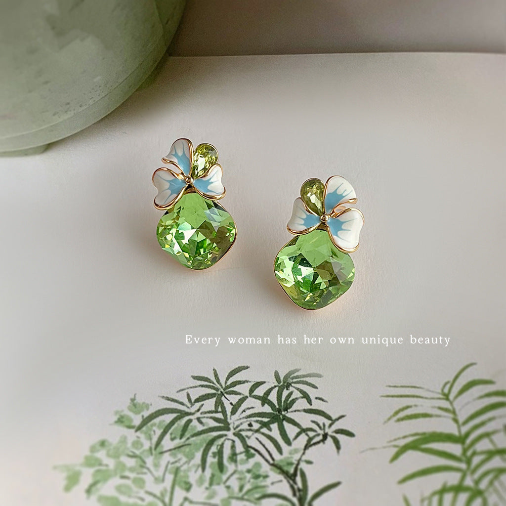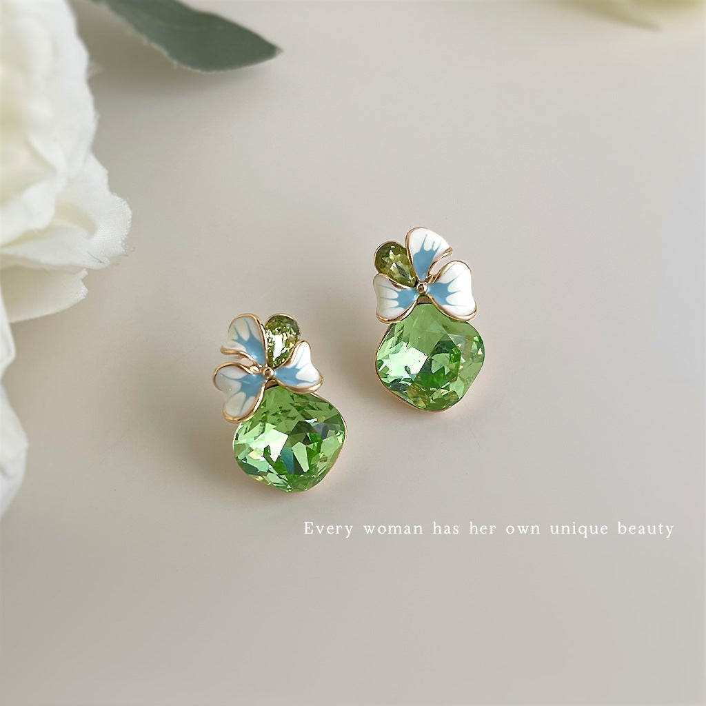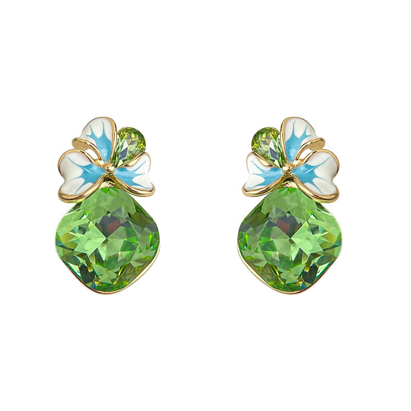 C廠【6312】清新甜美夏日爆款果綠玻璃水晶琺瑯滴釉花朵925銀針耳飾耳環 25.07-1