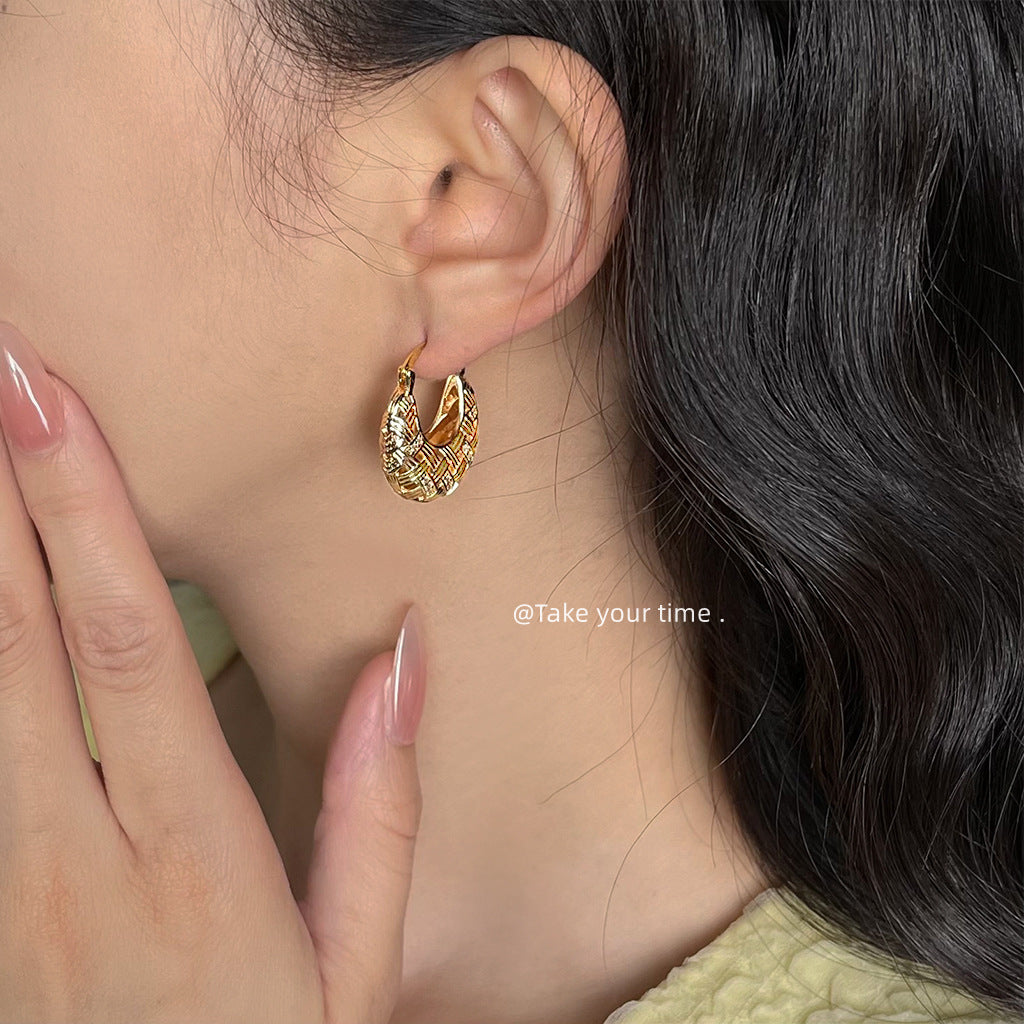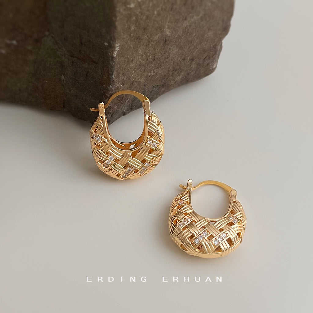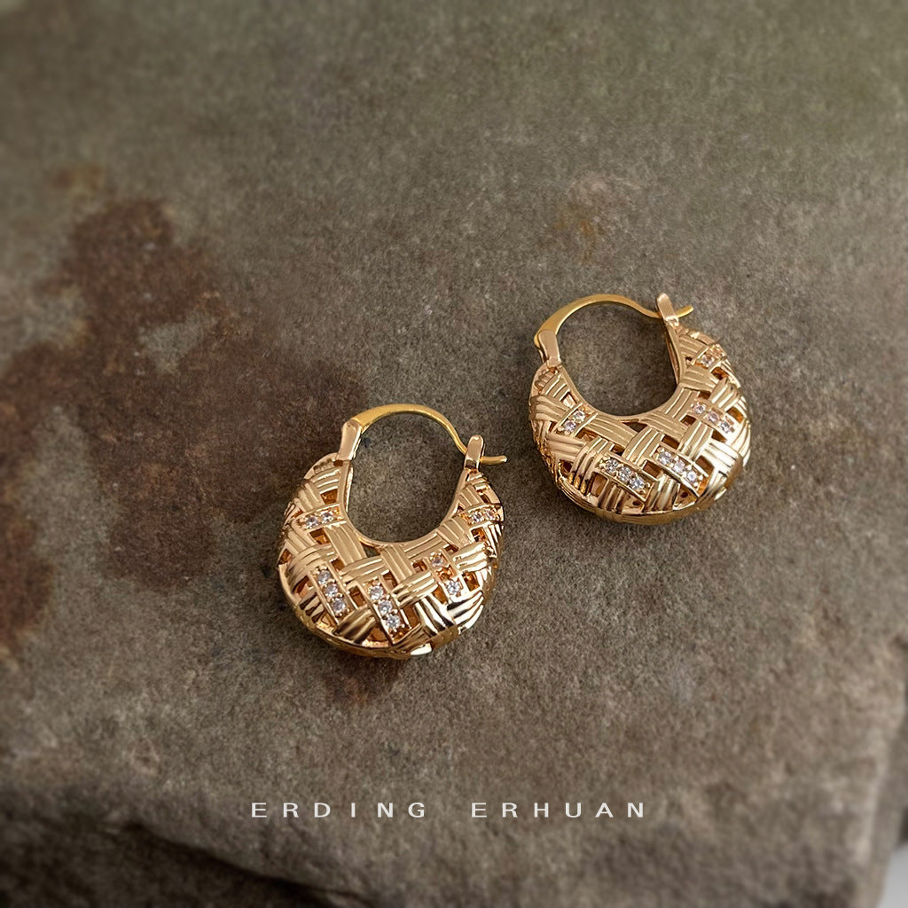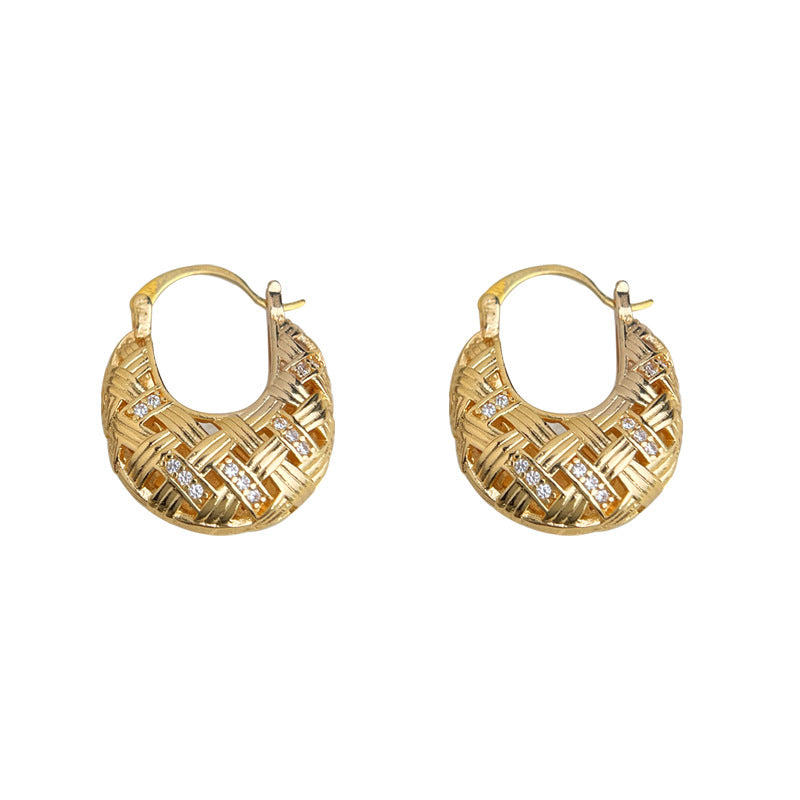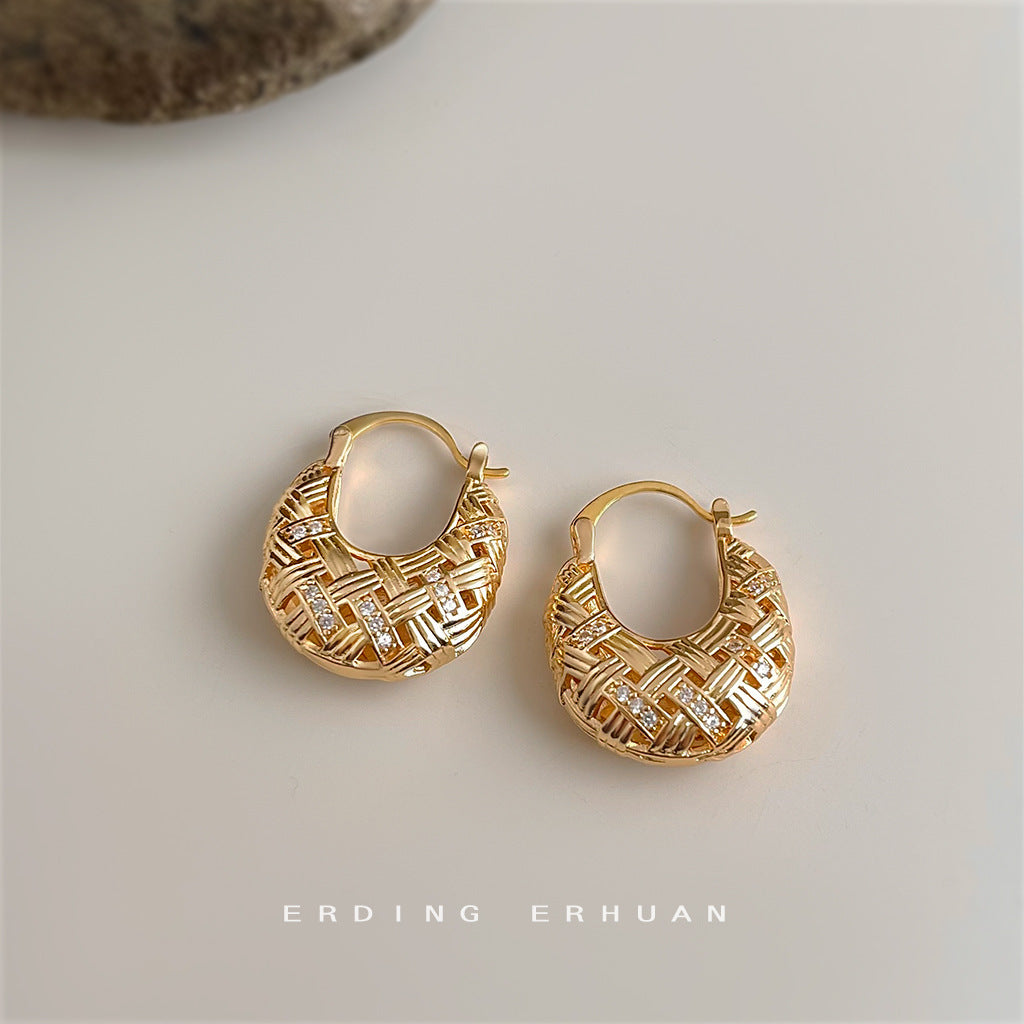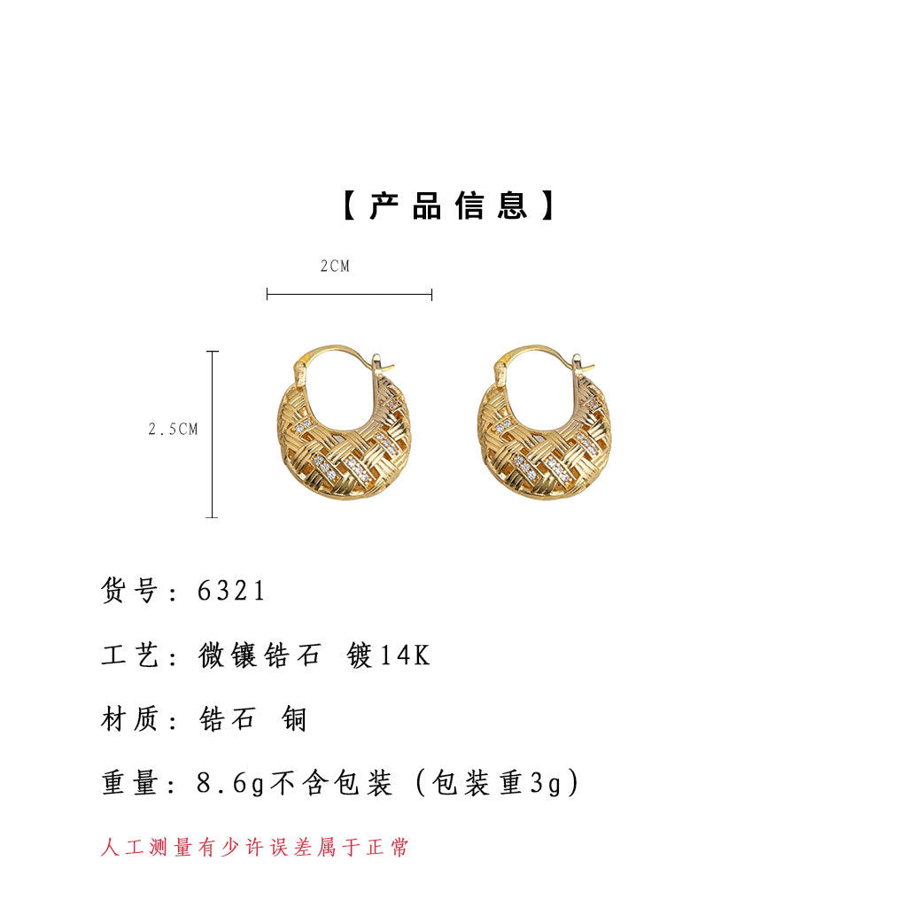 C廠【6321】微鑲鋯石時尚高級感紡織鏤空網狀鍍18K耳環女 輕奢風重工質感耳飾 25.06-4