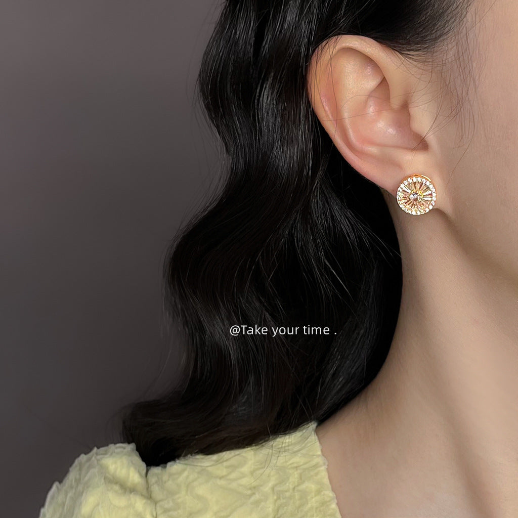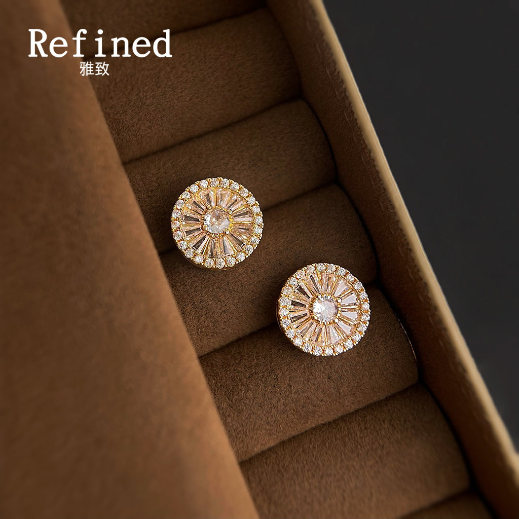 C廠【6322】高級感輕奢風微鑲鋯石圓形幾何銀針鍍14K立體耳環簡約 高品質耳環 25.07-2