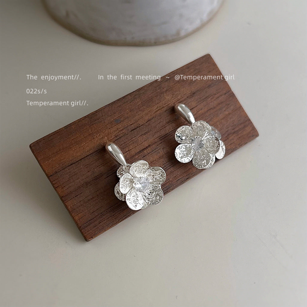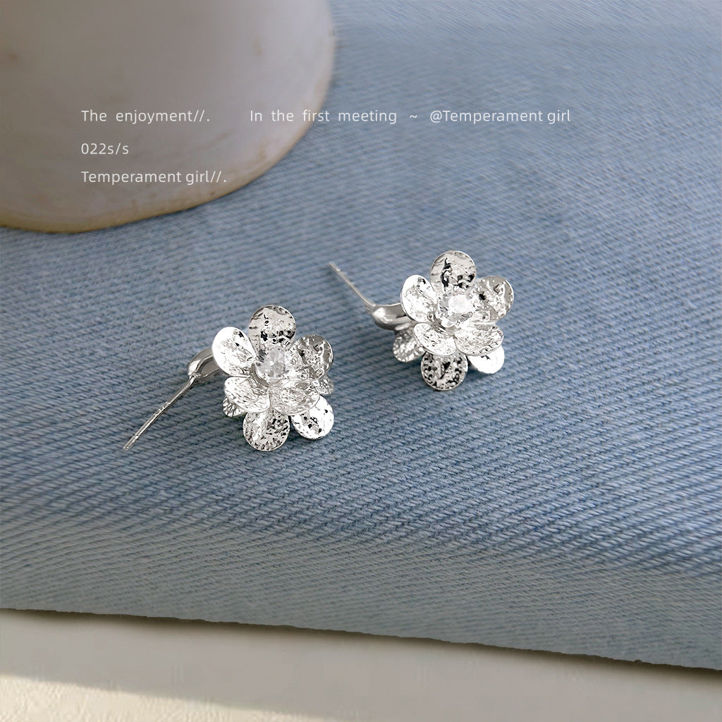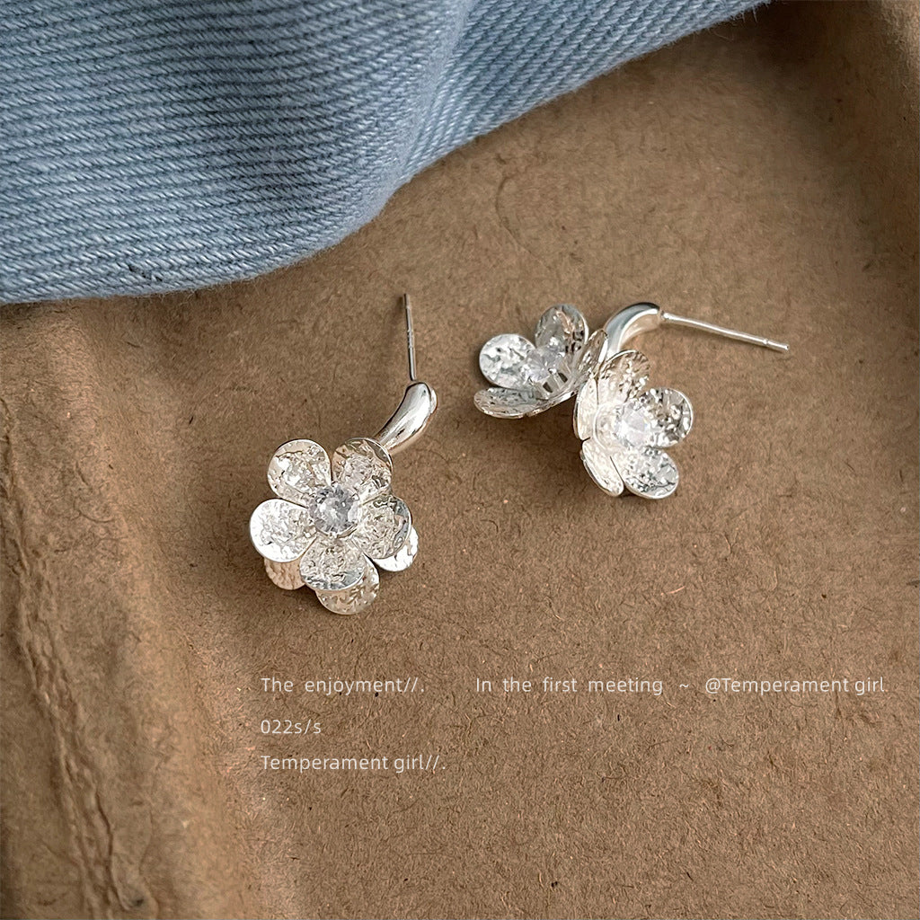 C廠【6338】清冷感微鑲鋯石925銀針時尚簡約花朵耳飾女 通勤百搭新款爆款耳環 25.06-4