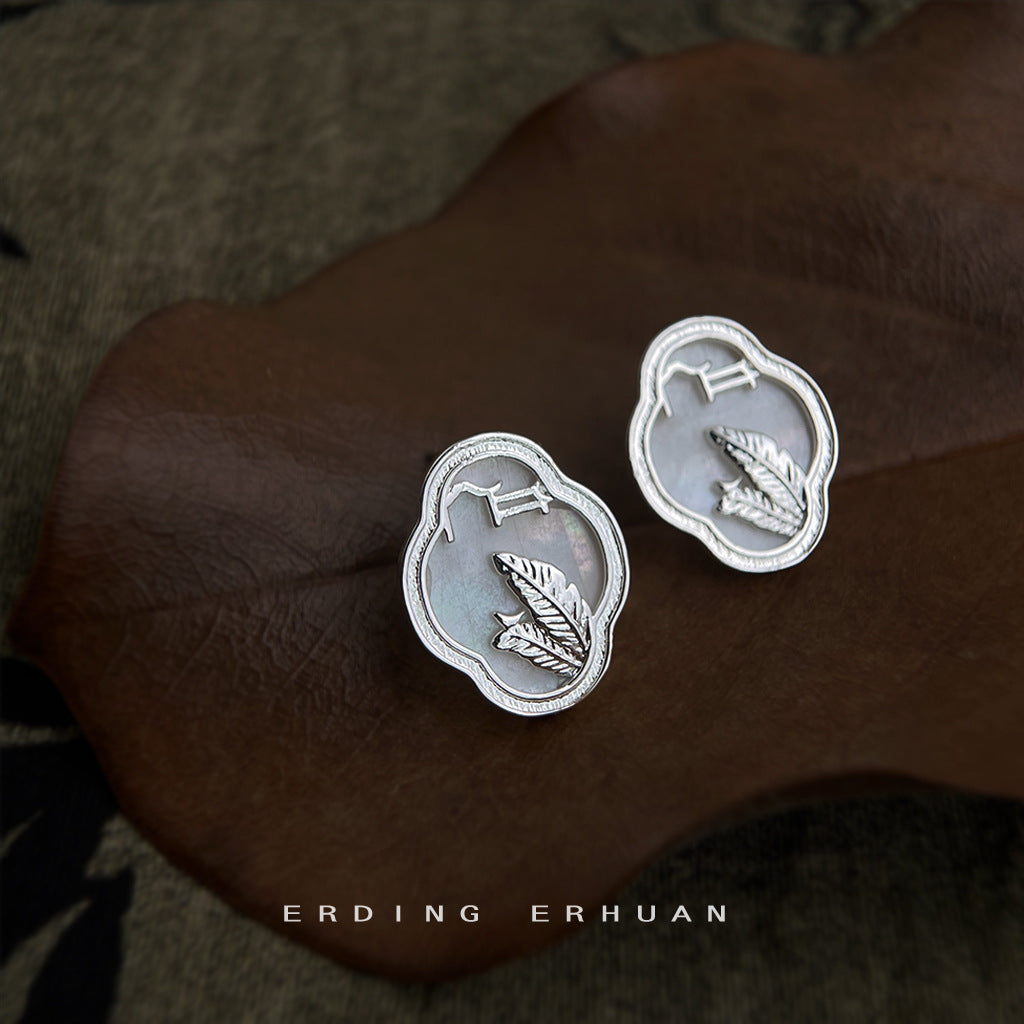 C廠【6339】新中式國潮原創設計個性幾何窗花文創S925銀針耳飾新款耳環女 25.10-3