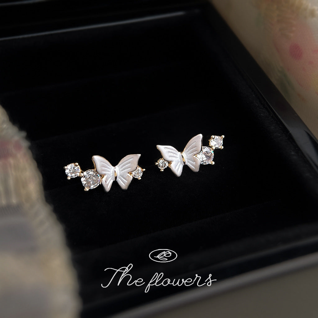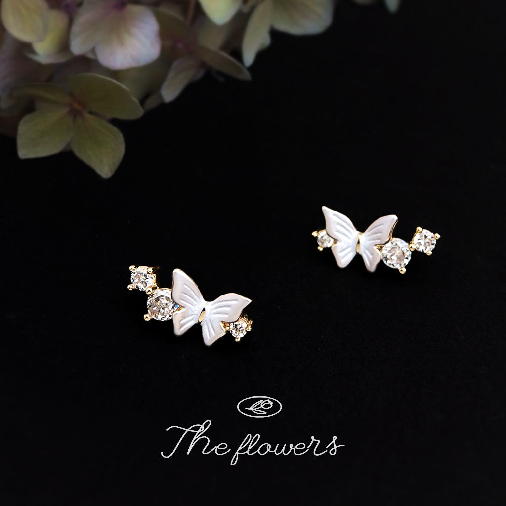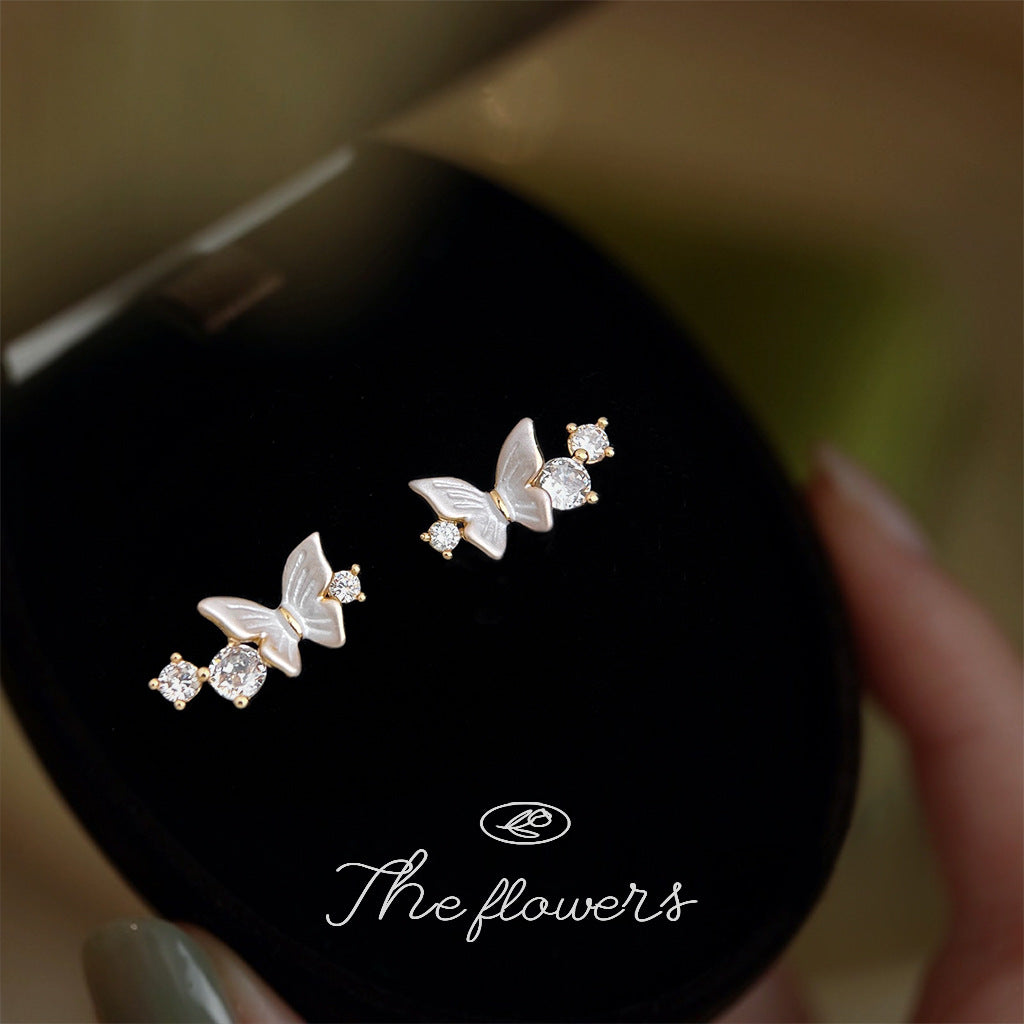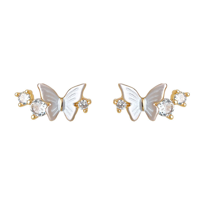 C廠【6368】清新甜美微鑲鋯石簡約小巧925銀針電鍍14K蝴蝶小耳環通勤百搭耳飾 25.07-1