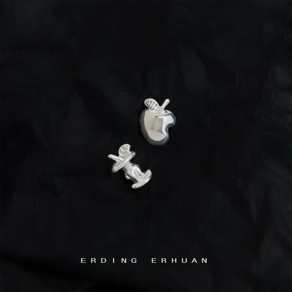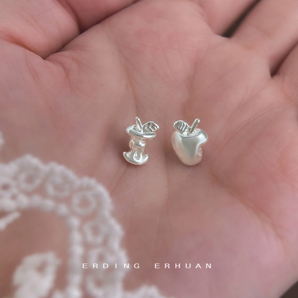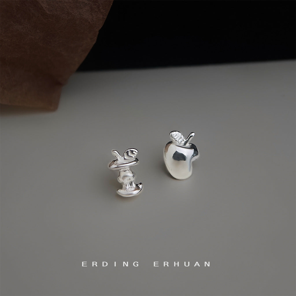 C廠【6378】個性ins小清新不對稱AB款蘋果耳環 小眾設計新款耳環飾品 25.07-2
