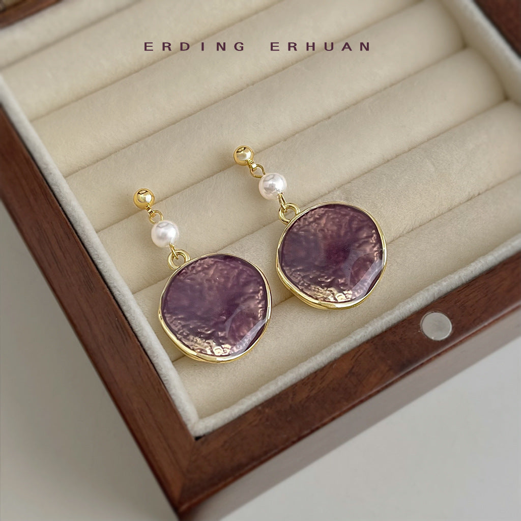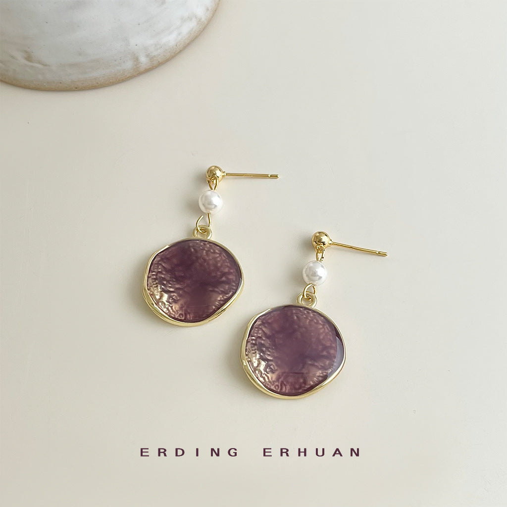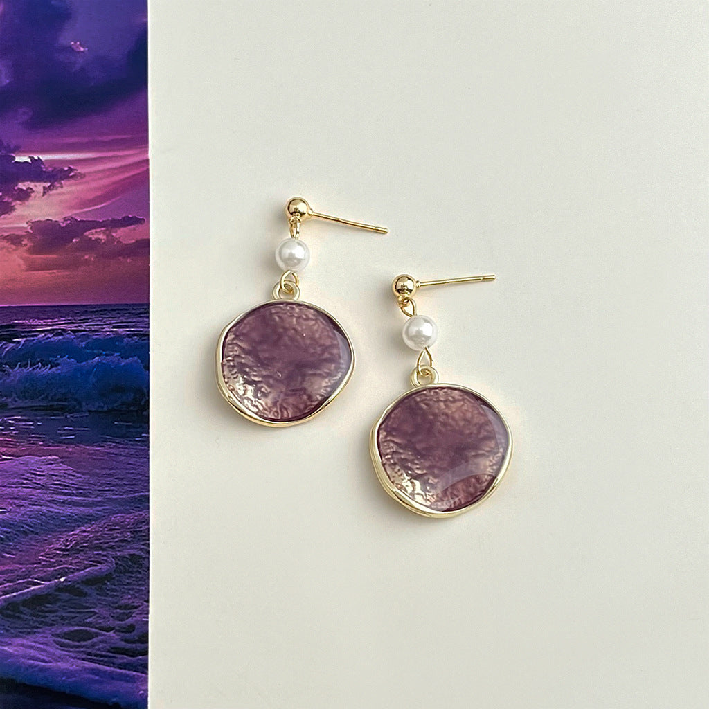 C廠【6383】彩霞!原創手工設計師琺瑯滴釉紫色漸變圓形幾何新耳飾女耳環 25.07-1