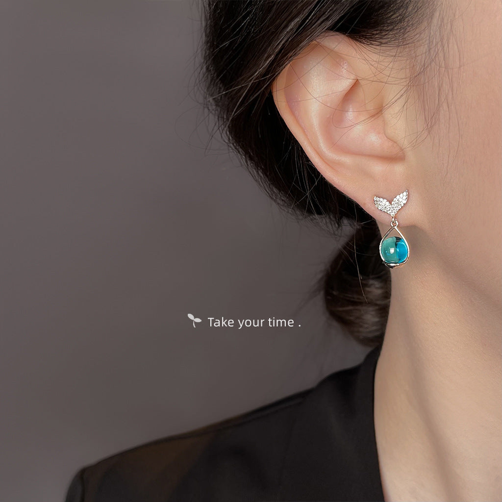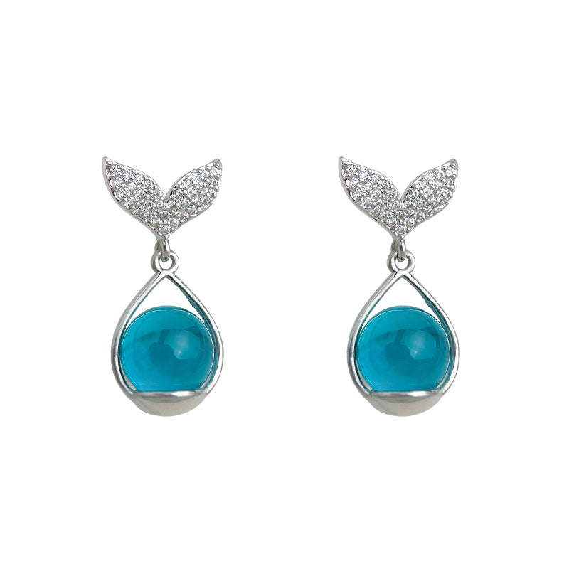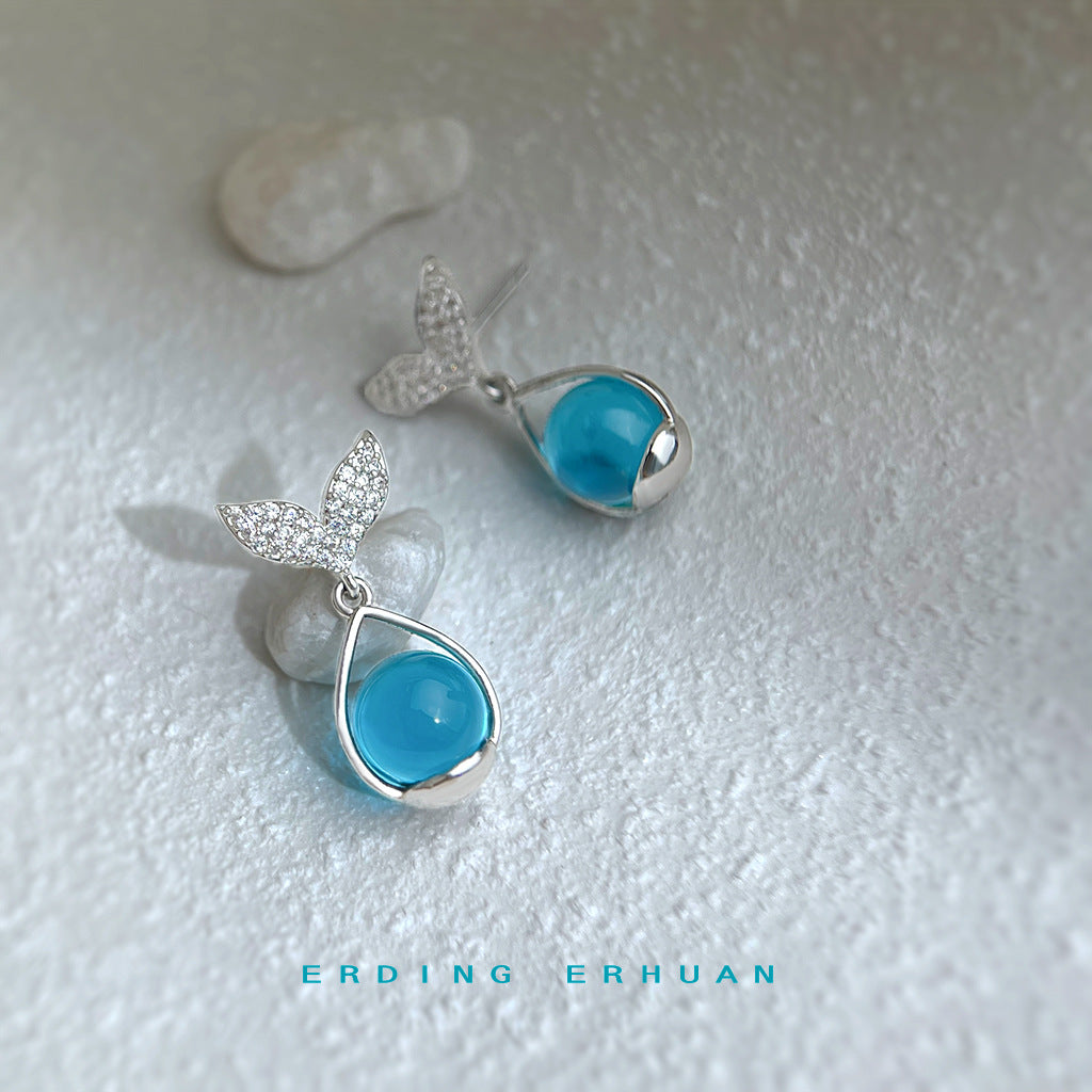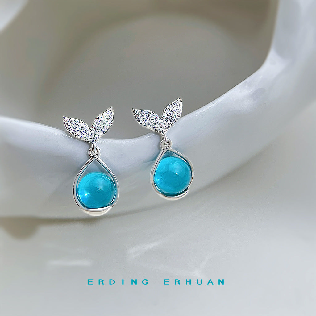 C廠【6385】微鑲鋯石925銀針清新甜美透感玻璃琉璃魚尾耳飾女 度假風新款耳環 25.11-1