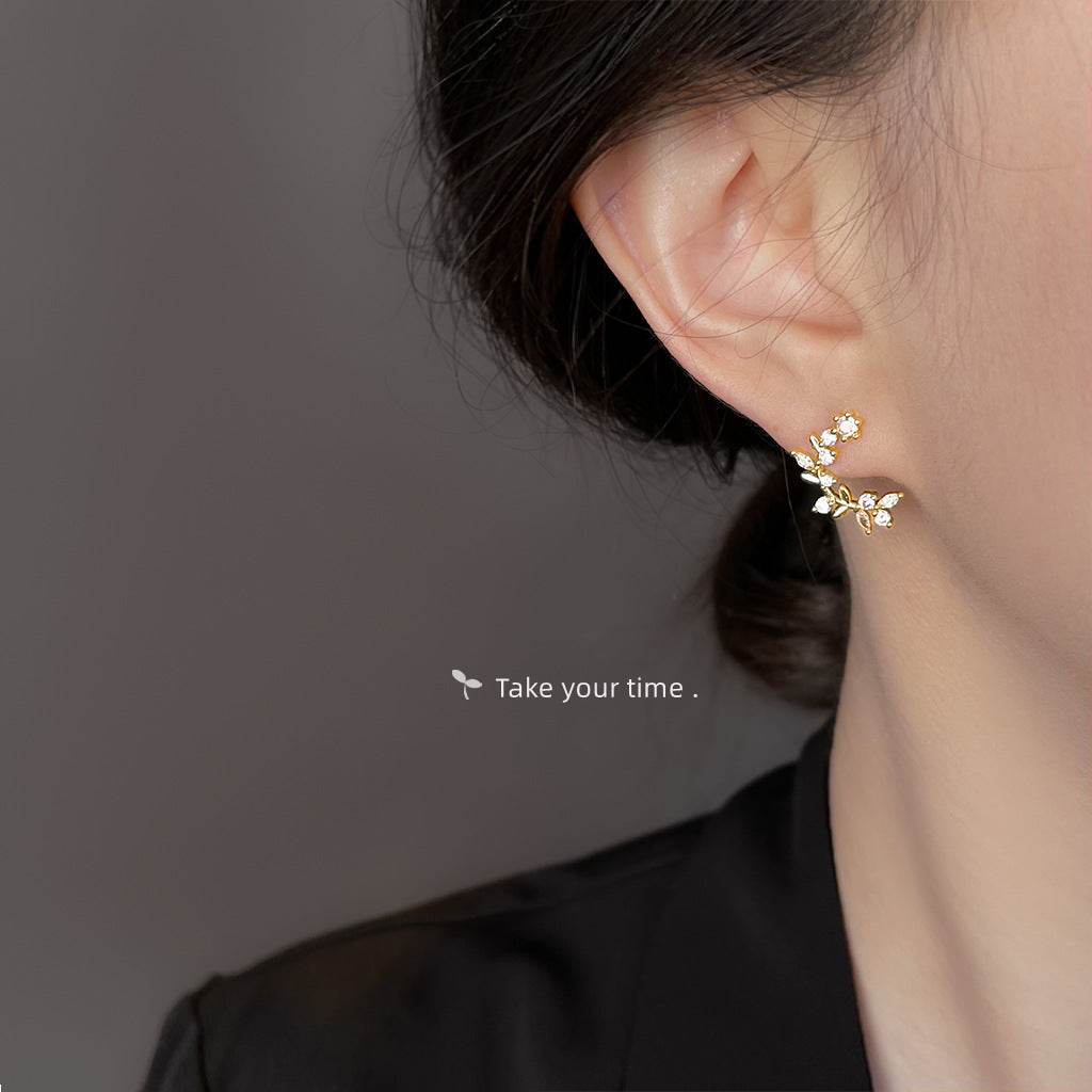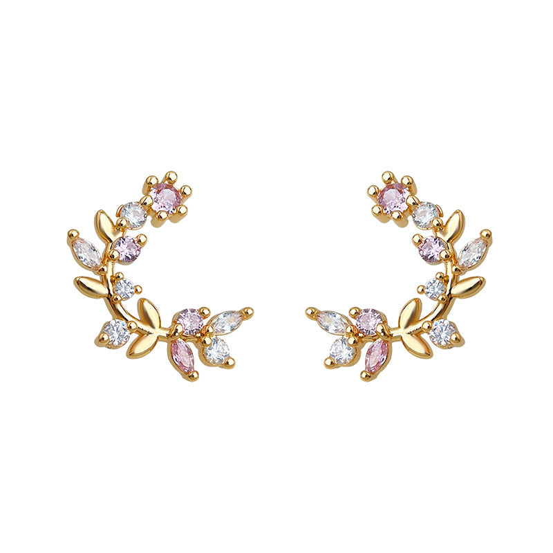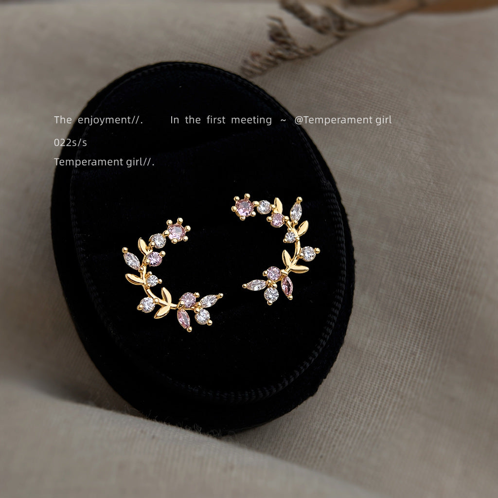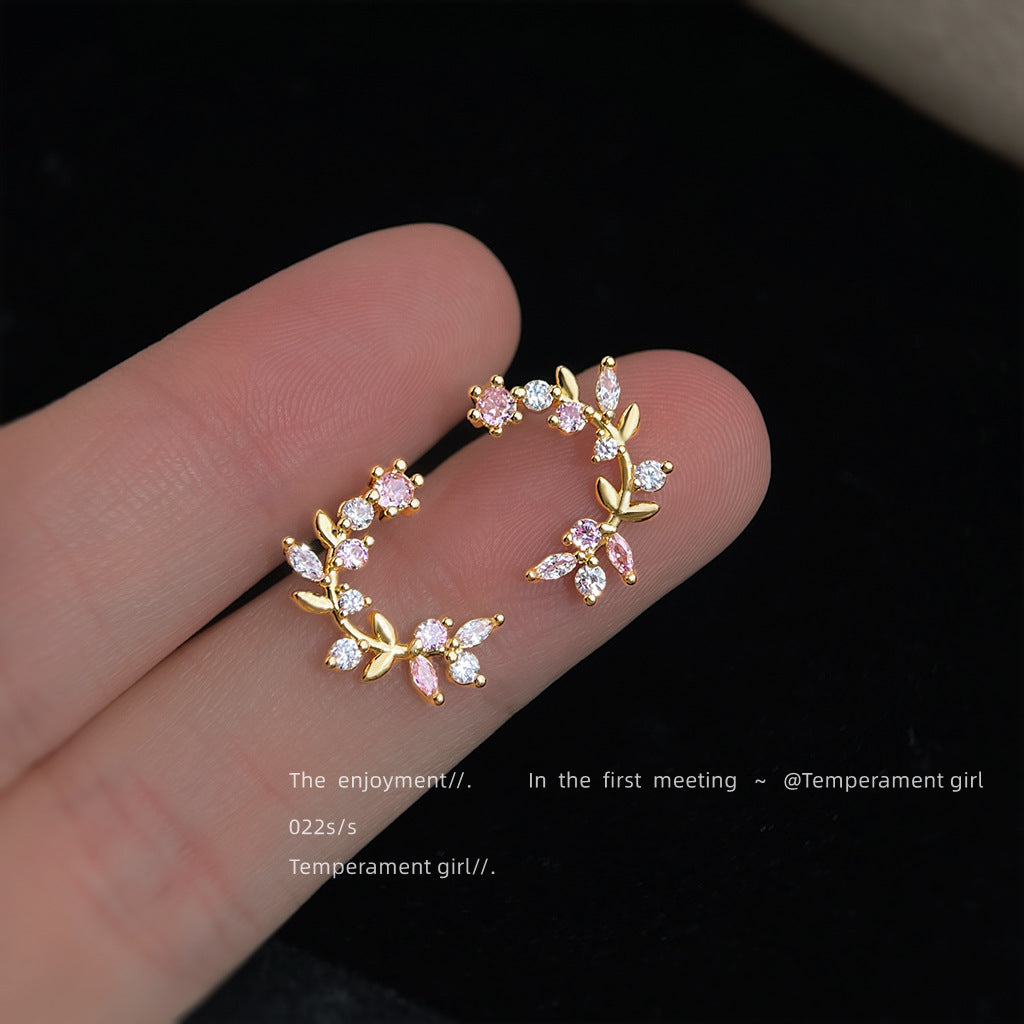 C廠【6386】清新甜美微鑲鋯石925銀針鍍14K花環耳環森系簡約新款耳飾飾品 25.07-1