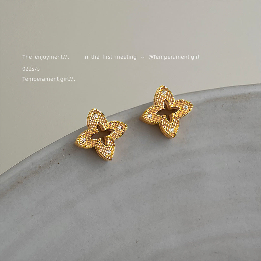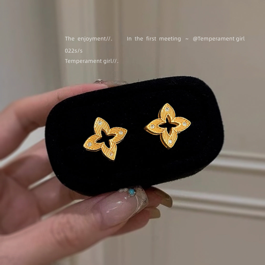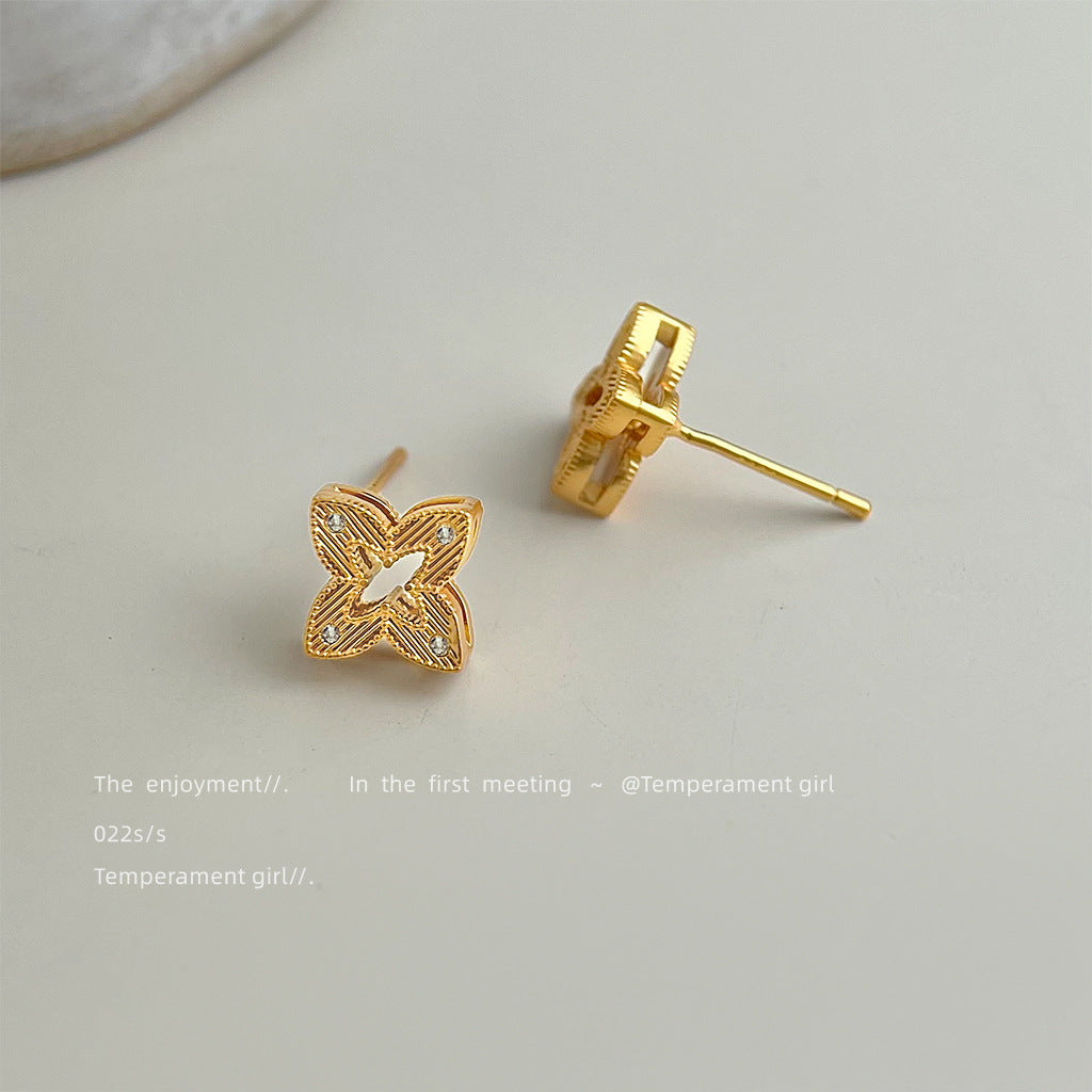 C廠【6398】微鑲鋯石時尚高級感輕奢風簡約鏤空花朵耳環氣質百搭新款耳飾 25.07-1