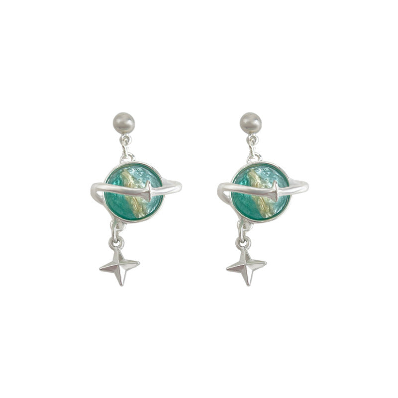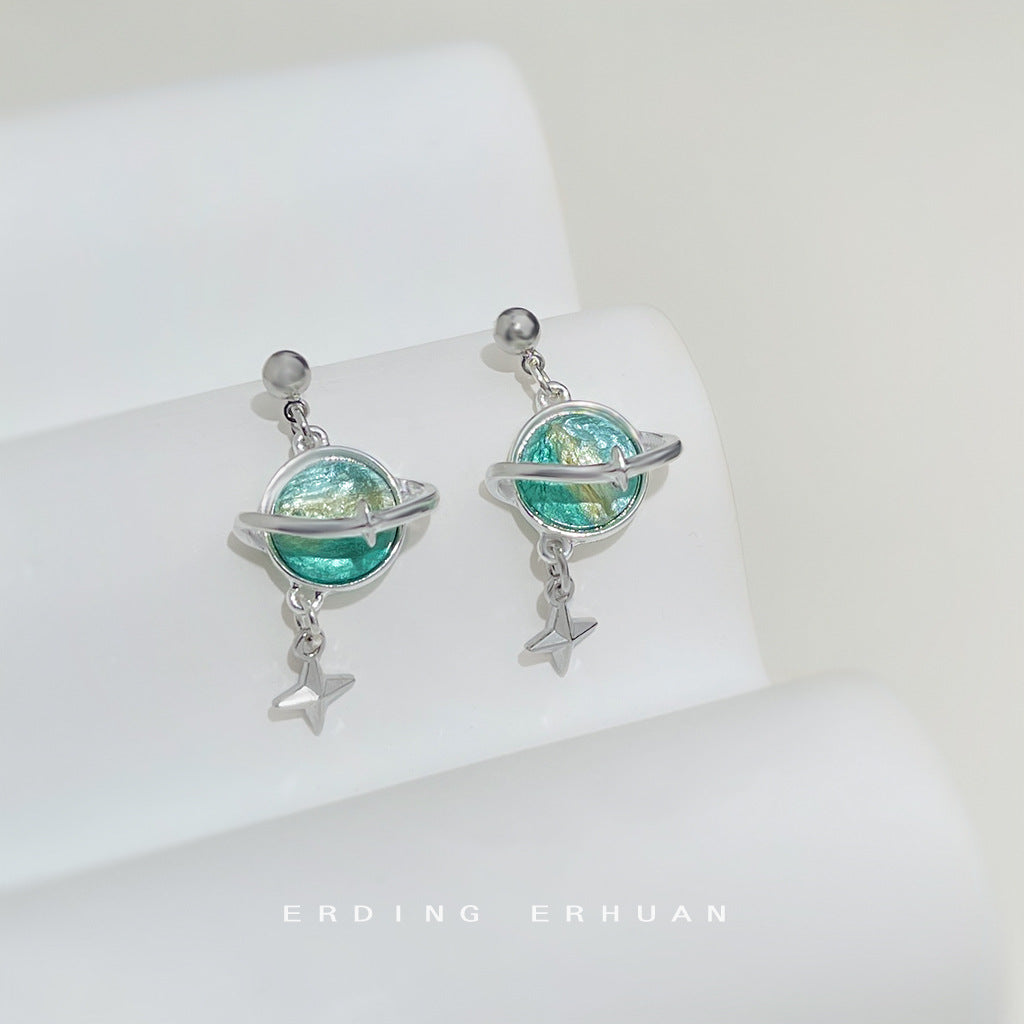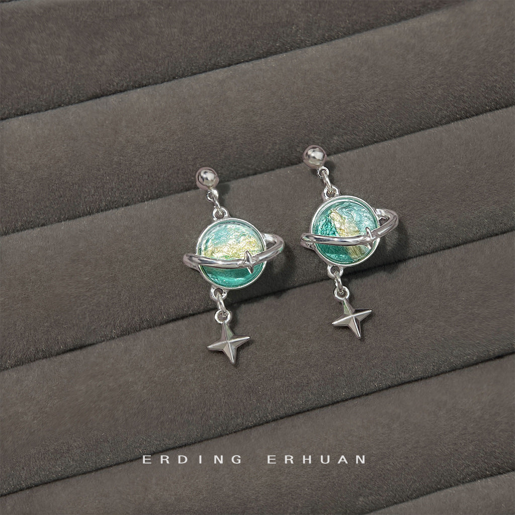 C廠【6418】個性甜酷風ins藍色星球繫新款熱賣耳飾飾品耳環女 25.07-2