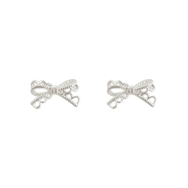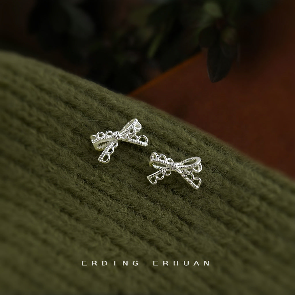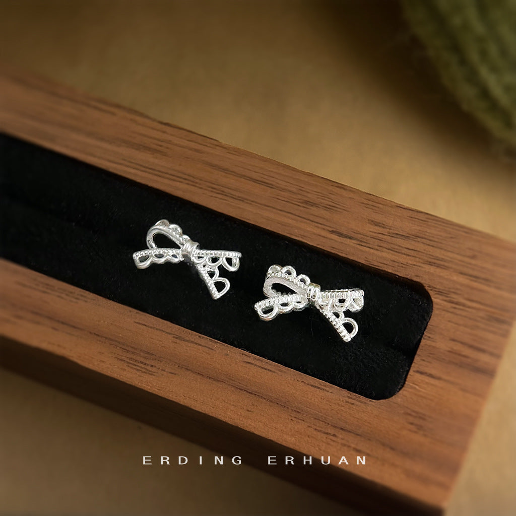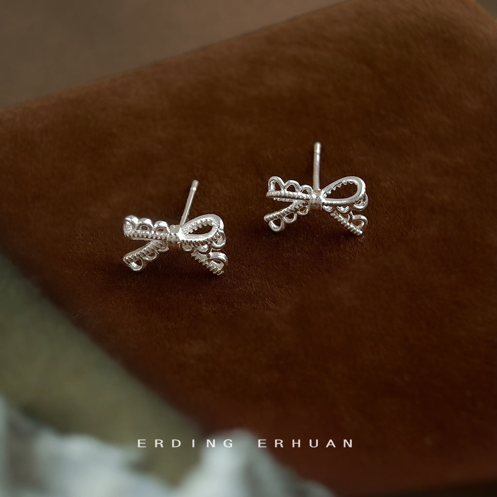 C廠【6419】蕾絲系!簡約時尚通勤百搭925銀針鏤空蝴蝶結新款耳環耳飾女 25.07-2