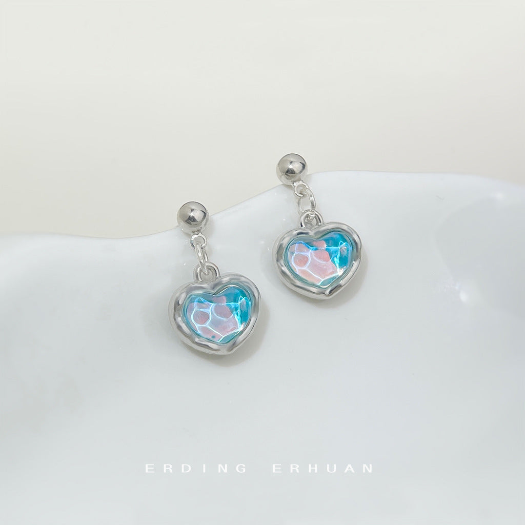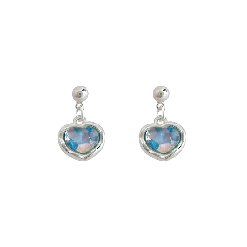 C廠【6422】清新甜美海藍色愛心耳環女氣質優雅度假風新款耳環飾品 25.07-2