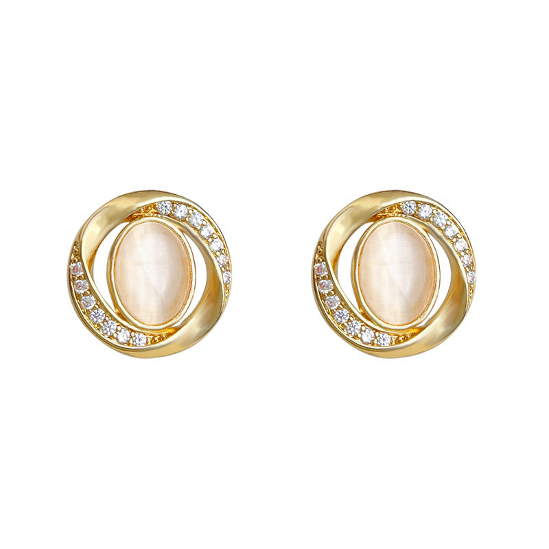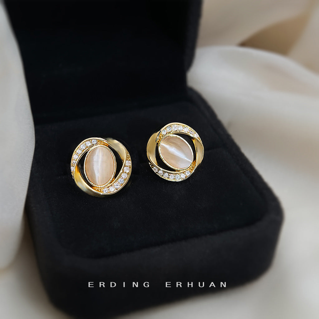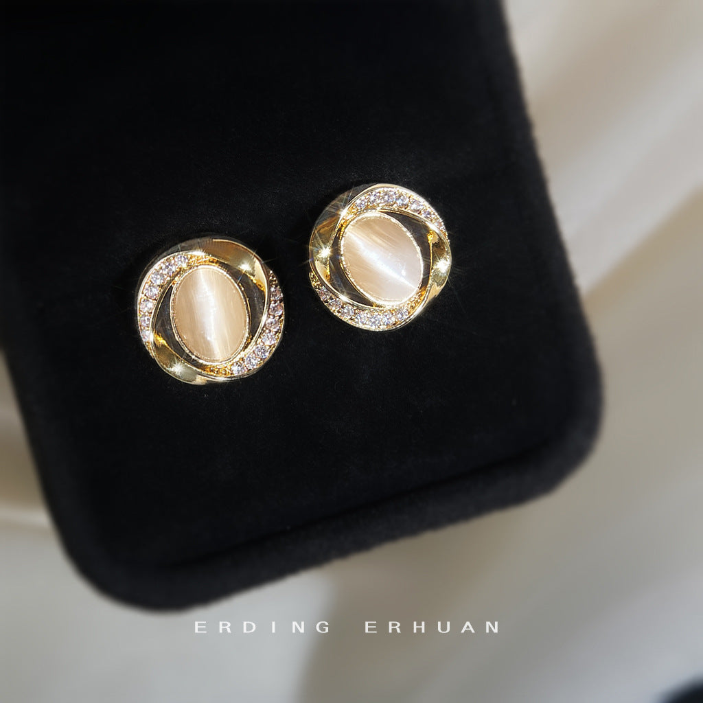 C廠【6425】時尚高級感原創設計師款微鑲鋯石925銀針鍍14K玻璃貓眼石耳環耳飾 25.07-2