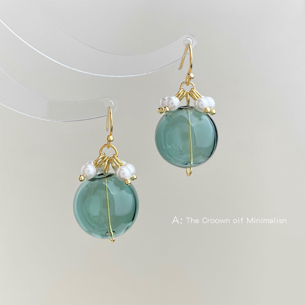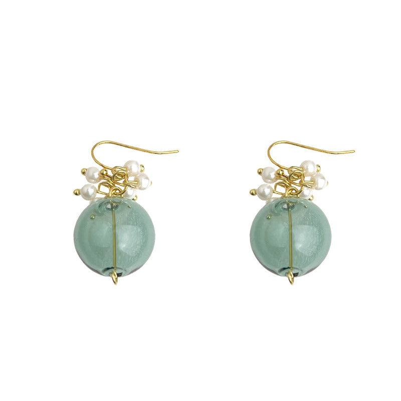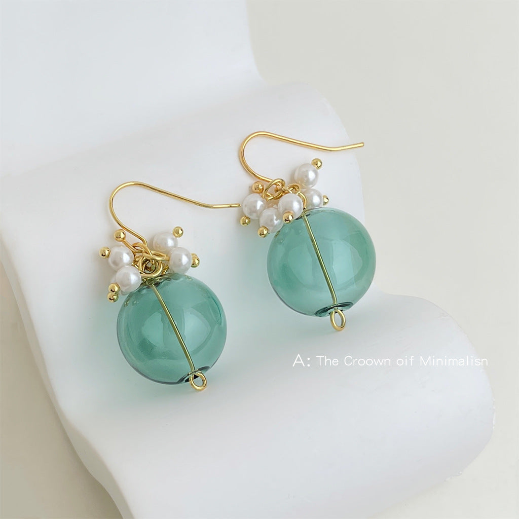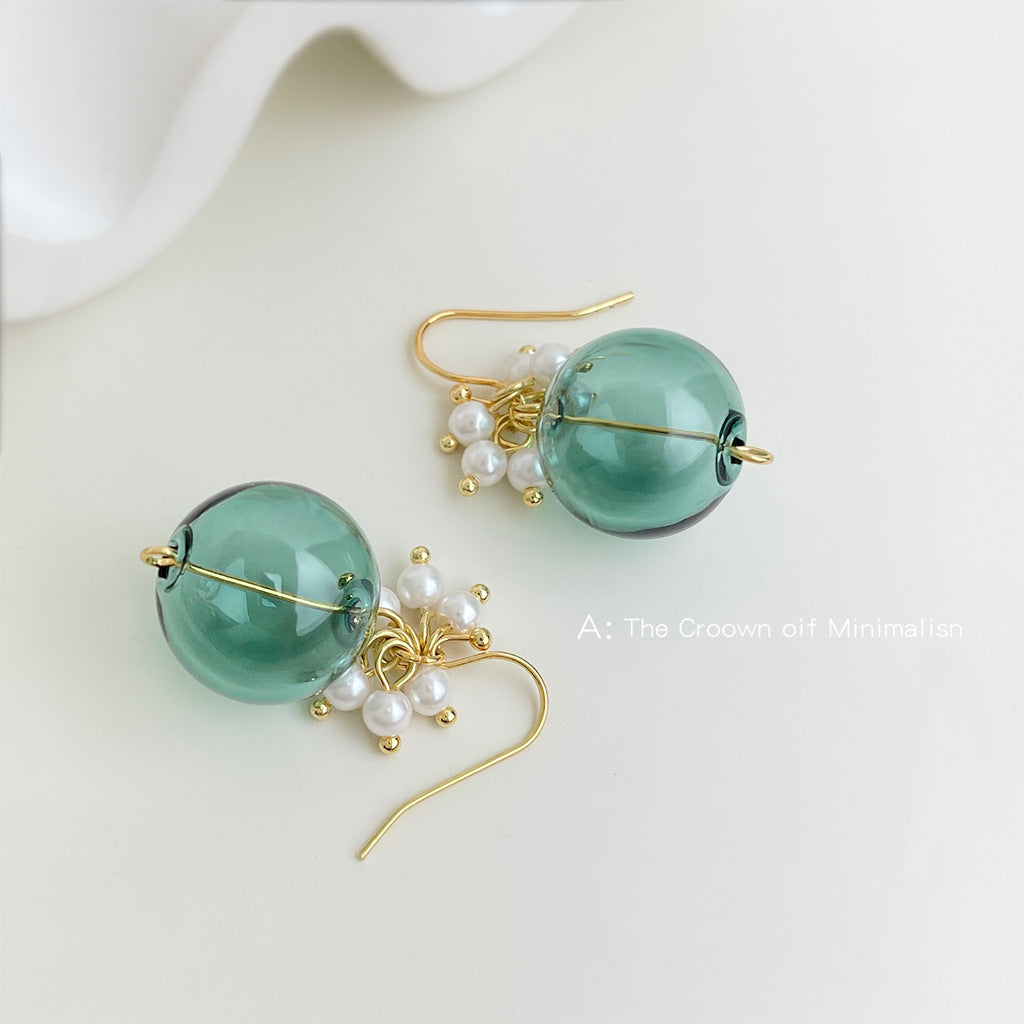 C廠【6434】藍色海洋系列!原廠設計師手工透明藍玻璃氣泡球耳環耳環飾品 25.07-3