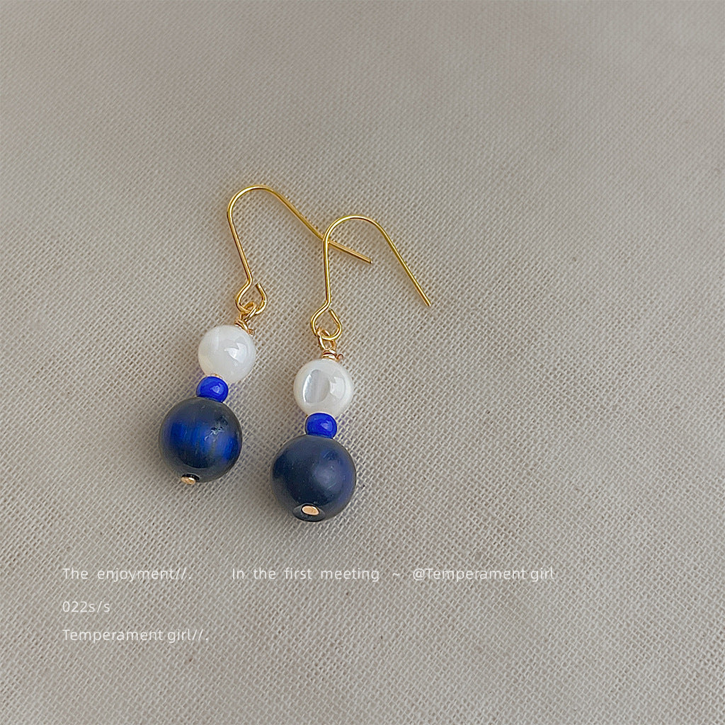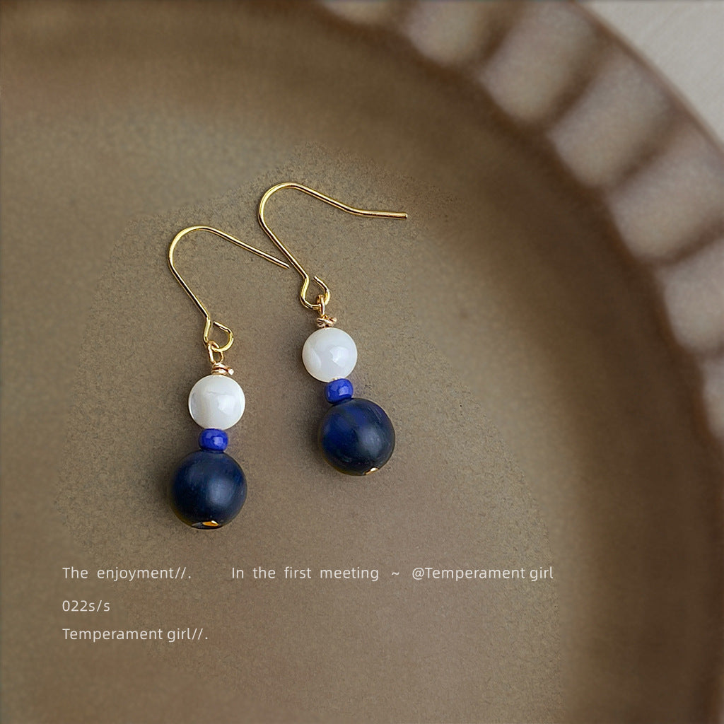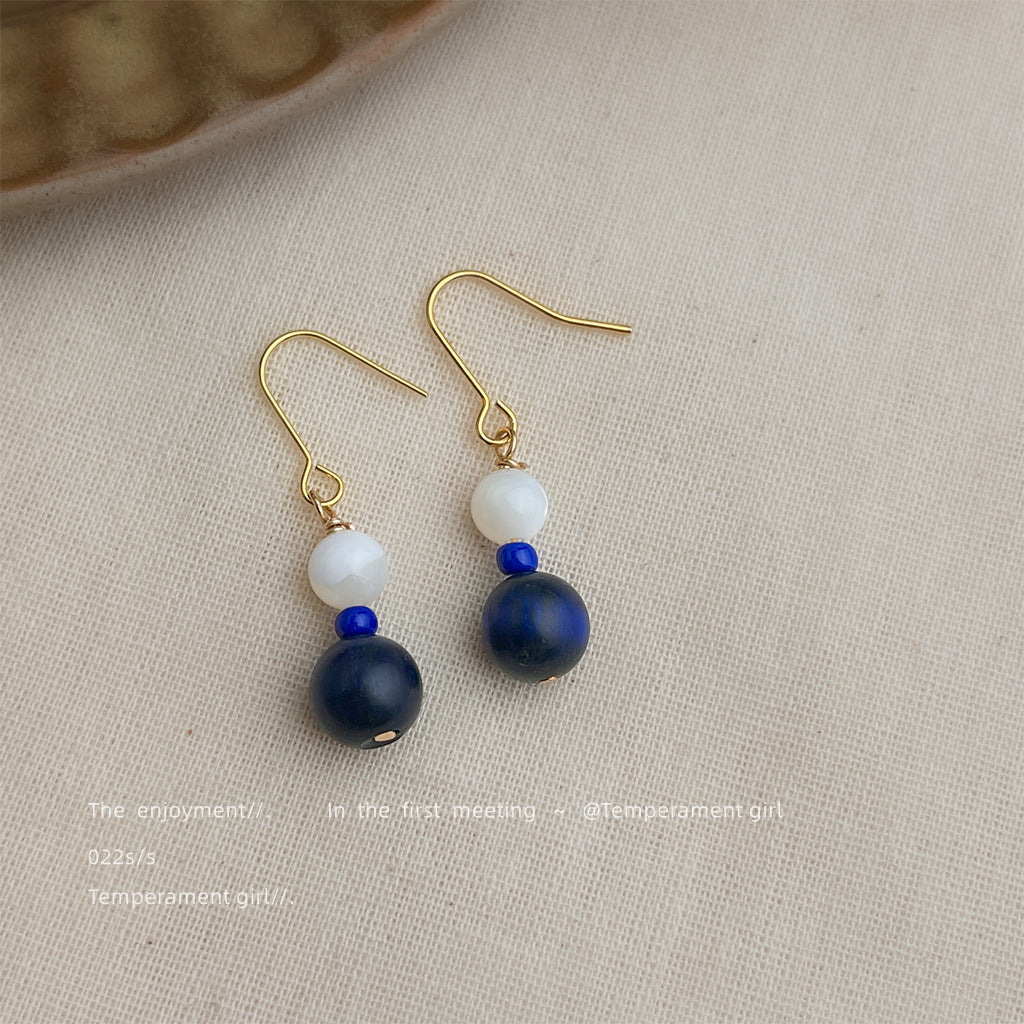 C廠【6436】天然石新中式民族風國潮手工耳飾文藝復古簡約景區飾品耳環女 25.07-3